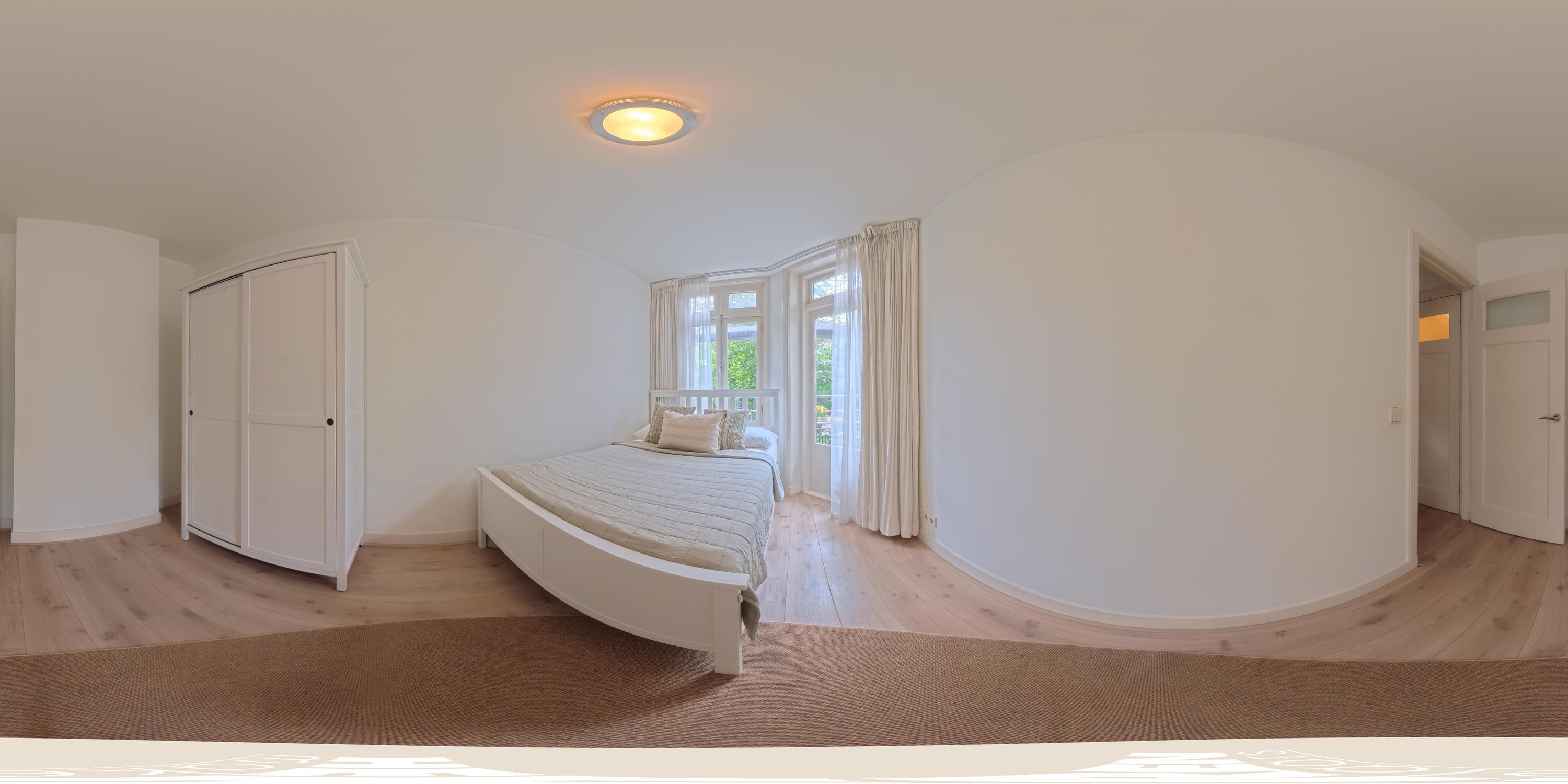 Aan de achterzijde liggen twee goed bemeten slaapkamers. De hoofdslaapkamer geeft toegang tot het royale terras van ca. 19m², gelegen op het zuiden. Hier kunt u heerlijk genieten van de zon tot in de avonduren. Centraal in de woning bevindt zich de badkamer, uitgerust met een ligbad met douche en een dubbele wastafel. Het toilet is separaat en bereikbaar vanuit de hal. Tevens beschikt de woning over twee praktische bergkasten, waarvan één met aansluiting voor een wasmachine.