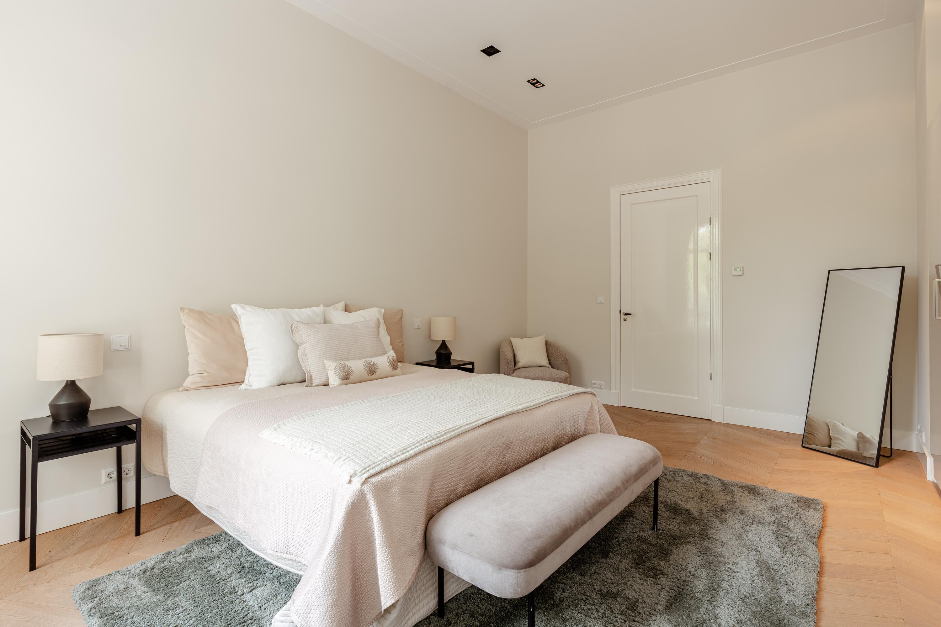 De bel-etage beschikt over drie comfortabele slaapkamers en twee stijlvolle badkamers, beide voorzien van vloerverwarming. De master bedroom is uitgerust met een op maat gemaakte kastenwand en een luxe en-suite badkamer met ligbad, dubbele wastafel met meubel, inloopdouche en toilet. De tweede badkamer is eveneens modern uitgevoerd en beschikt over een wastafel met meubel en een inloopdouche. Tevens bevindt zich op deze verdieping nog een apart toilet. De aanwezigheid van een tweede entree op dit niveau benadrukt het praktische én exclusieve karakter van de woning.
