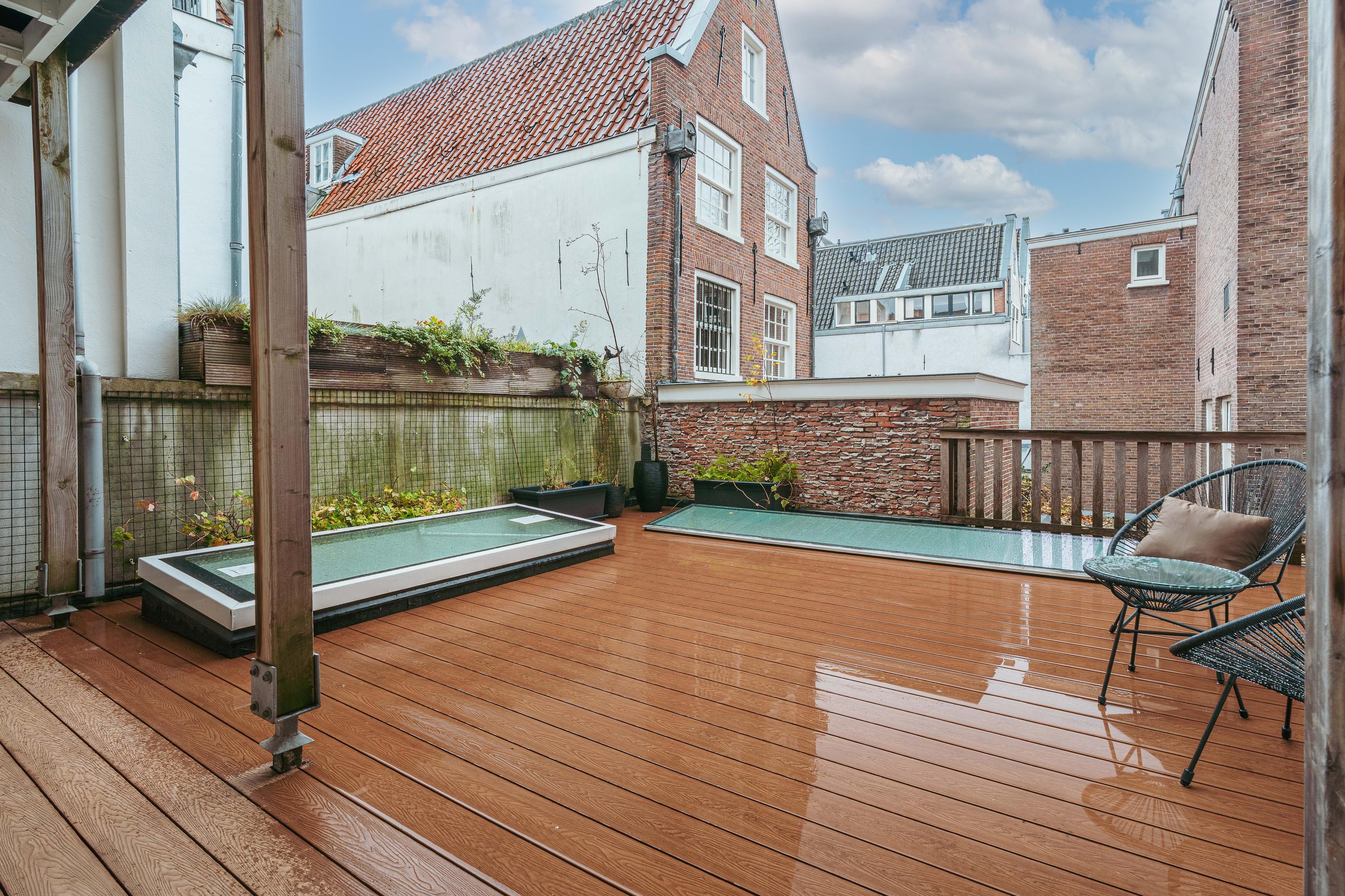 Het heerlijke dakterras van circa 37 m² vormt een uniek onderdeel van deze woning. Het is bereikbaar zowel via de achterste slaapkamer als via de trap in de leefkeuken. De rustige ligging maakt dit tot een geweldige buitenruimte midden in de stad, een plek waar u in alle privacy kunt genieten van de rust.