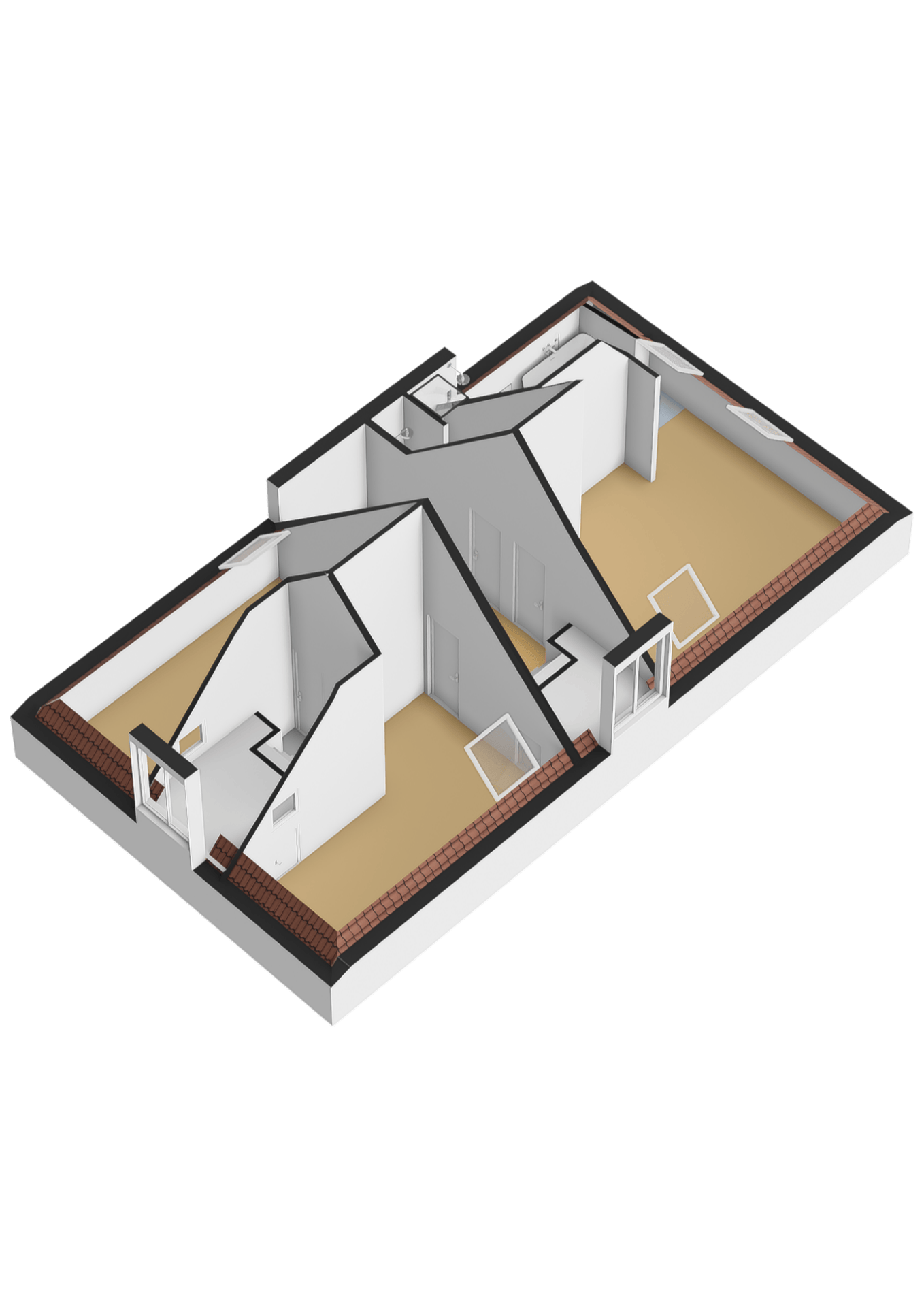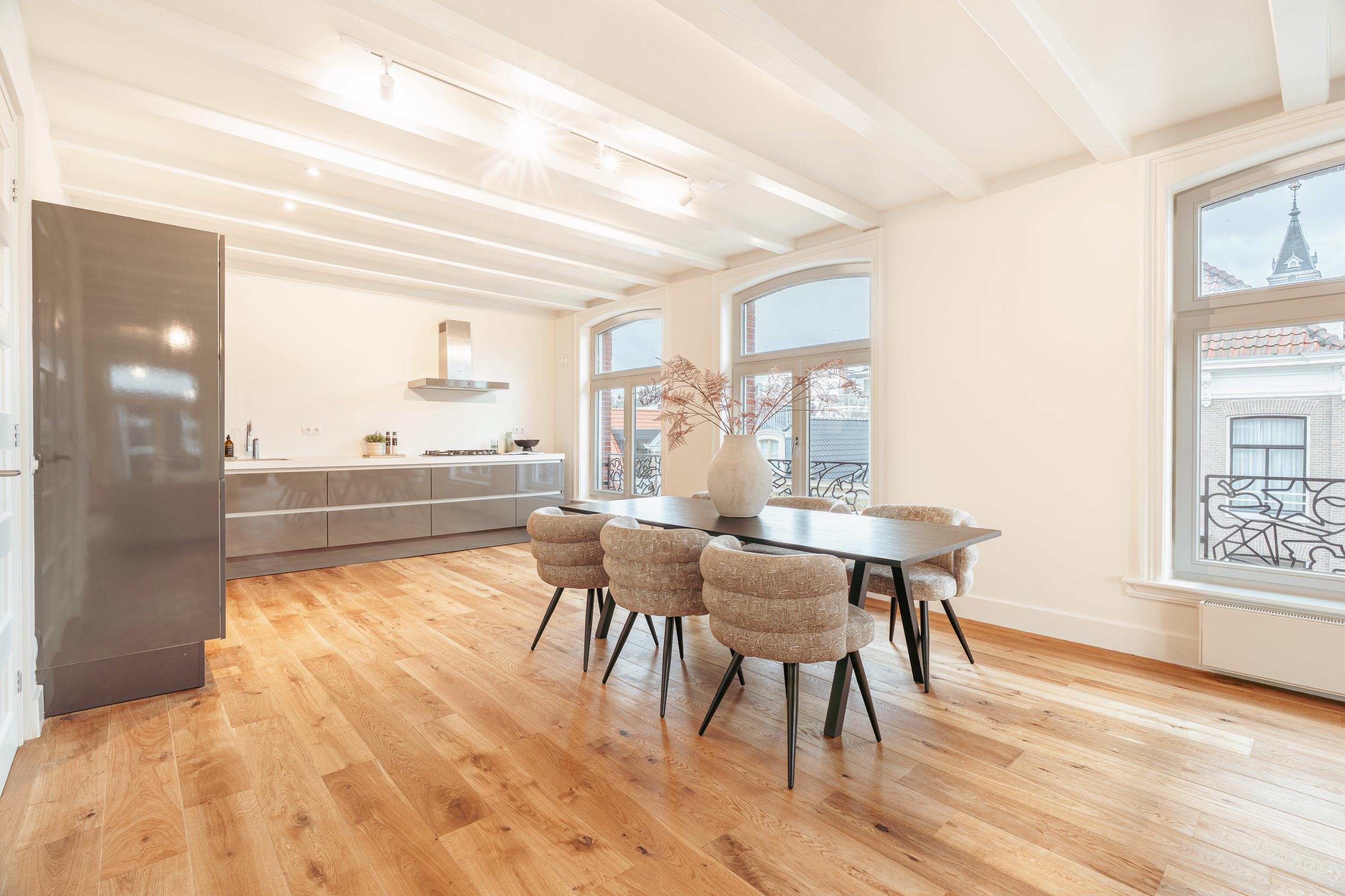 Een bijzonder en speels element zijn de twee vides tussen de vertrekken – sfeervolle plekken om te lezen of te genieten van een kop koffie. Onder deze vides zijn handige kastruimten geïntegreerd. Een klein deel van deze verdieping kent een hoogte onder 1,5 meter, passend bij de karakteristieke kapvorm. In alle ruimtes zijn de authentieke balken zichtbaar, wat bijdraagt aan de charme van de woning.