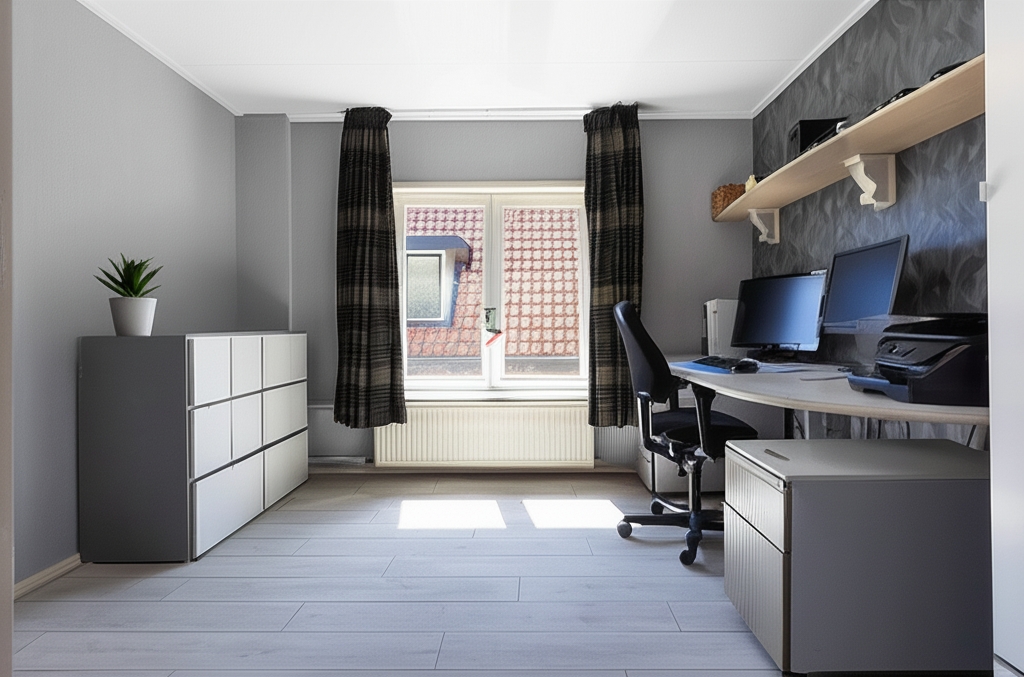 Op de eerste verdieping van de woning bevinden zich drie slaapkamers die voorzien zijn van kantel-kiepramen en moderne laminaatvloer. Twee kamers zijn geschikt voor een tweepersoonsbed, terwijl de derde ruimte ideaal is als inloopgarderobe, kantoor- of tienerkamer.