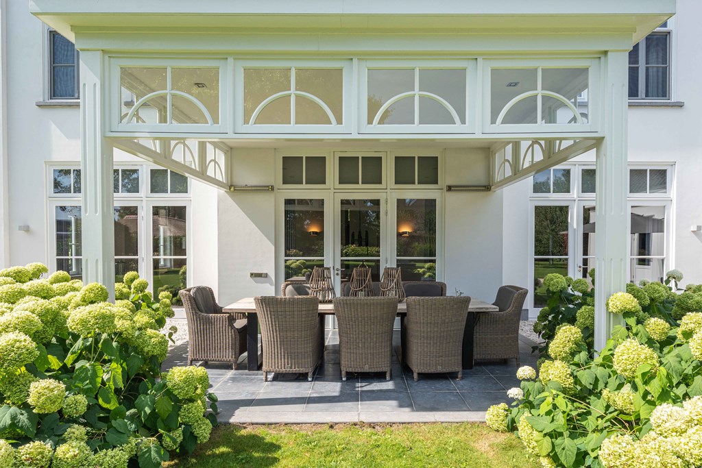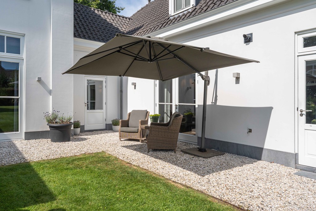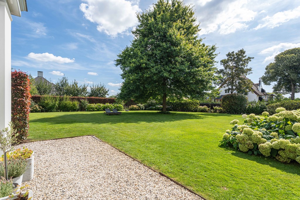 De fraai aangelegde tuin ligt rondom de woning en is een fijne plek voor mensen die van het buitenleven houden. De tuin is voorzien van een groot gazon, groenborders met volwassen beplanting, fruitbomen, verlichting, een terras met veranda, een beregeningsinstallatie en diverse gezellige hoekjes. Voor de liefhebbers is er ook ruimte om een groente kas te plaatsen. Ook is er een oprit met plaats voor diverse voertuigen, is er een laadpaalvoorbereiding en een garage met openslaande deuren.