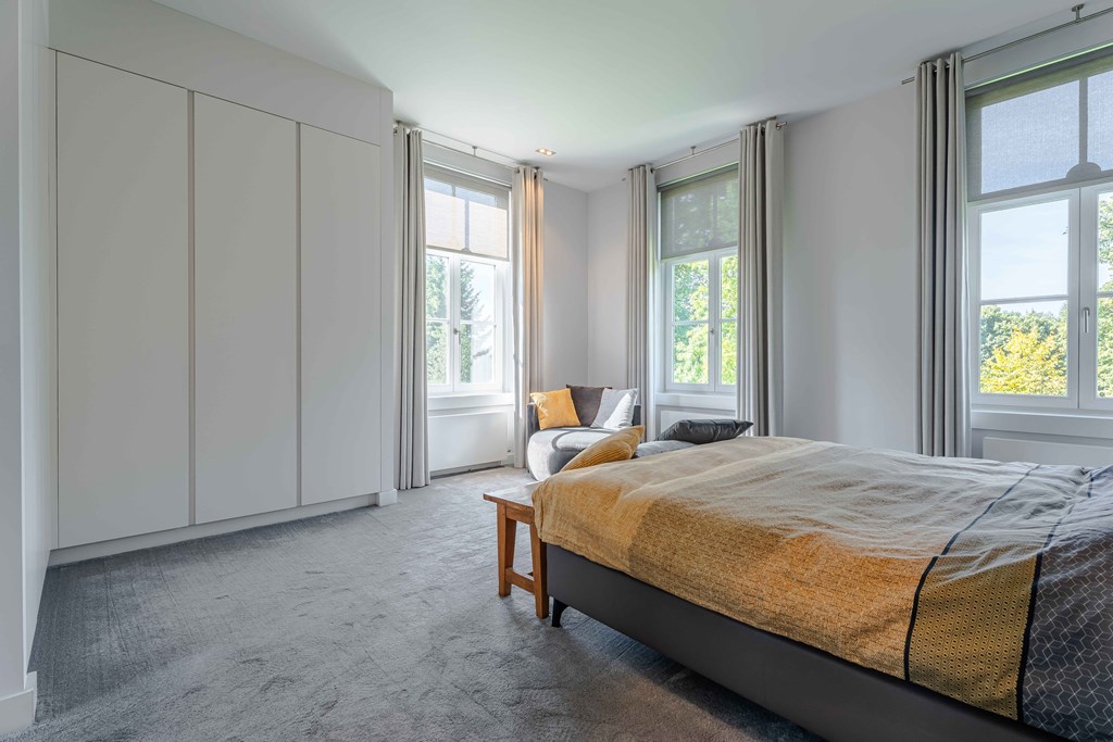 Evenals de leefruimtes beneden is de verdieping voorzien van hoge plafonds. Dit zorgt samen met de hoeveelheid daglichttoetreding voor een aangename woonbeleving op de verdieping.