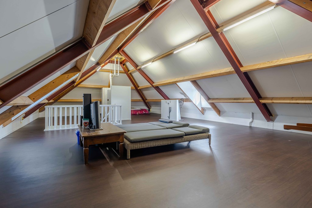 De zolderverdieping is in de huidige opzet één grote ruimte die multifunctioneel gebruikt kan worden. De zolder is voorzien van extra aansluitingen voor de wasmachine en de opstelplaats van de CV-Installatie. Het is mogelijk om hier extra slaapkamers te creëren, eventueel met een kleine badkamer.