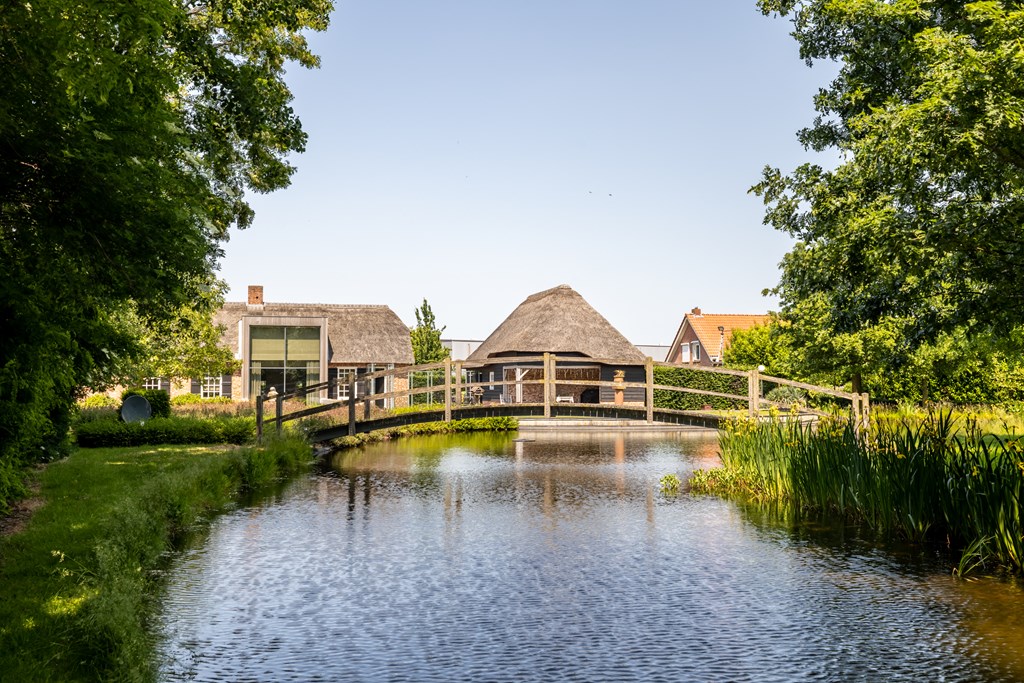De onder architectuur aangelegde en geheel omsloten parkachtige tuin heeft ontzettend veel fijne plekjes waar u heerlijk van het buitenleven kunt genieten. Vanaf het grote terras met overkapping heeft u een mooi uitzicht over de grote vijver met fontein en loopbrug.