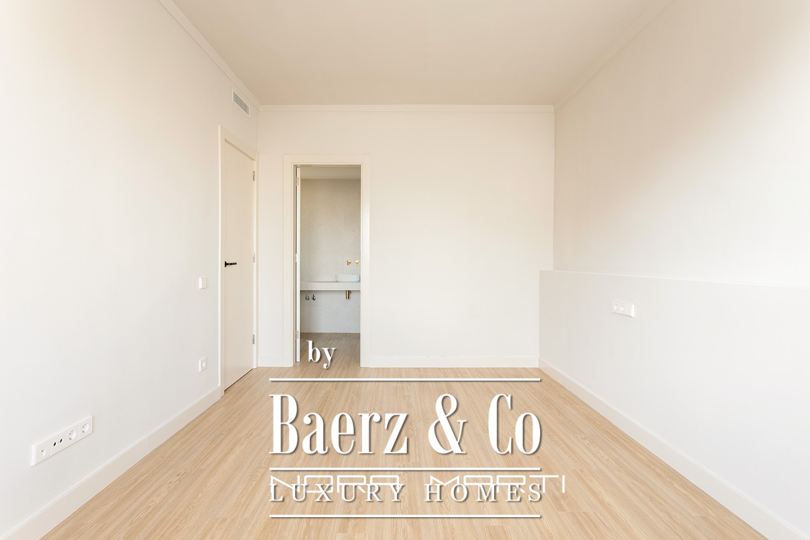 In the living area, we find a spacious living-dining room with access to the 30 m2 terrace, a perfect private oasis for relaxing or entertaining guests; a fully equipped kitchen with an island and a separate utility area.