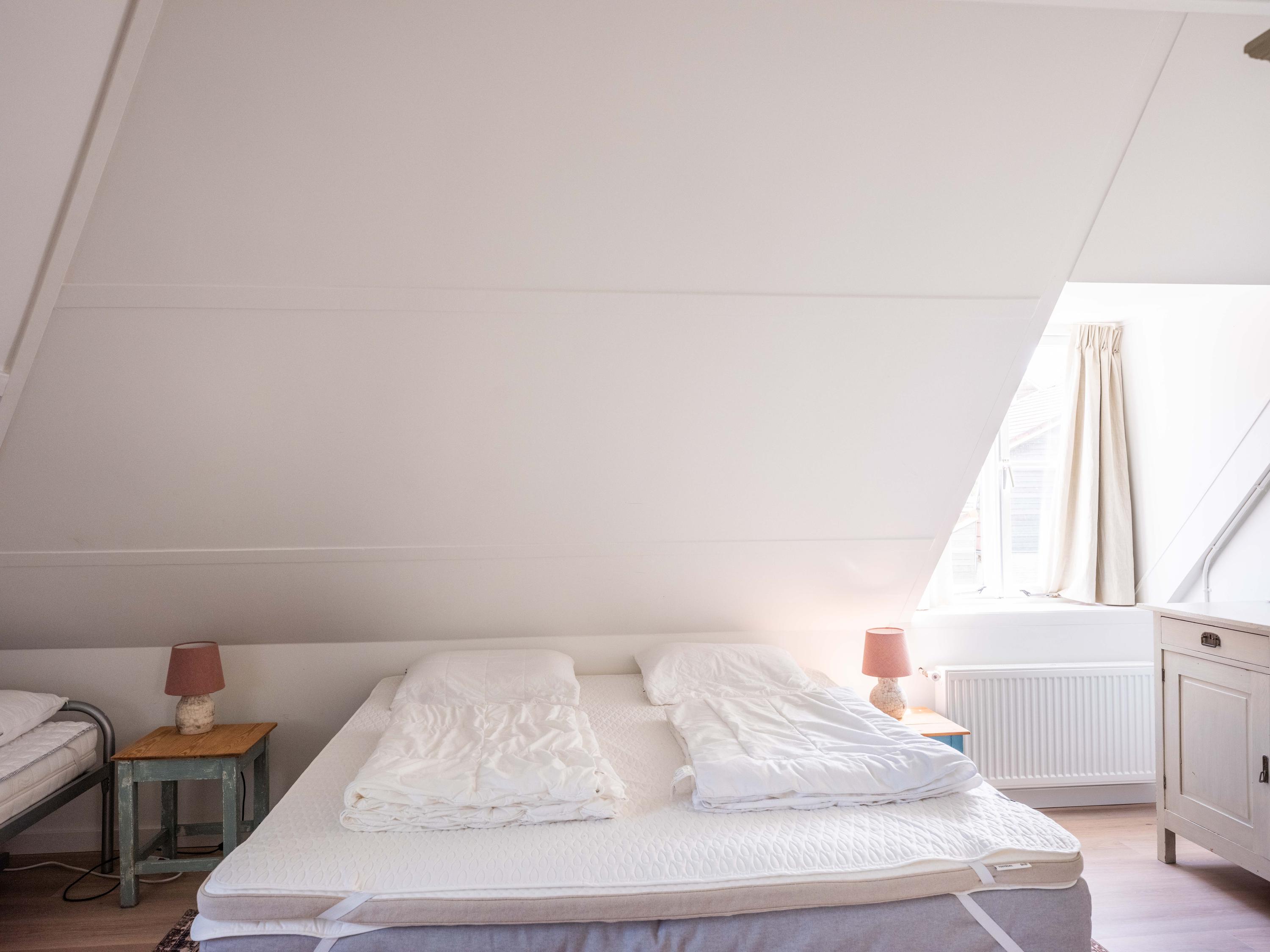 De eerste verdieping beschikt over drie slaapkamers, elk met een wastafel en vaste kast. Dankzij meerdere dakkapellen is er veel licht en ruimte. Er is een aparte cv-kast en een tweede badkamer met ligbad, douche, toilet, dakraam en mechanische ventilatie.