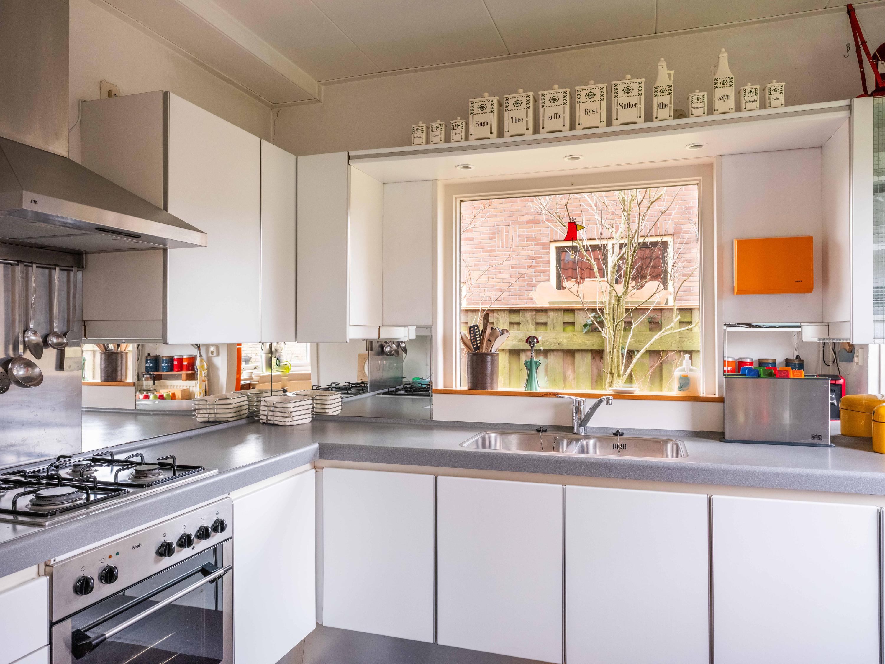 Bij binnenkomst ervaart u meteen de ruimte. De royale hal biedt toegang tot het toilet, de meterkast, de trap naar boven en een handige provisieruimte onder de trap. De lichte woonkamer kijkt uit op het groen aan de overzijde en vormt een fijne plek om te ontspannen. Vanuit de hal bereikt u bovendien de eetkamer en de keuken, die is voorzien van diverse inbouwapparatuur en een directe toegang tot de tuin.