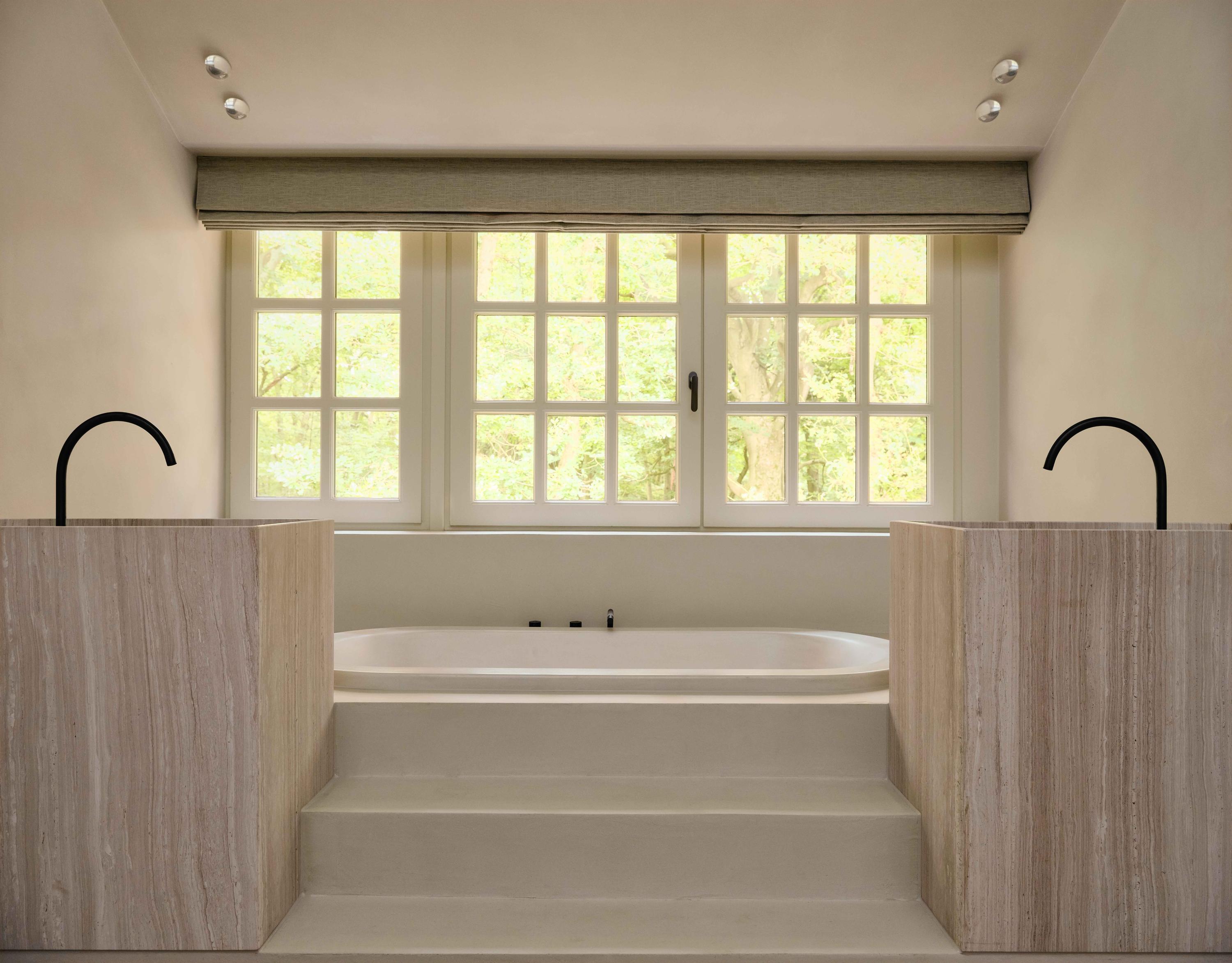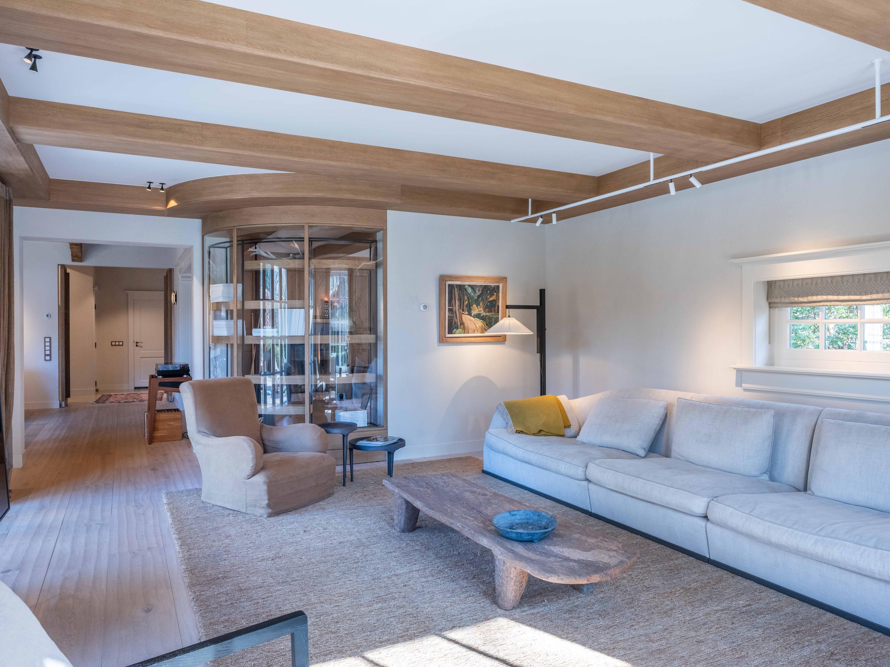De leefruimtes zijn verdeeld in meerdere comfortabele zitgedeeltes. Een sfeervolle zitkamer met schouw met open haard en een tweede, lichte woonkamer met openslaande deuren zorgen voor echte luxe.