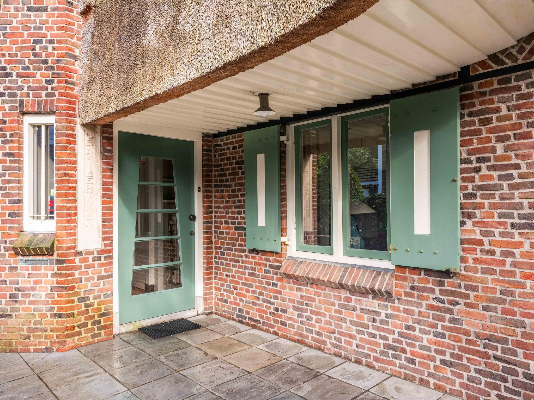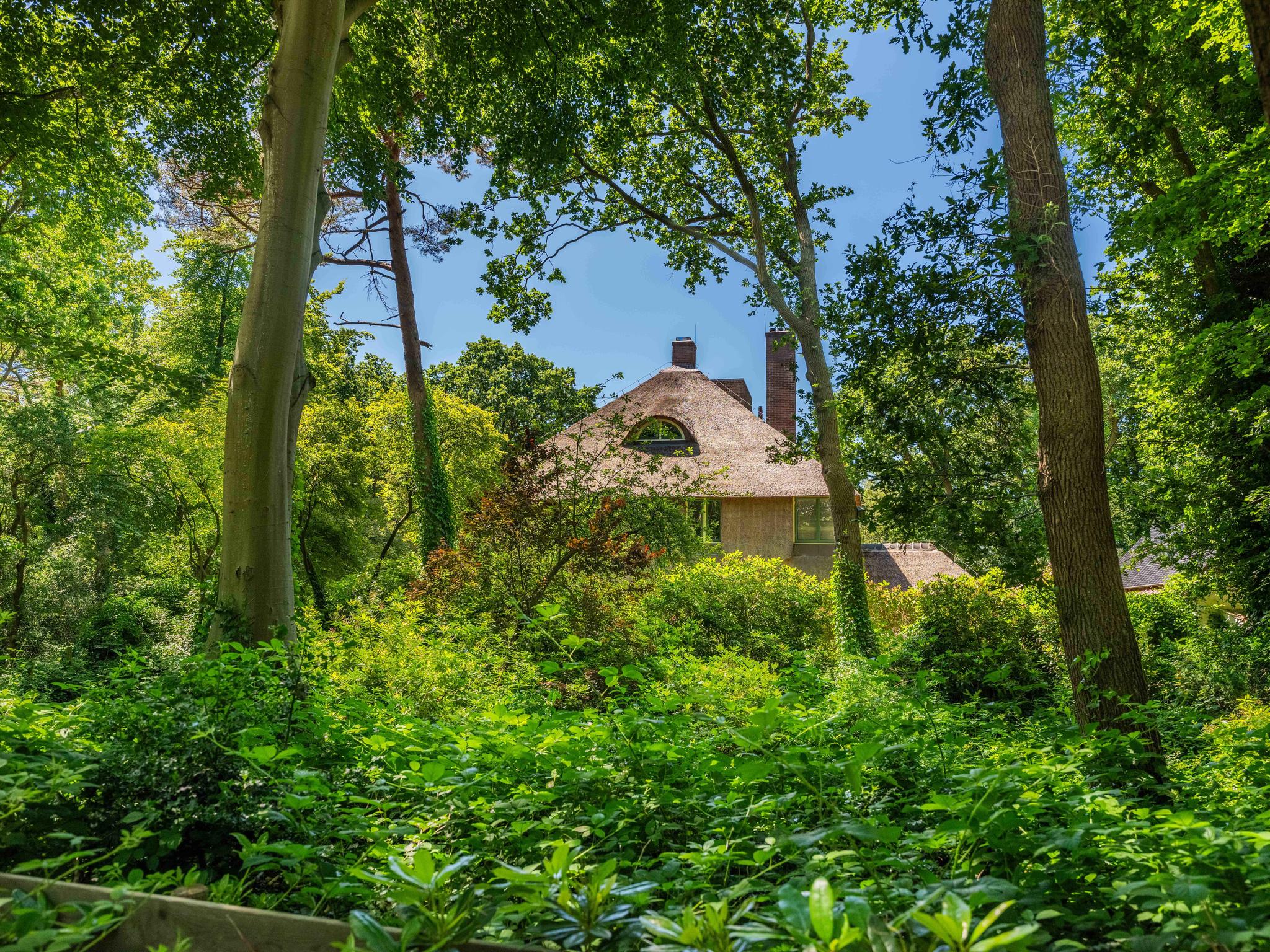 U bereikt de villa via een royale oprit met ruimte voor meerdere auto’s. Aan de voorzijde valt de imposante rieten kap direct op. Vanuit de entree komt u in de hal, die toegang geeft tot zowel de woonkamer als de woonkeuken. De keuken is voorzien van Bosch combimagnetron, AEG-inductiekookplaat, vaatwasser, koel-vriescombinatie, recirculatiekap en heeft vloerverwarming. De keuken heeft openslaande deuren naar een groot terras en de achtertuin. Aangrenzend aan de keuken ligt de bijkeuken met vloerverwarming, wasmachine- en drogeraansluiting en een douche met toilet en fontein.