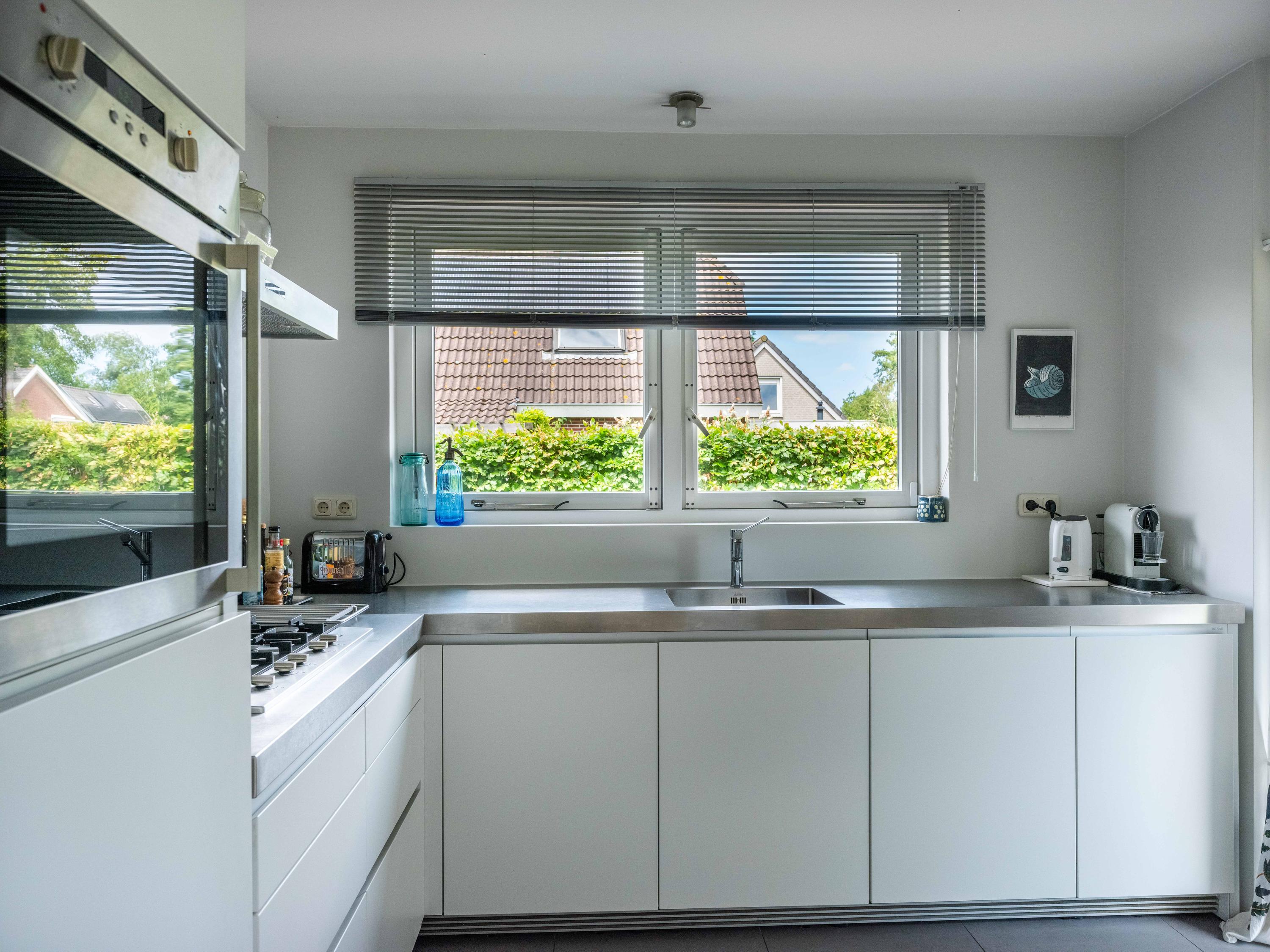 De Bulthaup keuken is uitgerust met een Atag oven, 5-pits gasfornuis, vaatwasser en koelkast. Via een tussenhal met toegang tot de tuin bereikt u een grote berging, voorheen een garage. Deze is voorzien van een water en elektra aansluiting.