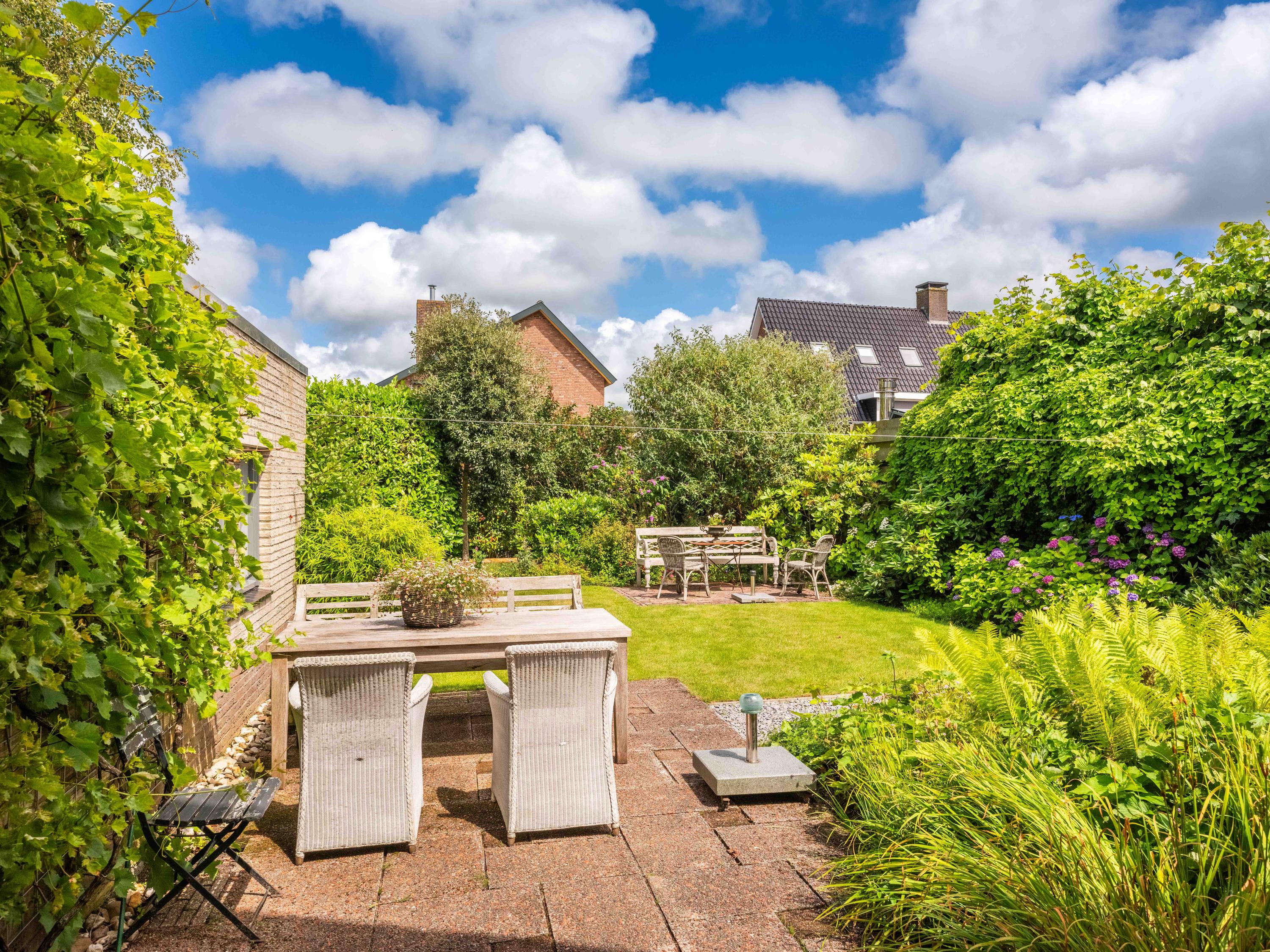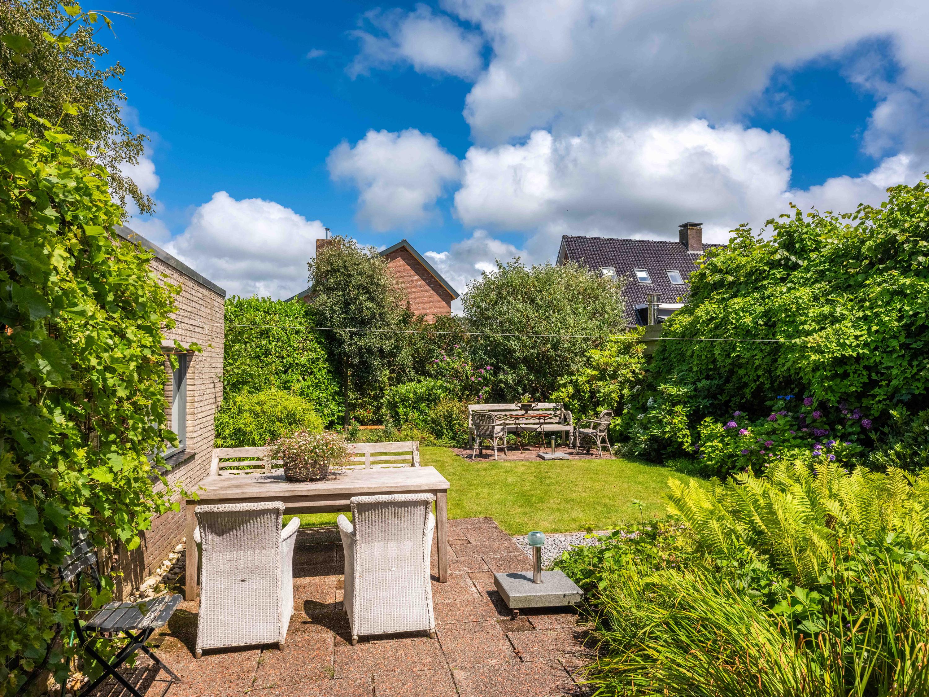 De grote zonovergoten tuin achter het huis, met diverse terrassen en veel privacy, maakt dit huis compleet.