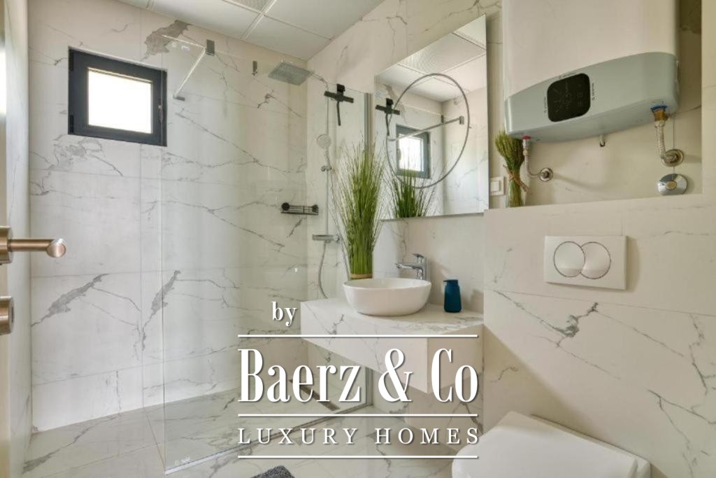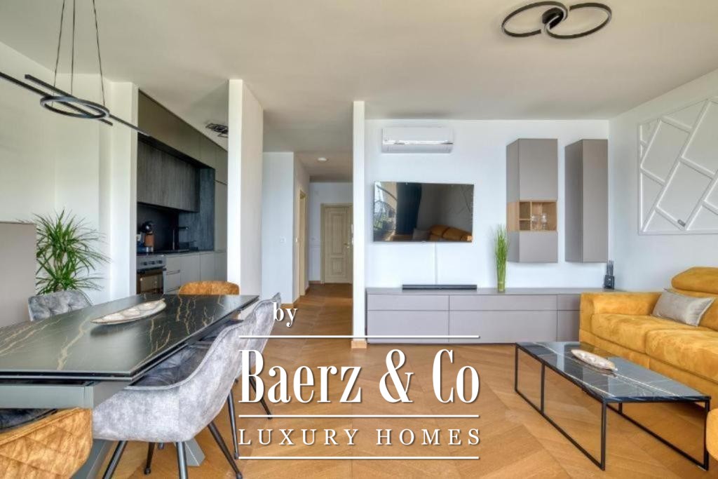 Binnen is de indeling functioneel en doordacht. Drie slaapkamers en twee badkamers bieden ruimte aan familie of gasten, terwijl de hal leidt naar een woonkamer met open keuken en eetgedeelte, ideaal voor ontspannen samenzijn. Grote ramen bieden zowel zee- als bergzicht vanaf het terras en versterken het gevoel van verbondenheid met de natuurlijke omgeving. Het appartement is volledig gemeubileerd en direct bewoonbaar.