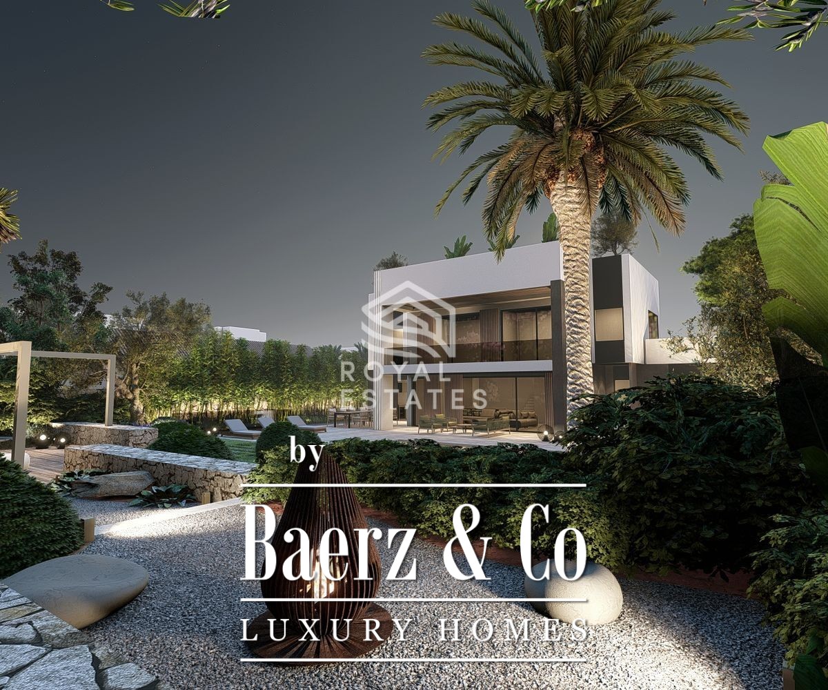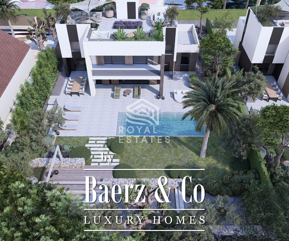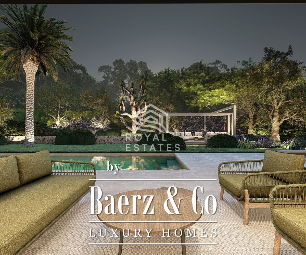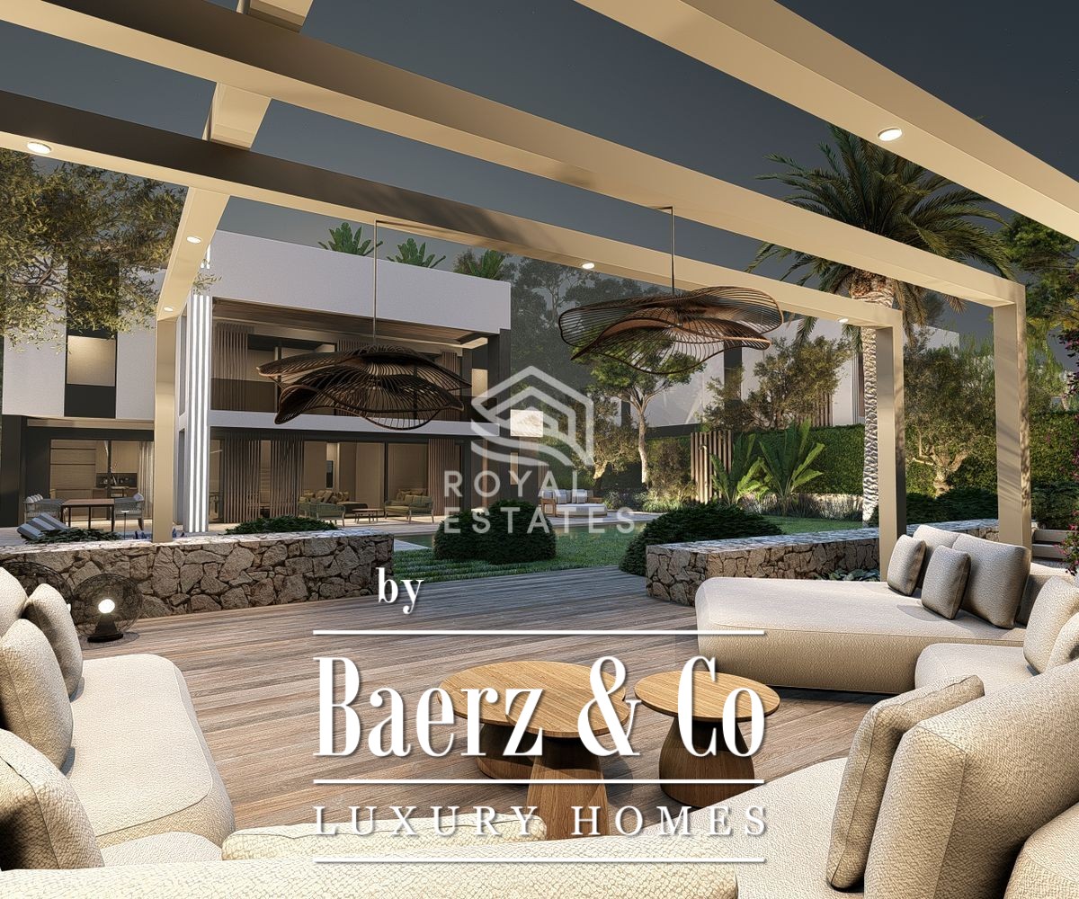 Villa te koop Cala Martina straalt een rustige zelfverzekerdheid uit. Slechts 35 meter van de zee laat deze woning het ritme van de kust deel uitmaken van het dagelijks leven. Met een eigentijdse architectuur kenmerken strakke lijnen en royale glaspartijen het geheel, zodat natuurlijk licht gedurende de dag de sfeer bepaalt. De leefruimte beslaat 285 m², omlijst door terrassen die vloeiend overlopen in het zwembad en een zorgvuldig aangelegde tuin, alles op een perceel van 967 m².