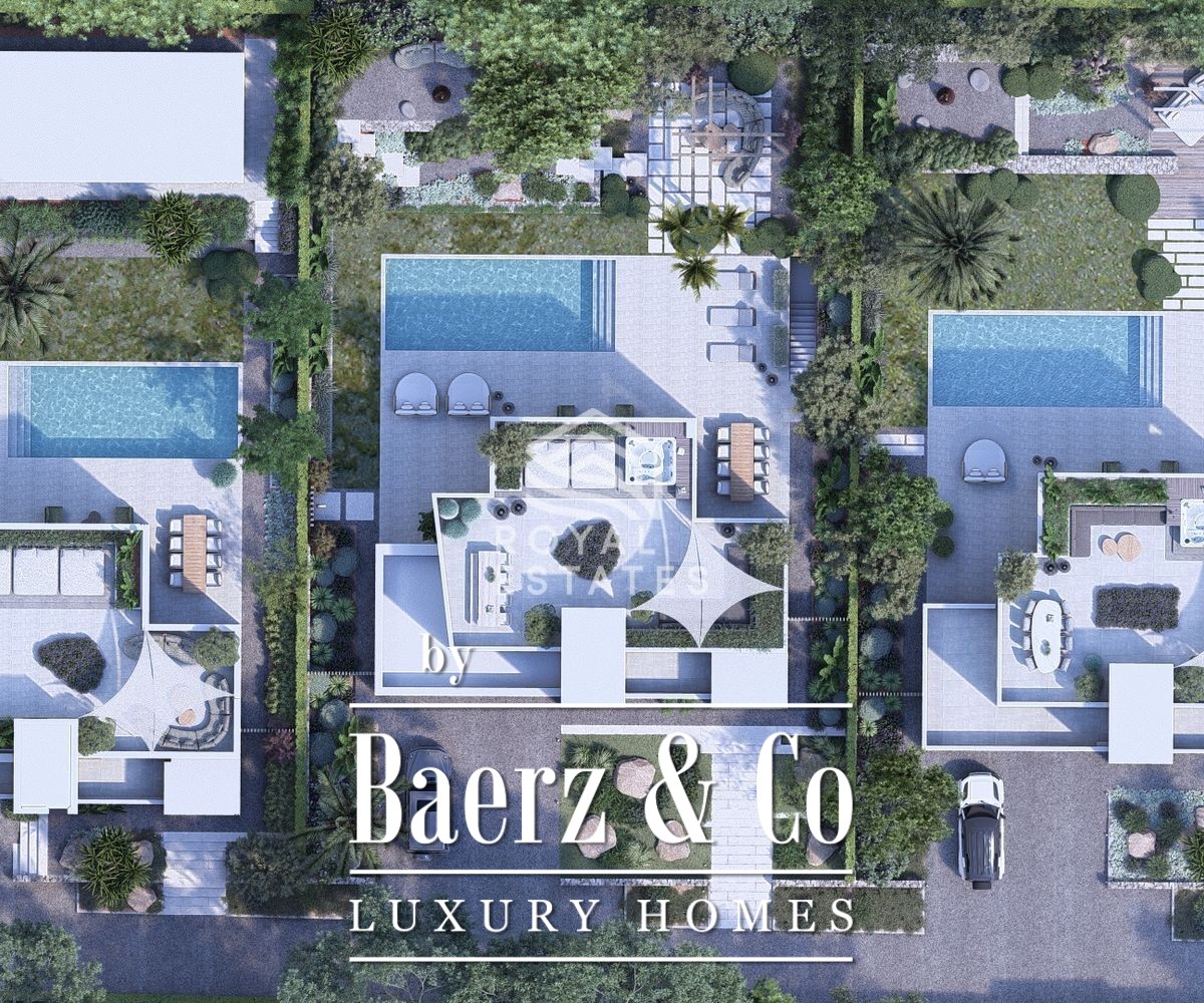 Binnen biedt de villa vier slaapkamers en vijf badkamers, waarbij iedere ruimte met oog voor privacy en rust is ontworpen. De open leef-, keuken- en eetruimte vormen een harmonieus geheel door materiaalgebruik en ruimtelijke samenhang. De keuken van Poggenpohl met Miele-apparatuur is ingetogen en efficiënt. Praktische voorzieningen, waaronder airconditioning, een gastentoilet, wasruimte, berging en een privégarage, zijn discreet verwerkt.