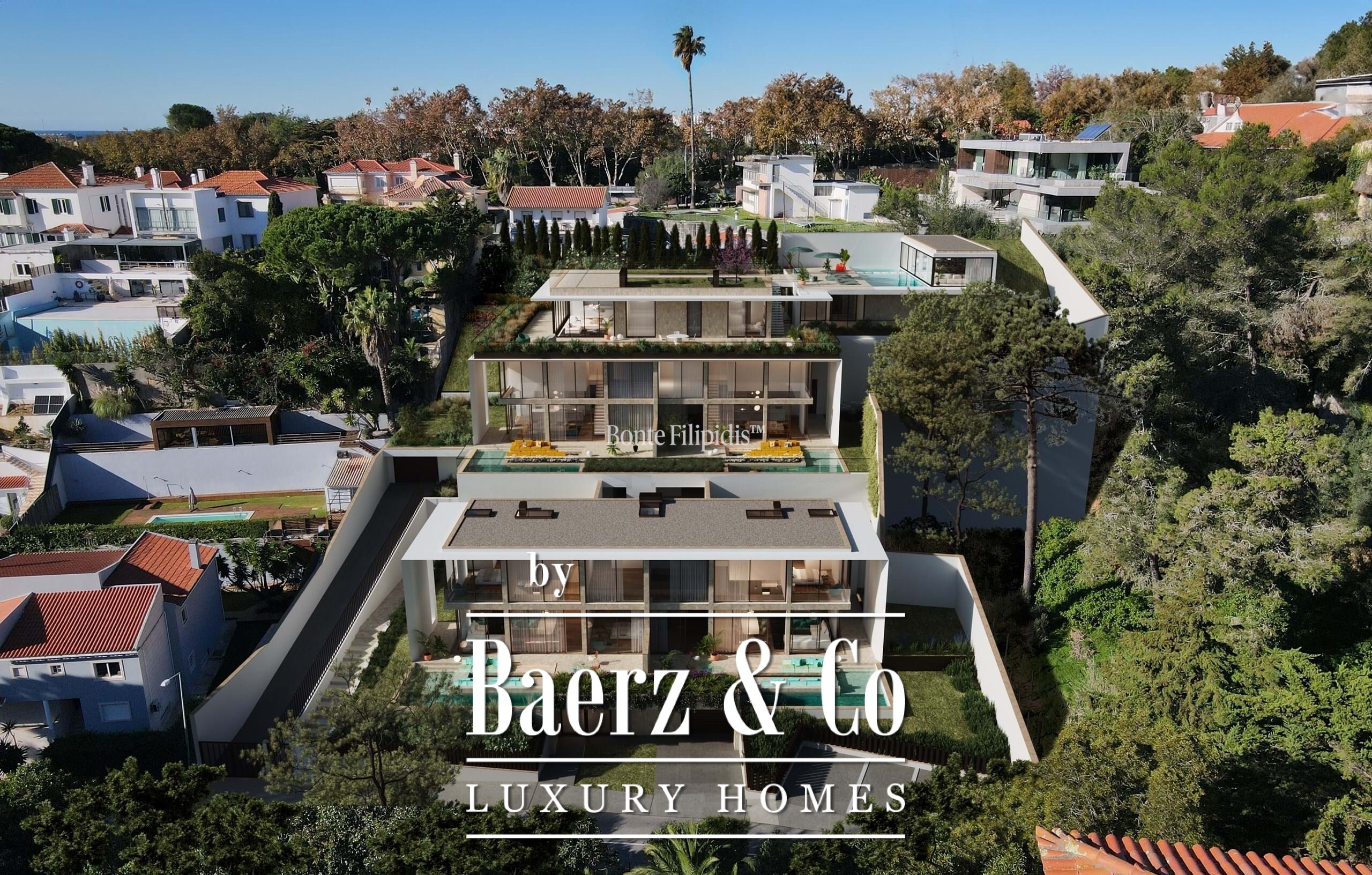 Deze duplexvilla in Cascais e Estoril biedt een rustige en lichte sfeer, op slechts enkele minuten van de Atlantische stranden en de bruisende energie van Lissabon. Het woonhuis omvat 505 m² zorgvuldig ingerichte ruimte, gelegen op een perceel van 505 m². De woning beschikt over vier slaapkamers en vijf badkamers, waarbij het interieur wordt gekenmerkt door marmeren vloeren, hoge raampartijen en een naadloze overgang naar terrassen en het privézwembad. Zuidlicht stroomt rijkelijk binnen in iedere ruimte, ondersteund door elektrische vloerverwarming in de badkamers, airconditioning en een volledig domoticasysteem. Daglicht beweegt moeiteloos door vertrekken waar hedendaagse lijnen verzachten in serene tuinuitzichten.