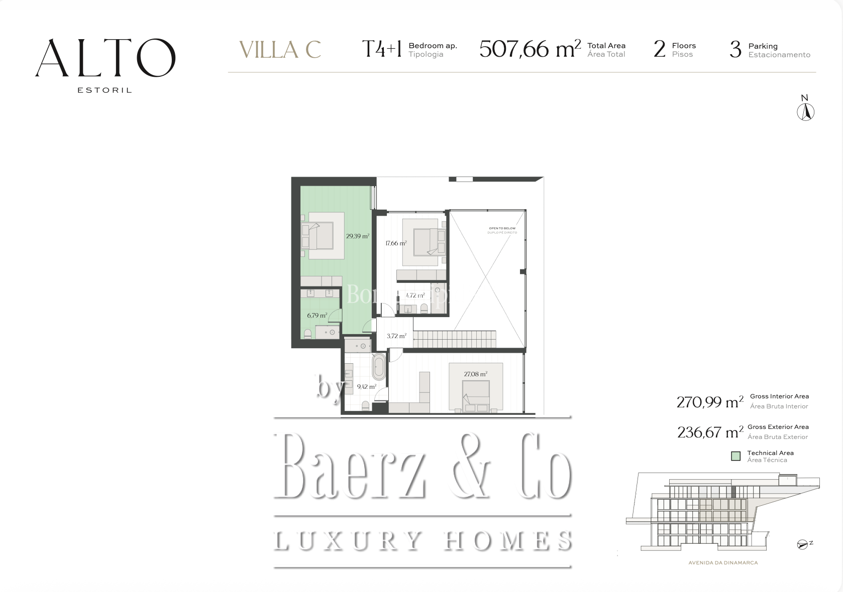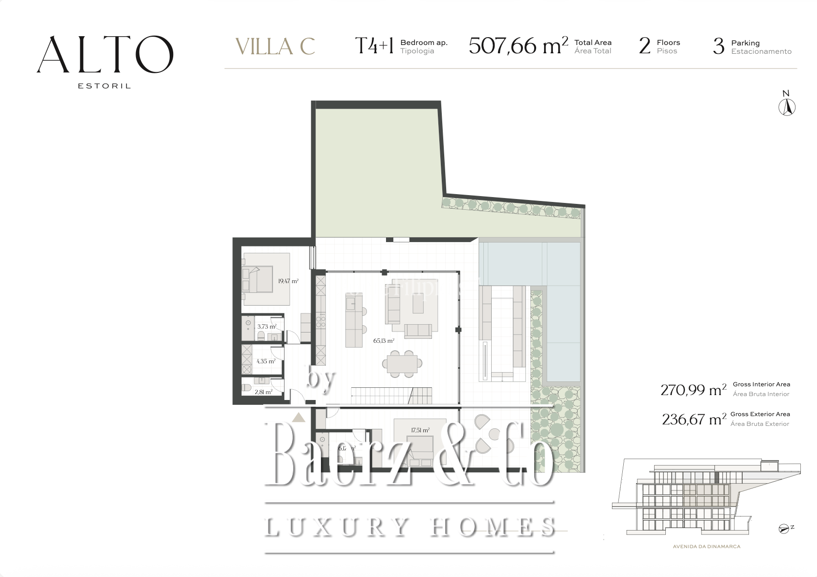 De duplex villa Cascais e Estoril verenigt ingetogen luxe met functionaliteit op een verfijnde manier, gelegen in de gewilde enclave Alto Estoril. Deze villa biedt 543 m² aan woonoppervlak, vijf slaapkamers en vijf badkamers, omgeven door fraai aangelegde tuinen en een privézwembad. Dankzij ruime glaspartijen baadt de tweelaagse woning in daglicht, terwijl marmeren vloeren, vloerverwarming in de badkamer en geïntegreerde domotica zorgen voor een subtiel, doorlopend comfort.