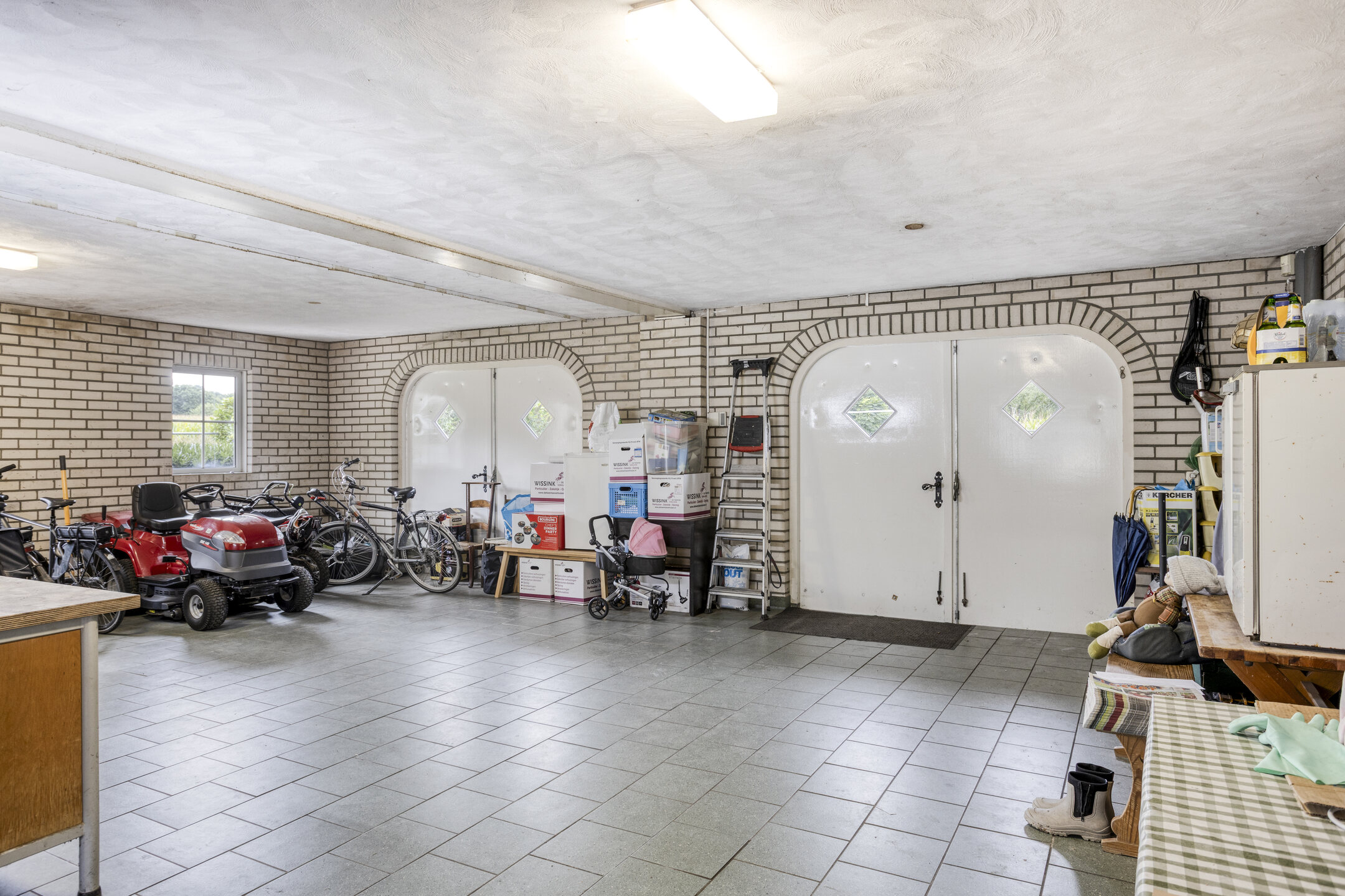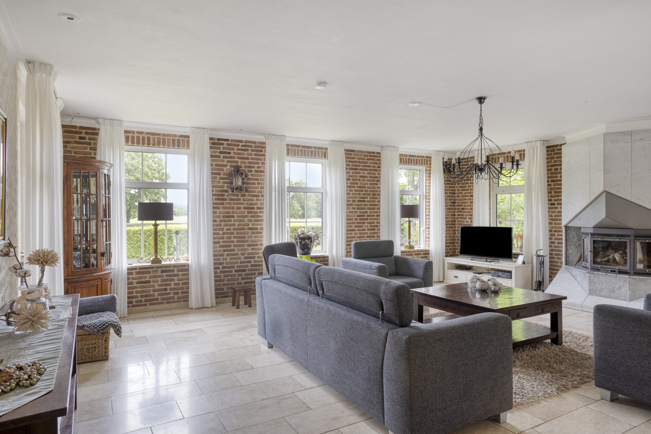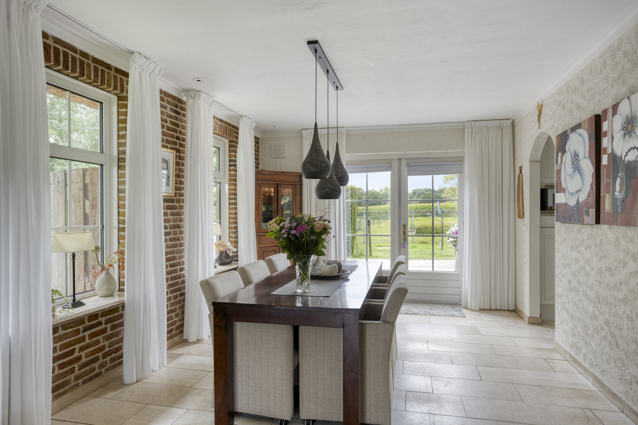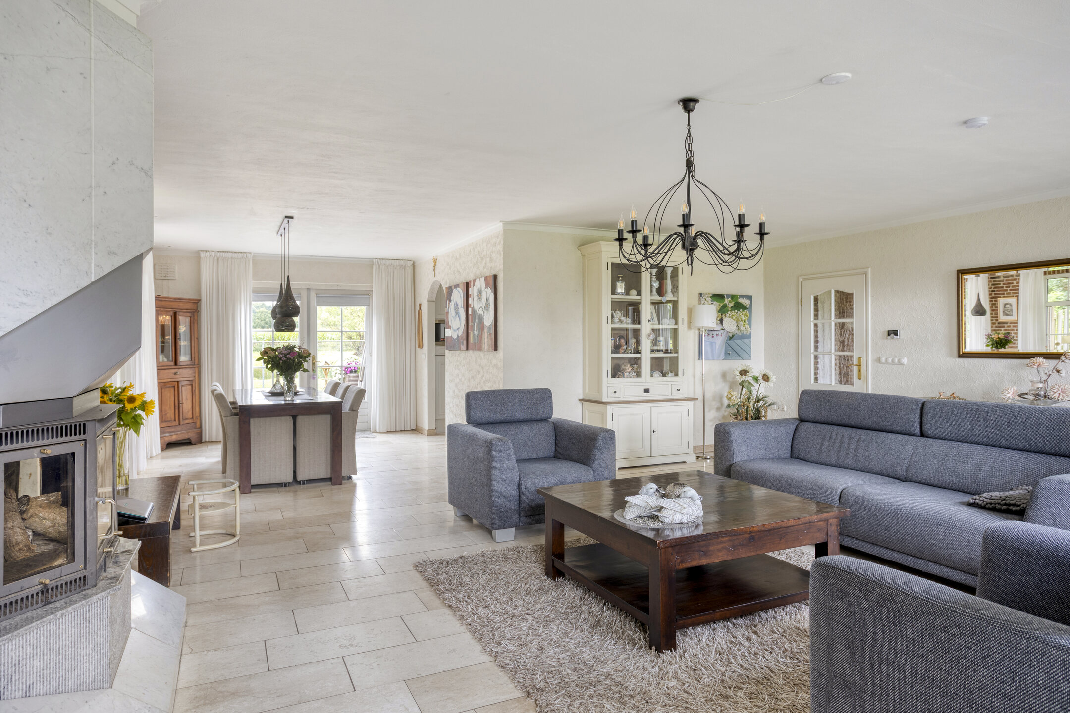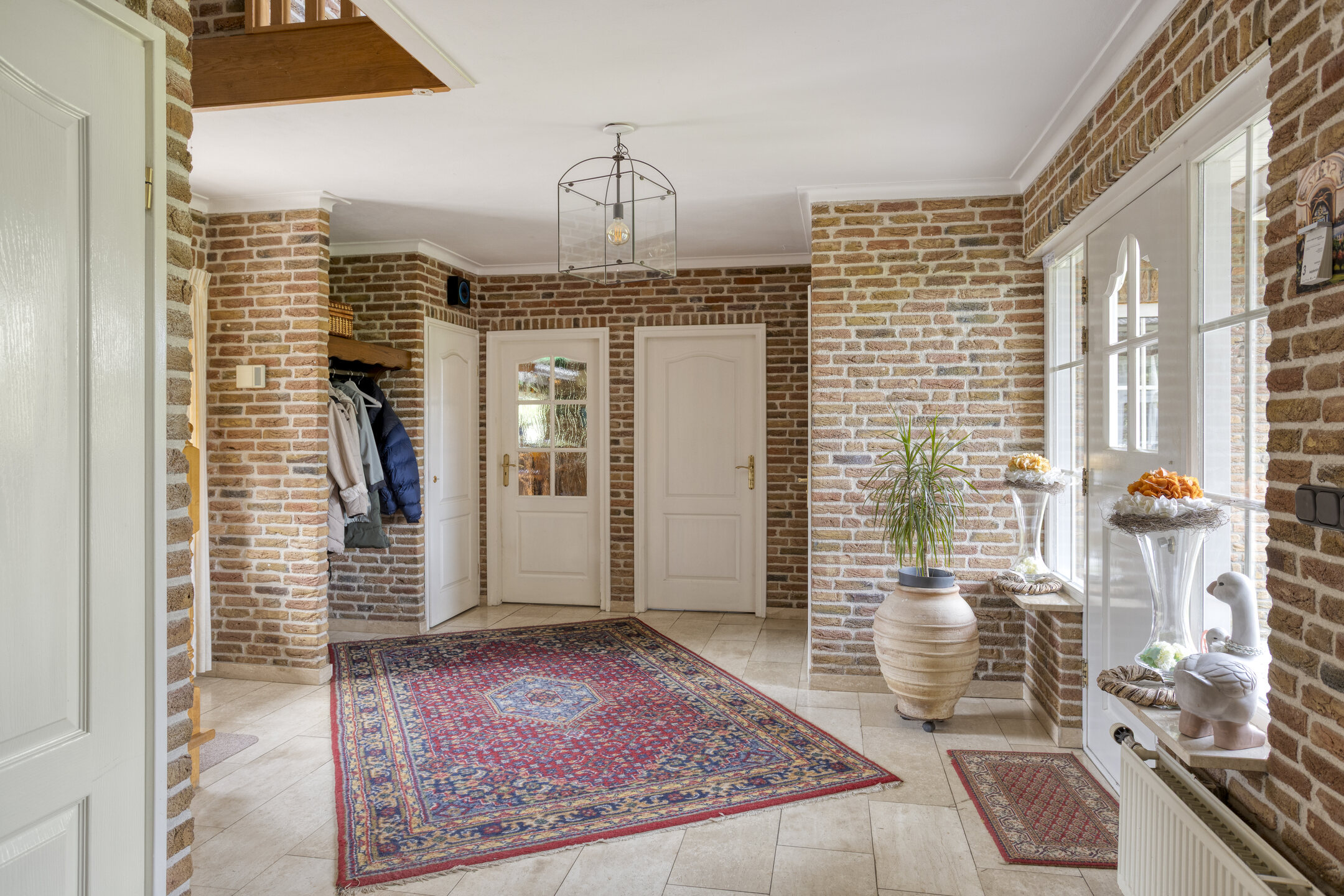 Begane grond: ruime hal/entree met trapopgang, toilet met fontein, meterkast, praktische bijkeuken, ideale wijnkelder, aangename living met openhaard en veel lichtinval en tuindeuren naar zonneterras, knusse woonkeuken welke is uitgerust met diverse inbouwapparatuur, sfeervol “bruin café“ van ca. 48m², extra werkkamer 20m², inpandig te bereiken dubbele garage met plavuizenvloer, berging, 2e toilet, saunaruimte met douche en toegang naar aangename serre.