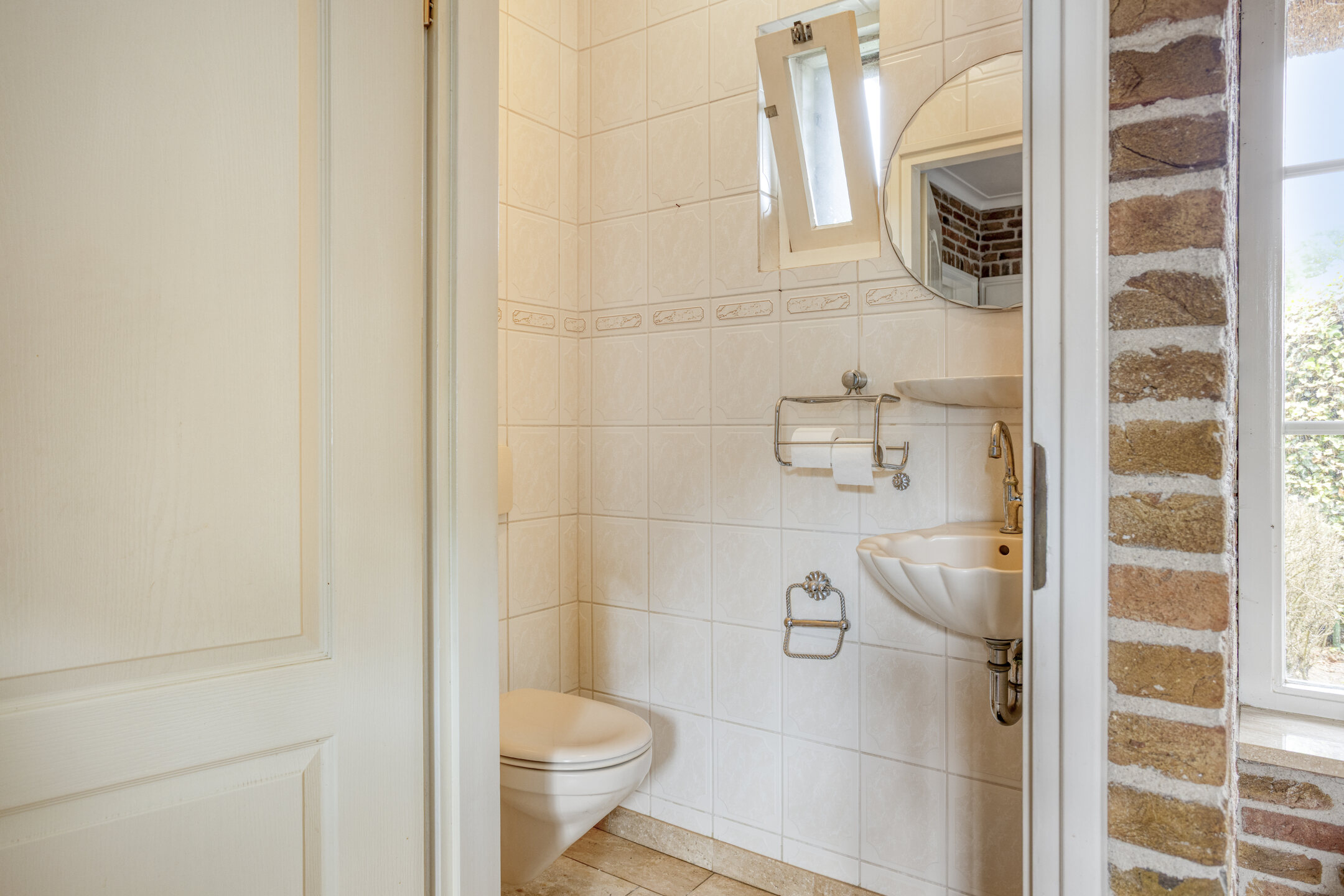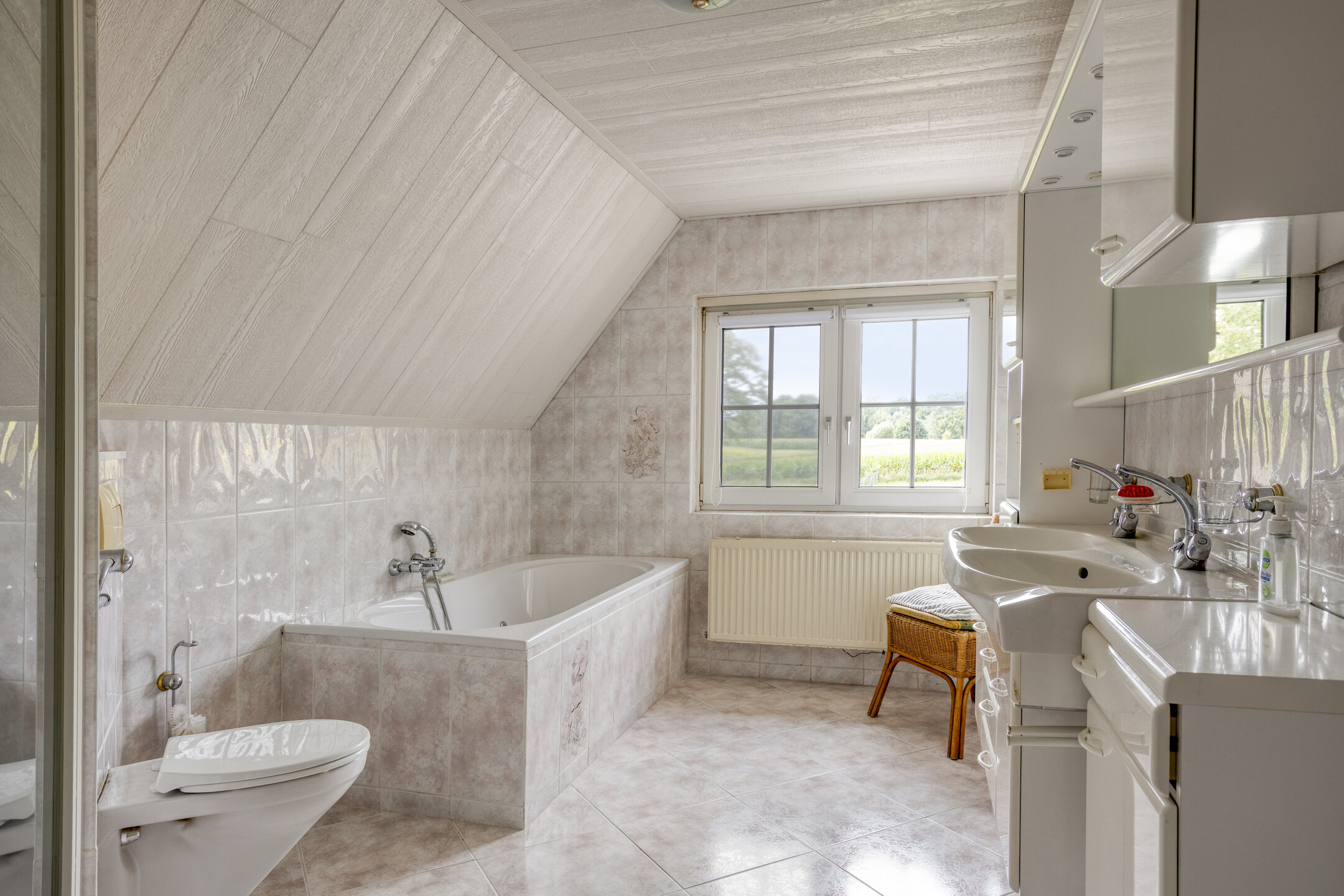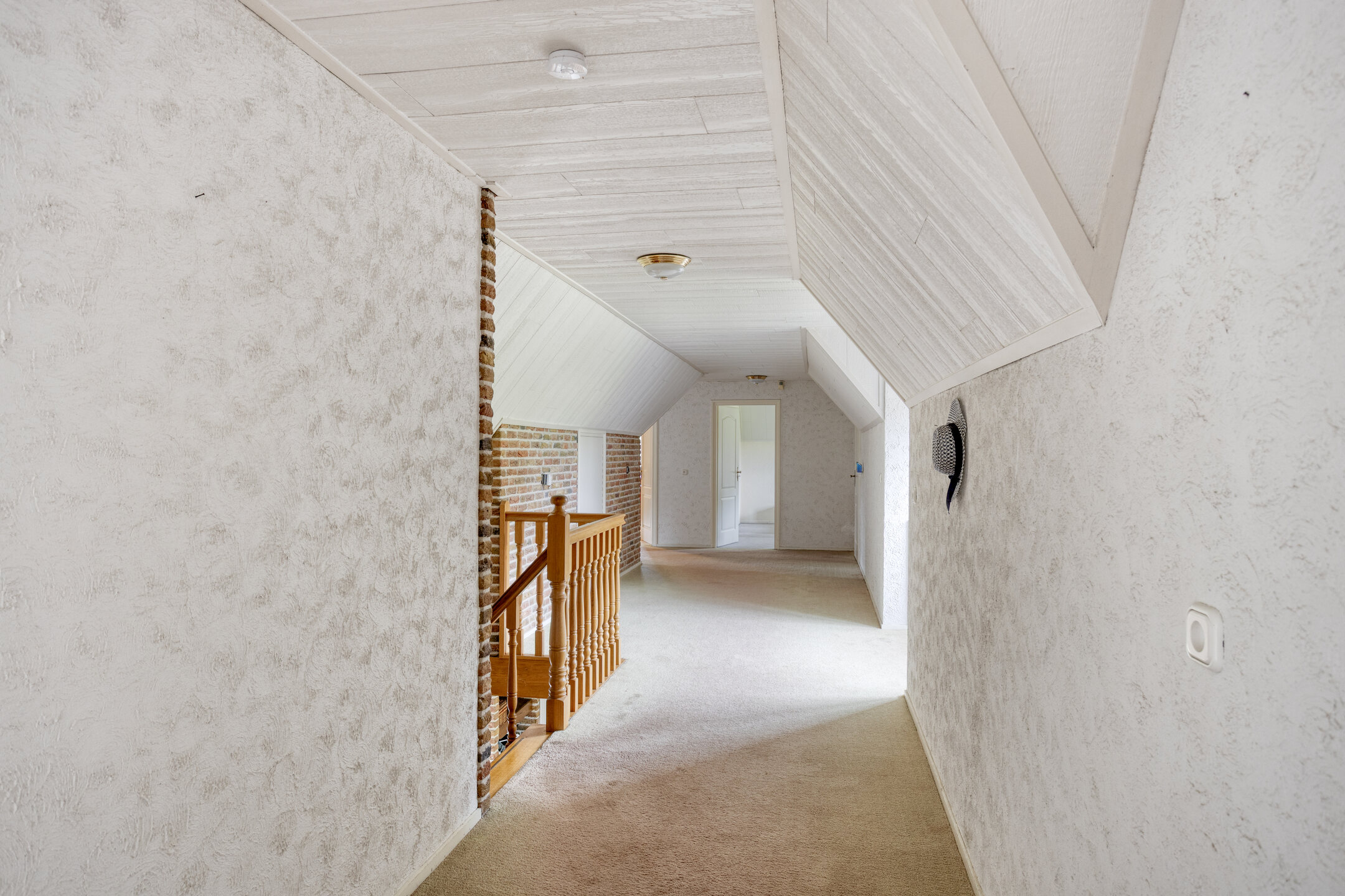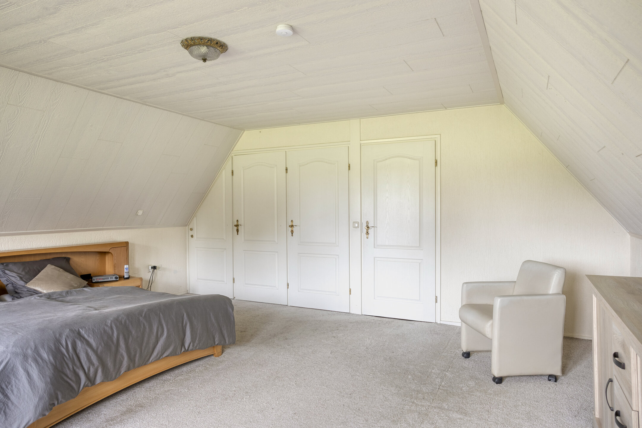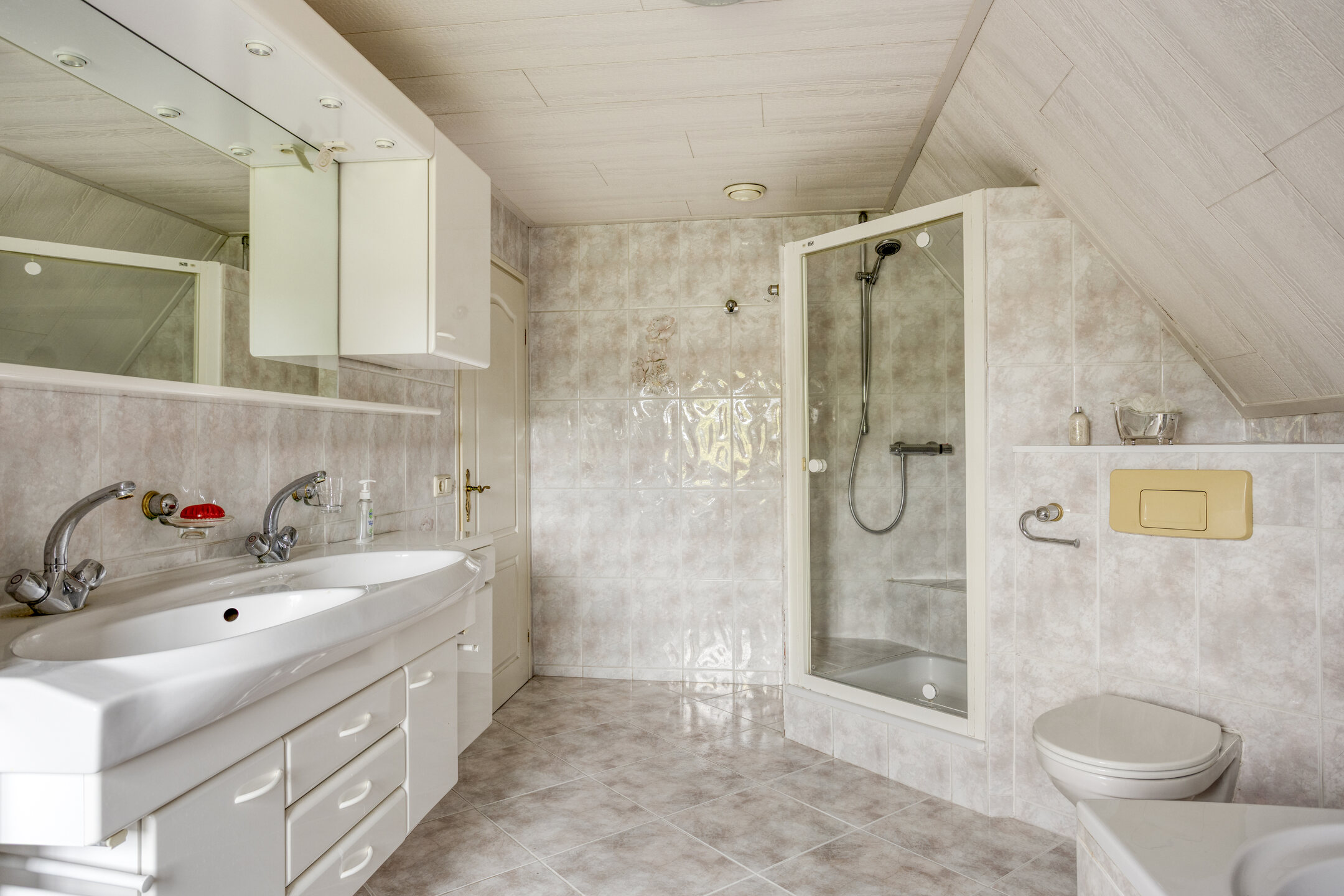 Eerste verdieping: grote overloop met vide en berging, 4 slaapkamers allen met handige vaste kasten, een walk-in-closet en maar liefst twee badkamers. De eerste badkamer is uitgerust met een douchehoek, toilet, ligbad en dubbele wastafel met riant meubel. De tweede badkamer is iets eenvoudiger ingericht met een douche, wastafel met meubel en vrijdragend toilet.