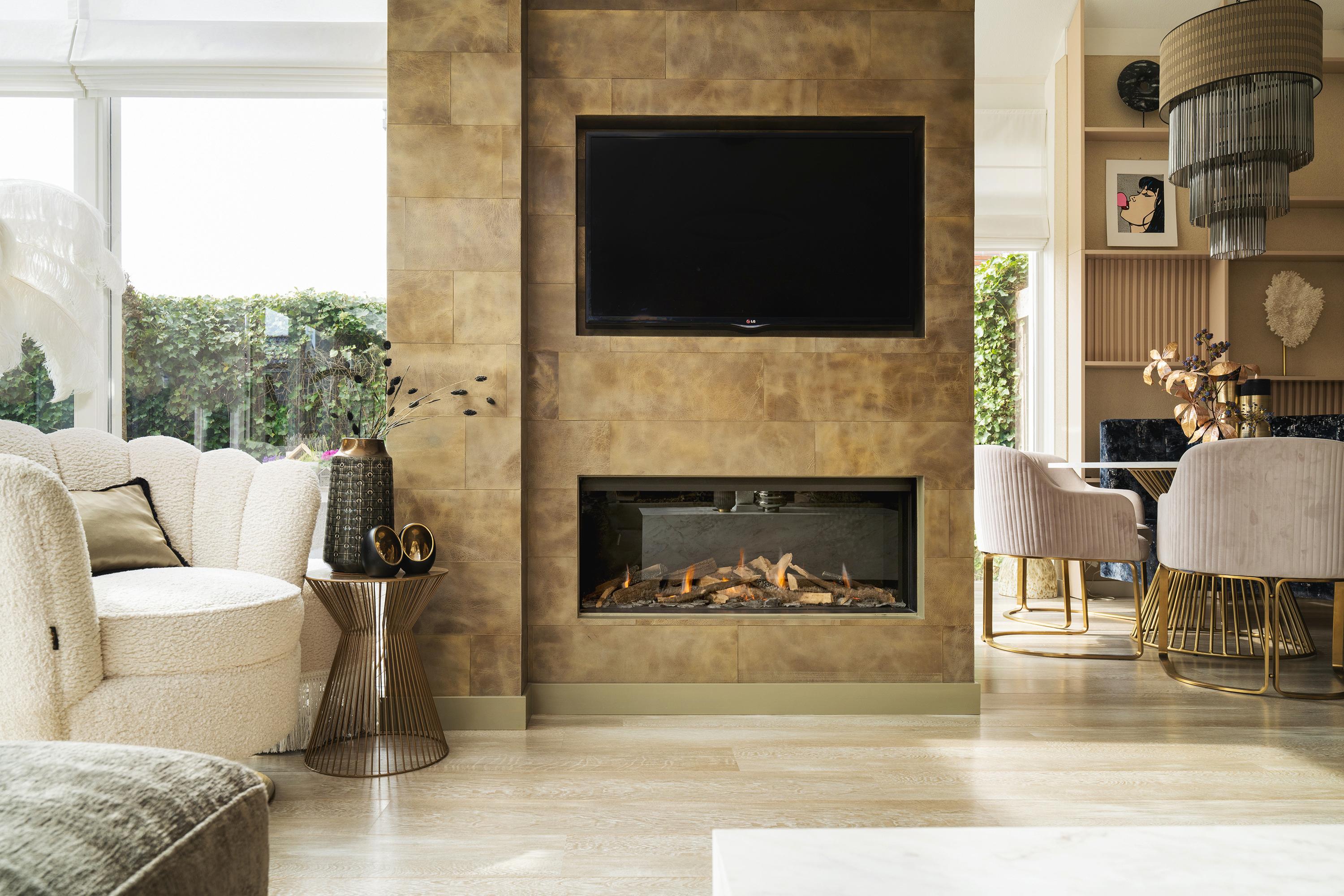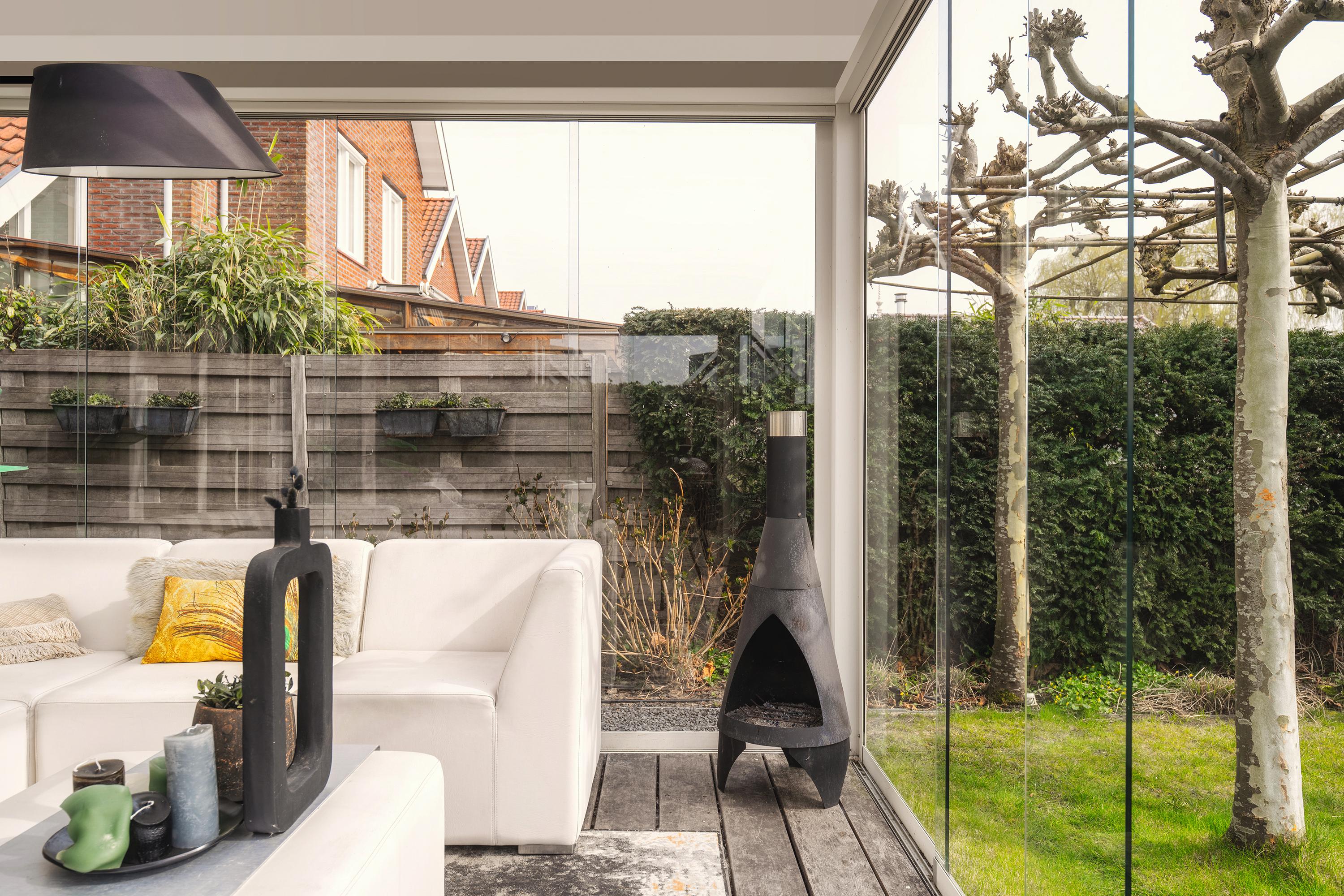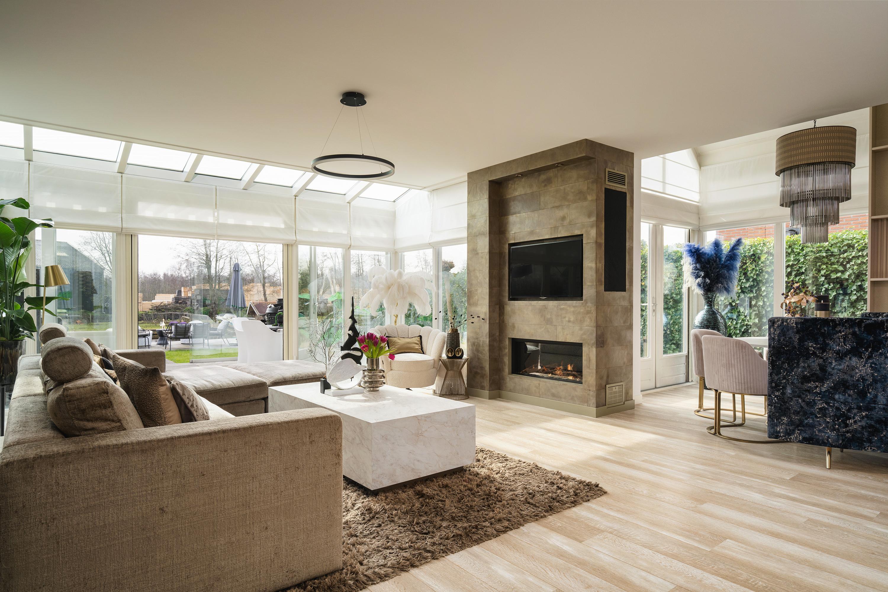 • Living met sfeervolle gashaard, aangrenzend de serre.