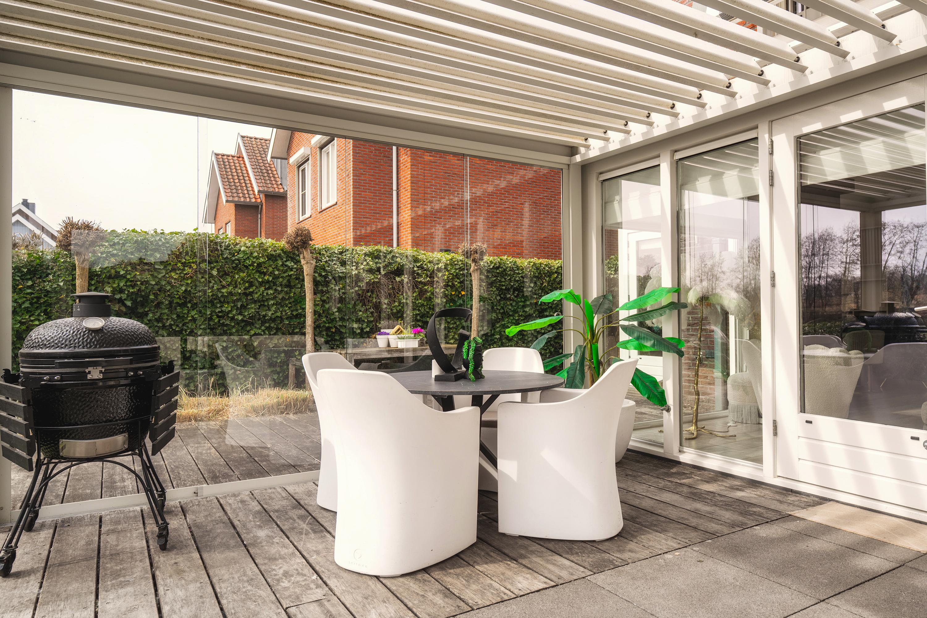 • Verzorgde aangelegde tuin (Zuid), overkapping met lamelkanteldak en slimme afwatering