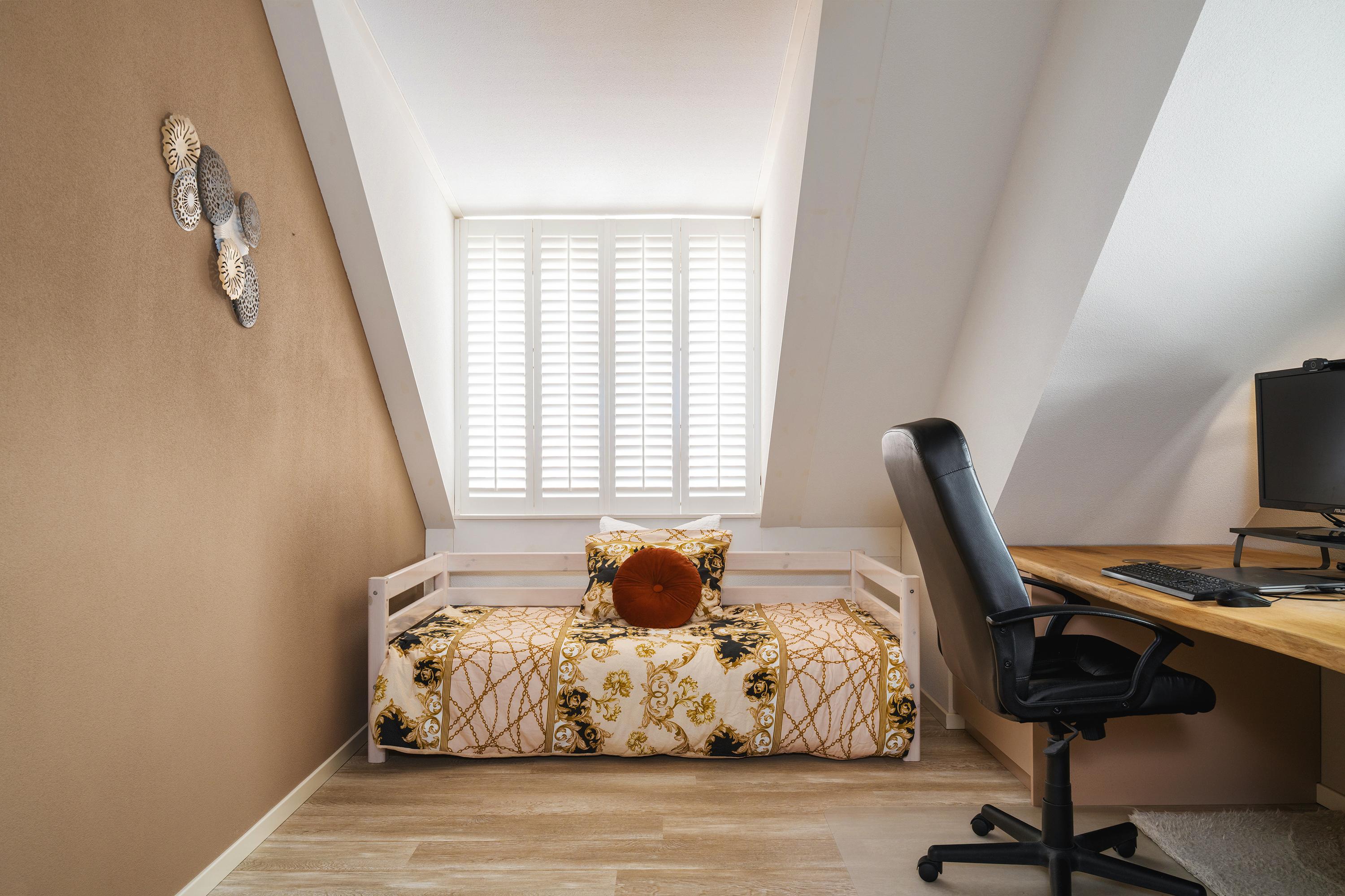 Ruime en lichte overloop door dakkapel, 2 ruime slaapkamers waarvan 1 in gebruik als kantoor, tweede badkamer, technische ruime met centraal stofzuigerunit en zonneboiler (80 liter) voor energiezuinig warm water , wat het huis uitermate geschikt maakt voor grotere gezinnen of gasten.