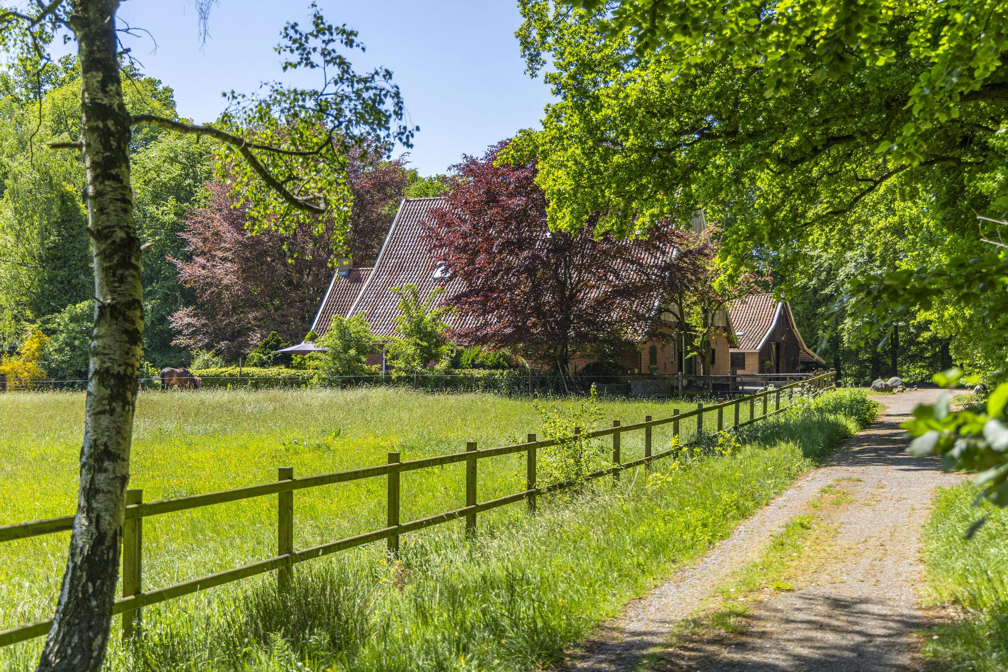 Aan de rand van de rustige en groene villawijk Het Stokhorst ligt dit unieke landgoed op een centrale en toch beschutte locatie. Vanuit de woonboerderij wandel je meteen in het buitengebied de Hoge Boekel met een bosrijk landschap. De omgeving biedt volop mogelijkheden voor wandel- en fietstochten, waardoor je optimaal kunt genieten van de natuur.