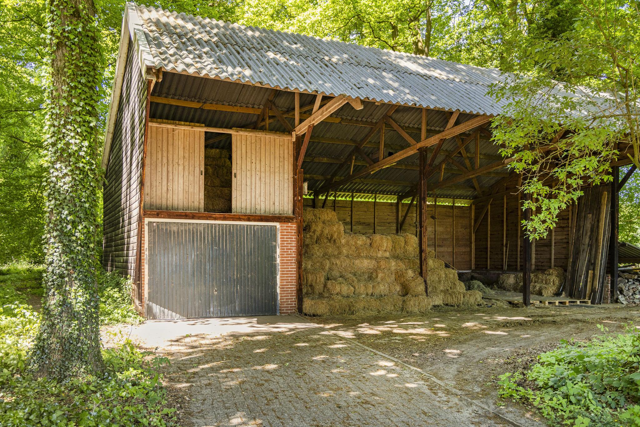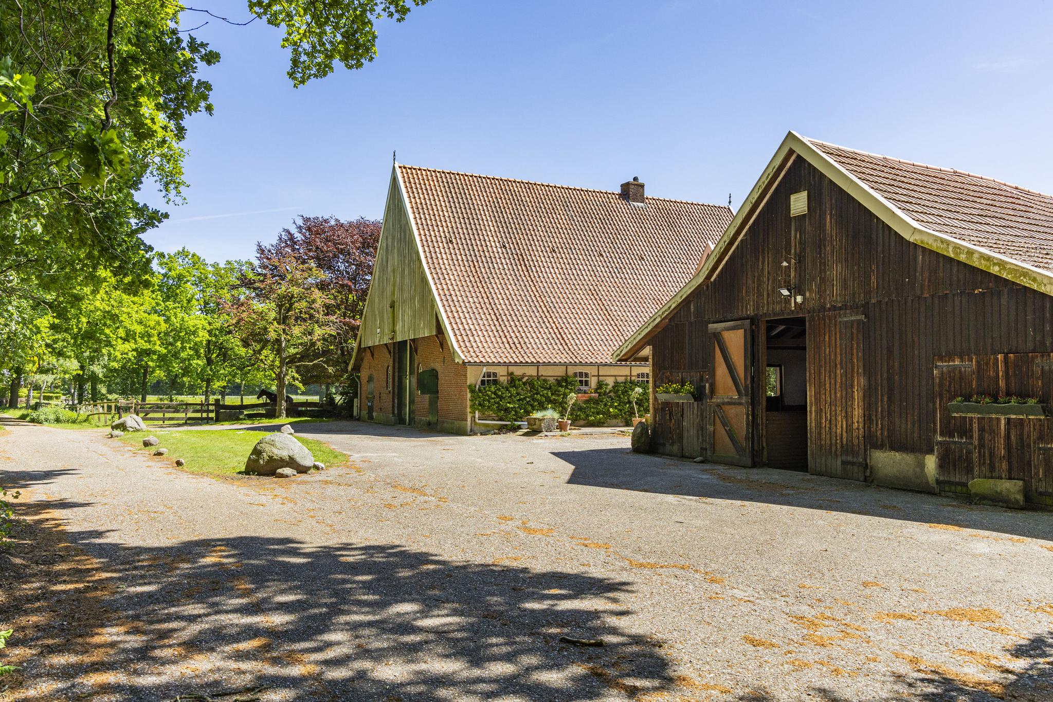 Naast de boerderij staat een grote schuur van maar liefst 225 m², gebouwd in Saksische stijl en voorzien van gemetselde muren met houten topgevels en deuren. Dit bouwwerk is ingericht ten behoeve van de paardenhouderij met meerdere stallen.