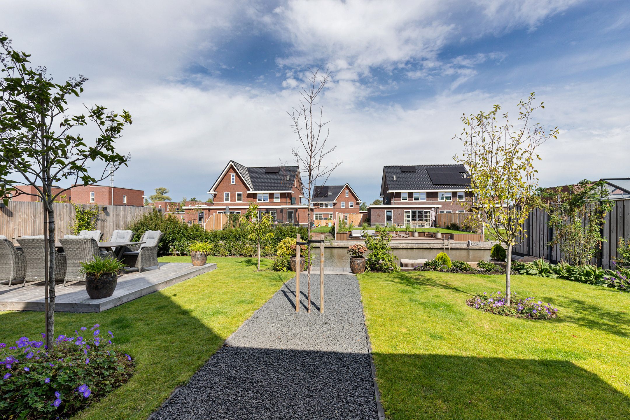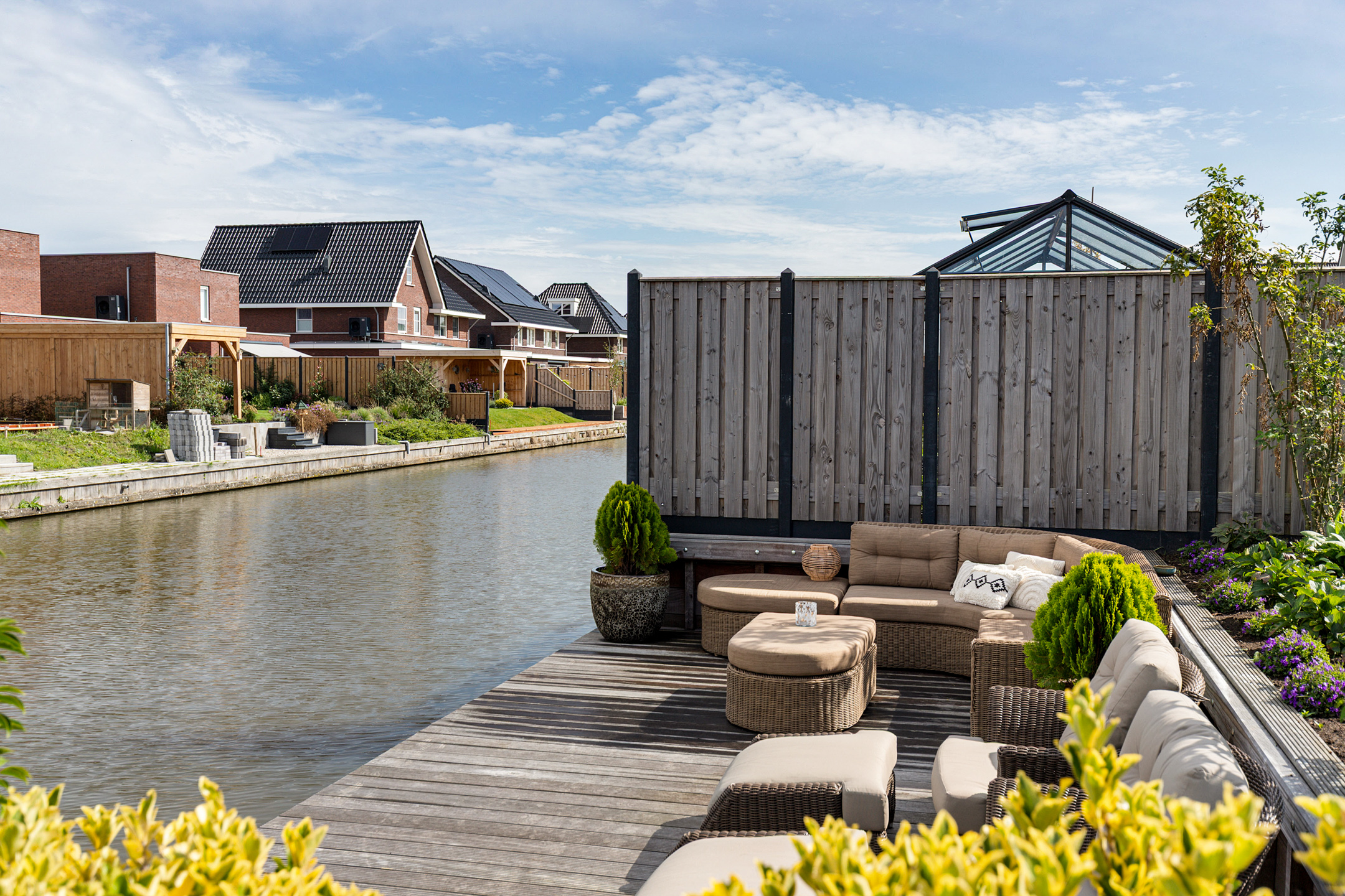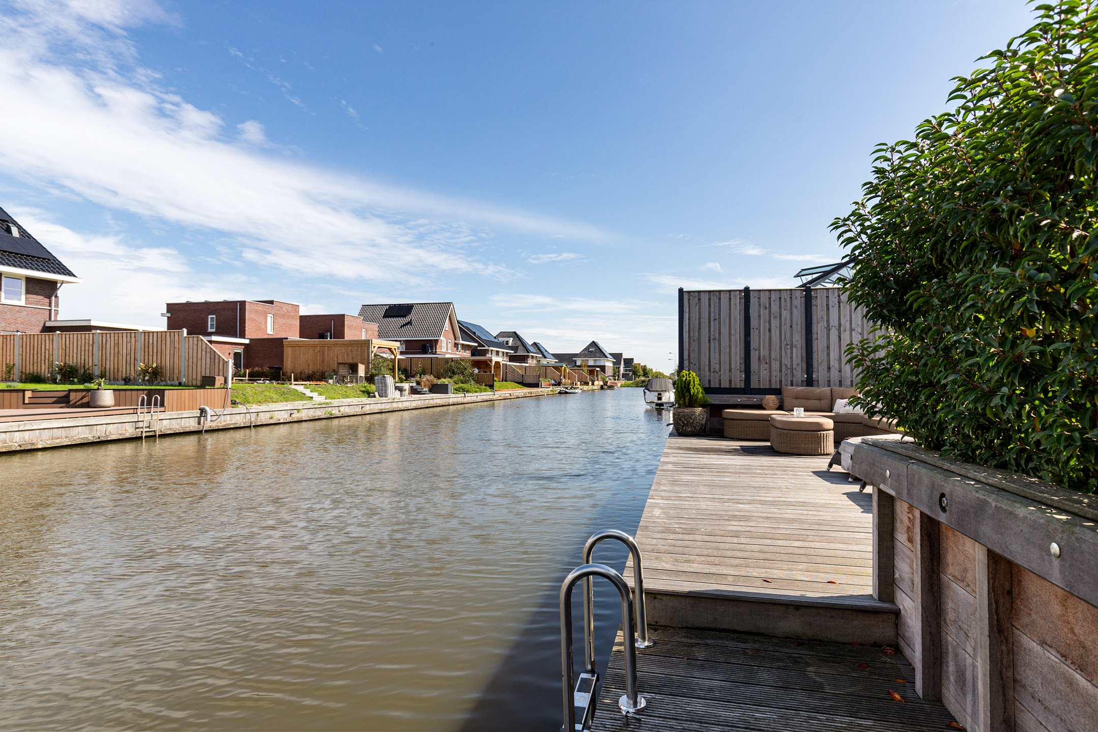 * Professioneel aangelegde tuin met extra diepe 15m hardhouten steiger