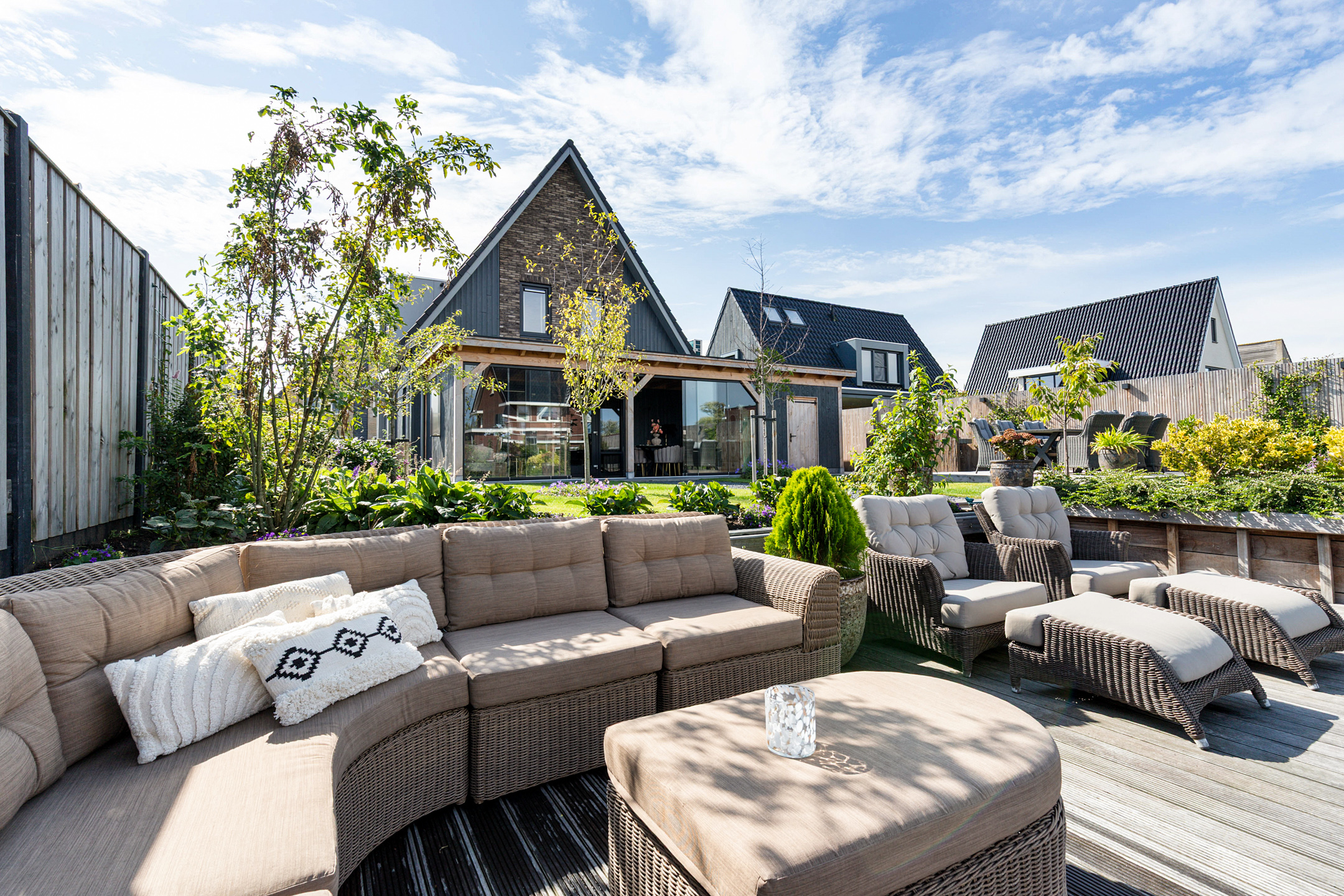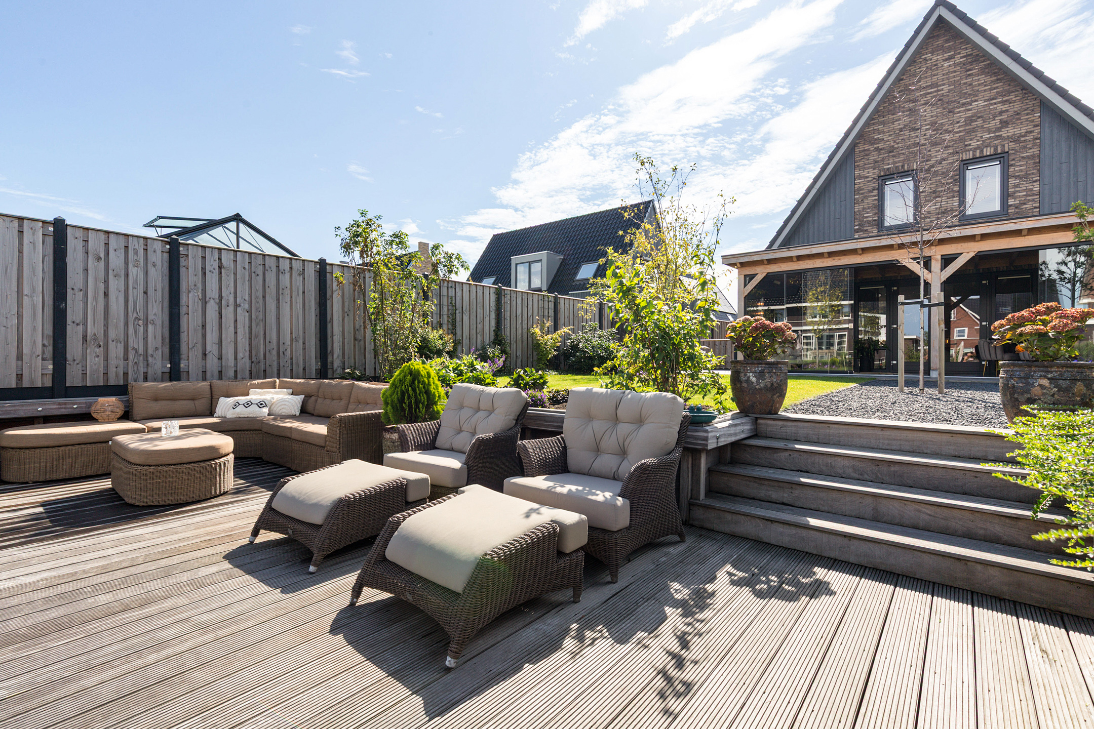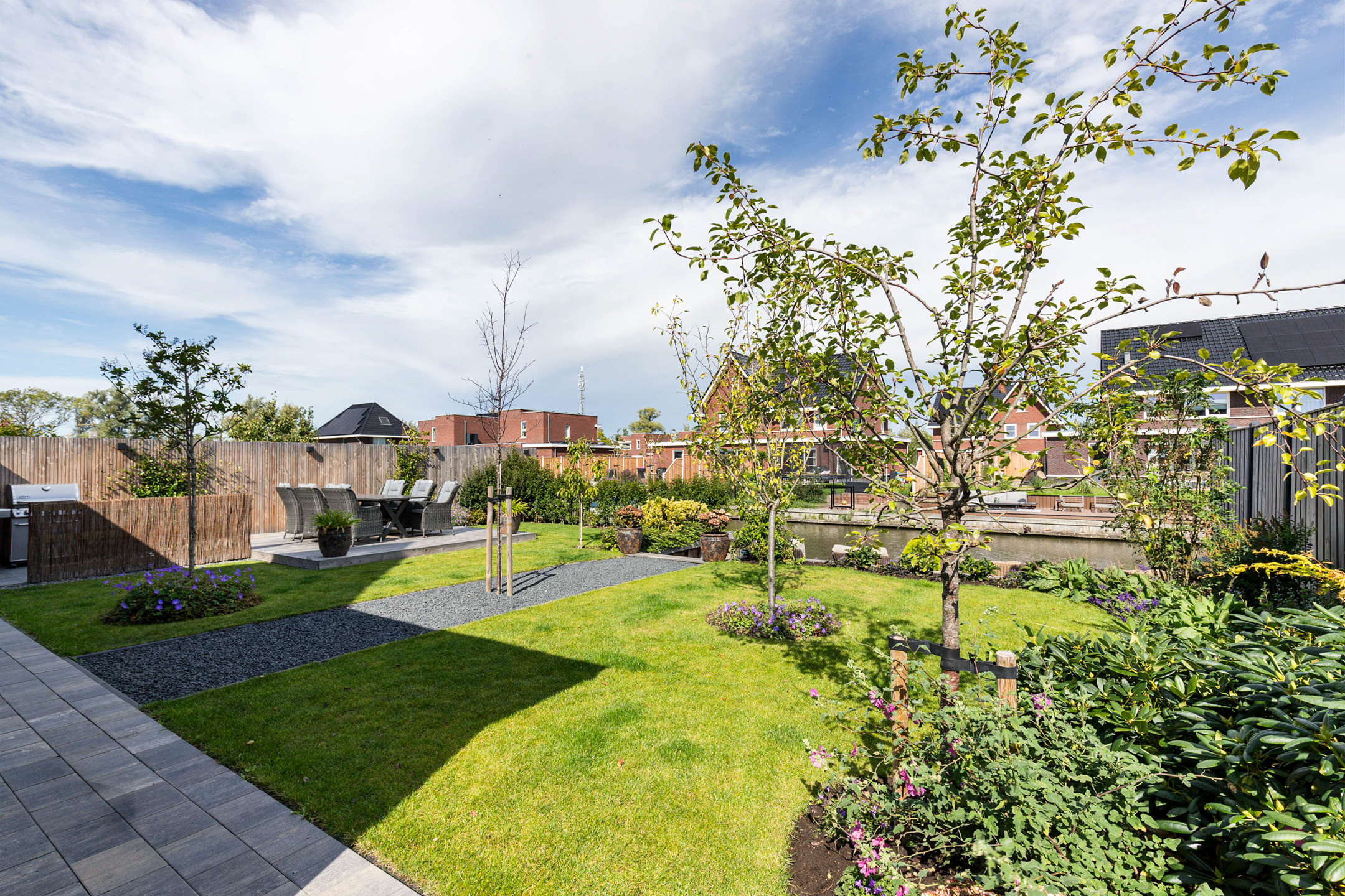 * Professioneel aangelegde tuin met extra diepe 15m hardhouten steiger