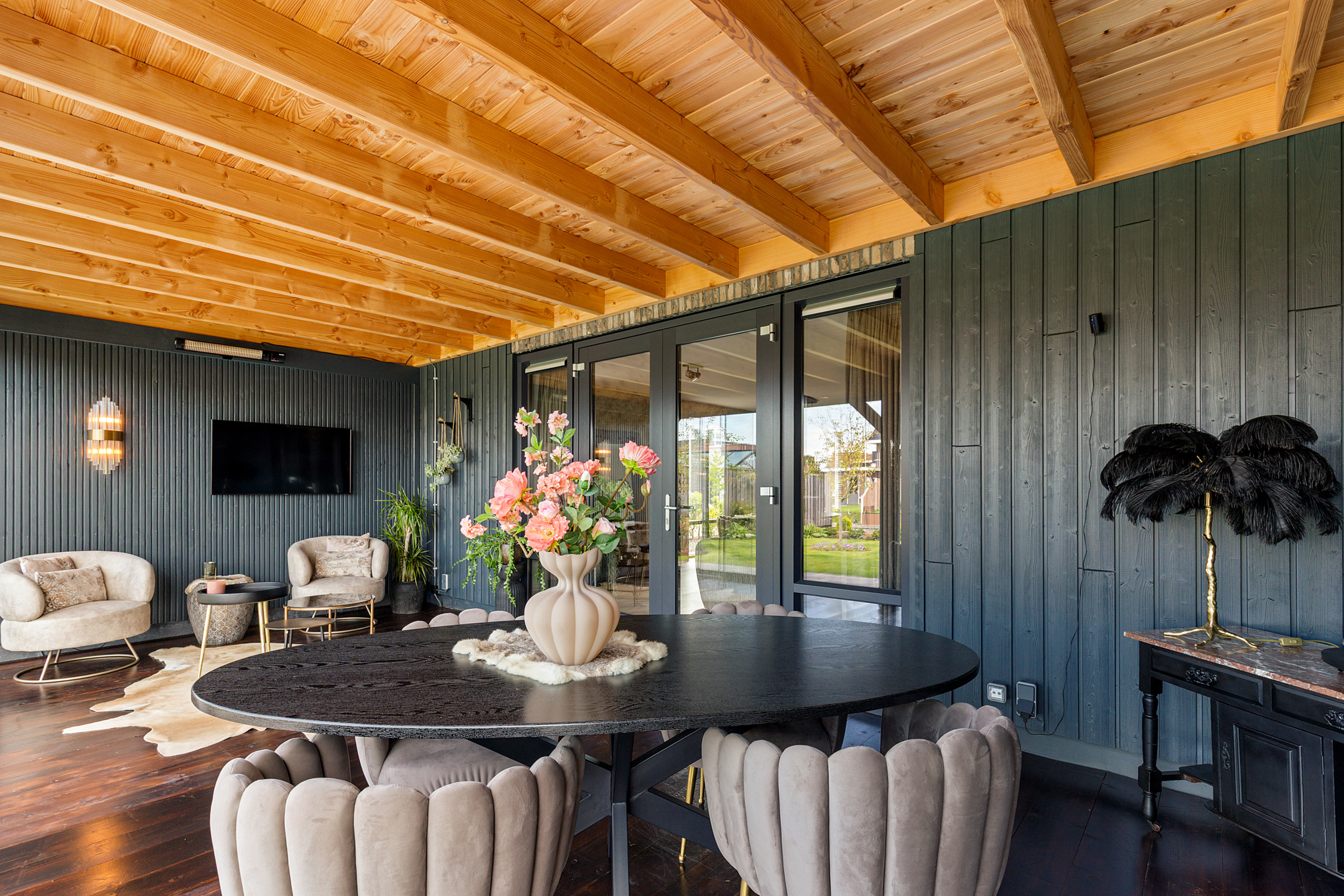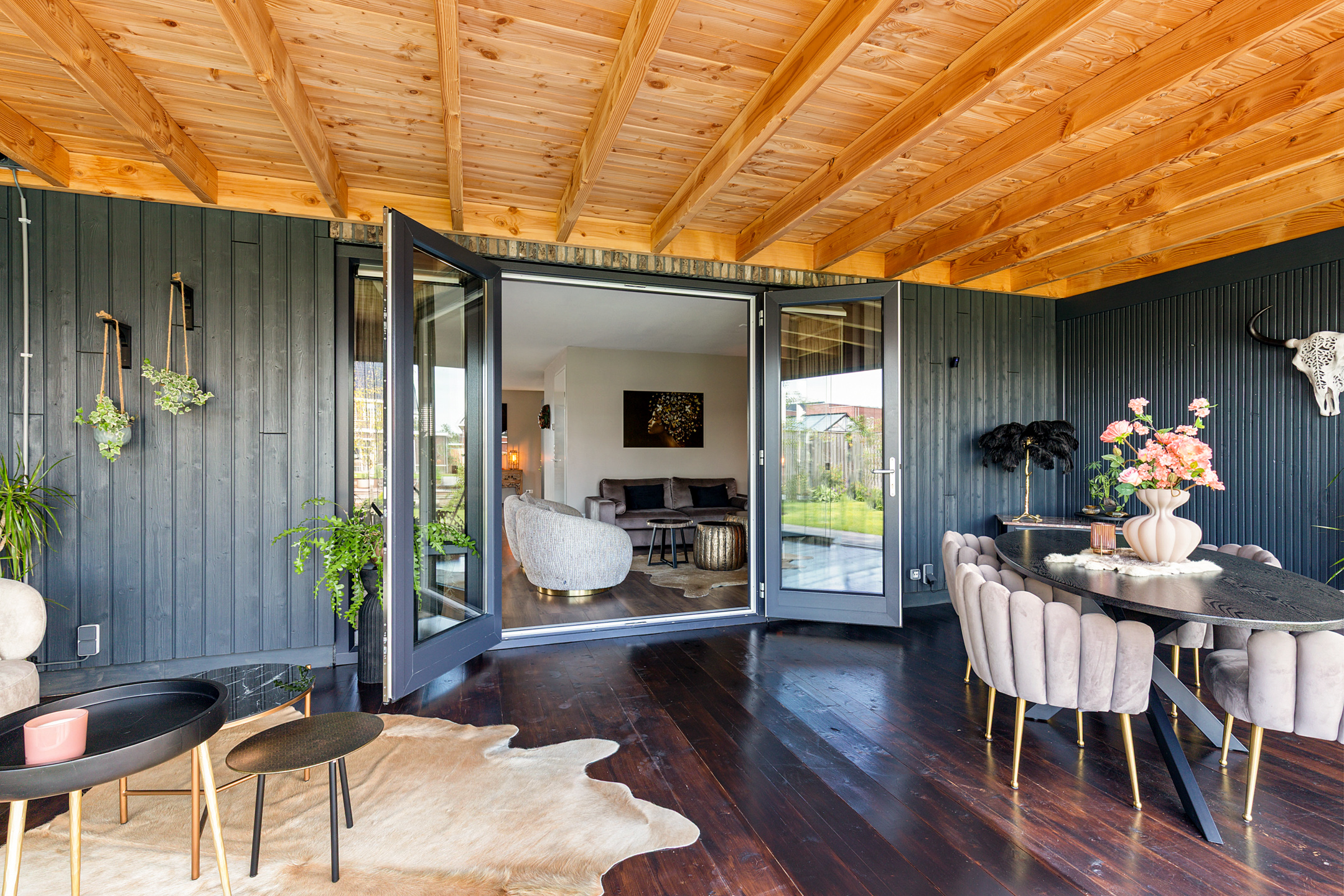 Aan de achterzijde is de woning geschakeld aan een ruime, deels geïsoleerde houten berging. Ideaal voor fietsen, tuinspullen en watersportmaterialen.