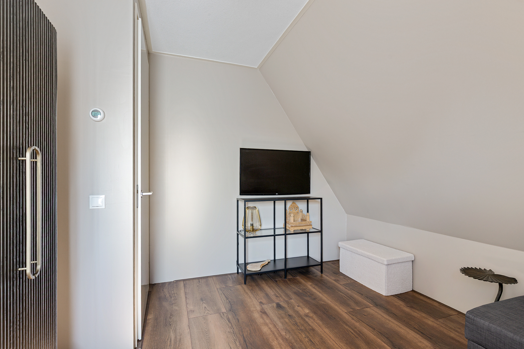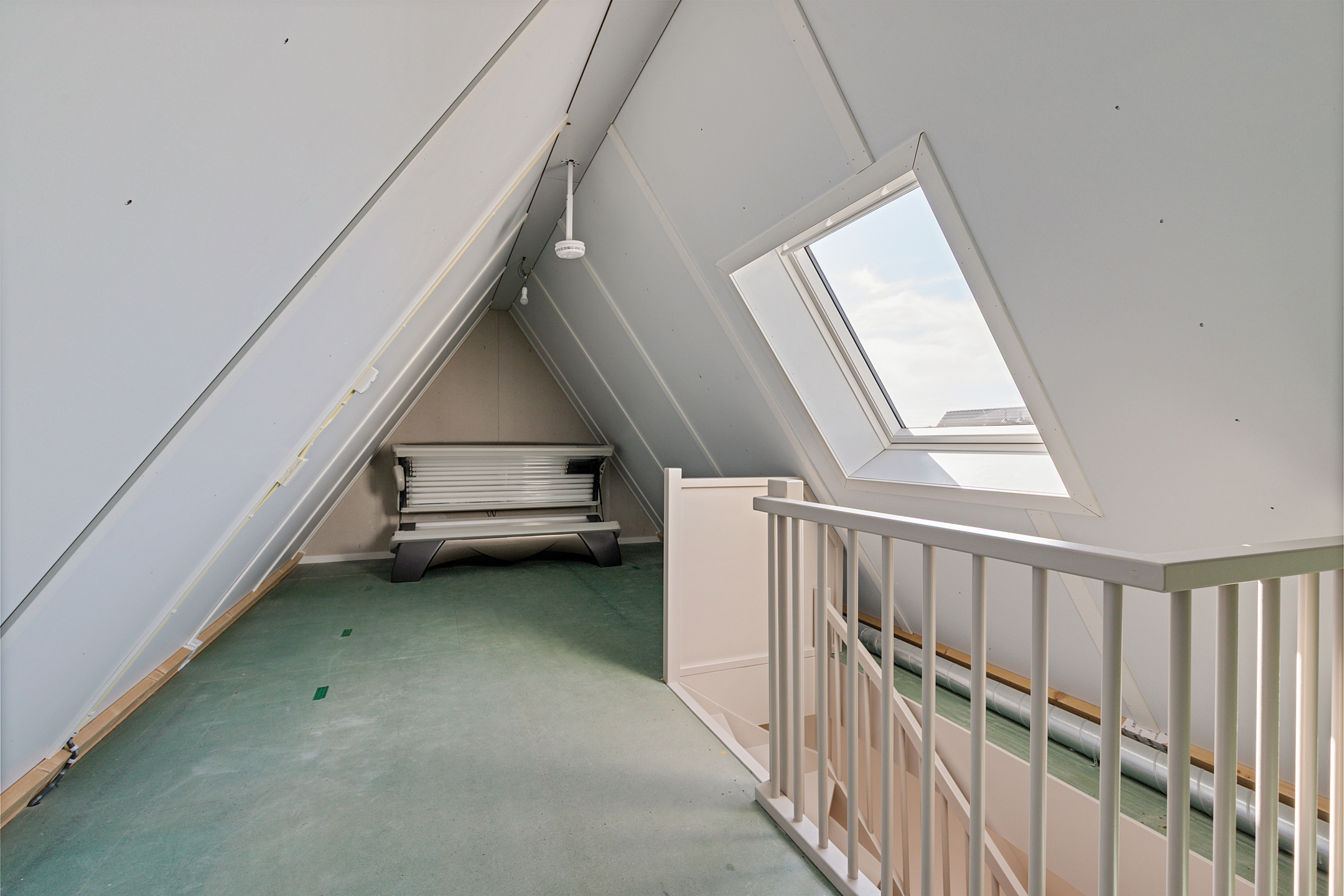 Een vaste trap leidt naar de verrassend ruime tweede verdieping met groot Velux-dakraam. Deze open ruimte biedt volop mogelijkheden: twee extra slaapkamers, een royale werkkamer of zelfs een tweede badkamer behoren tot de opties.