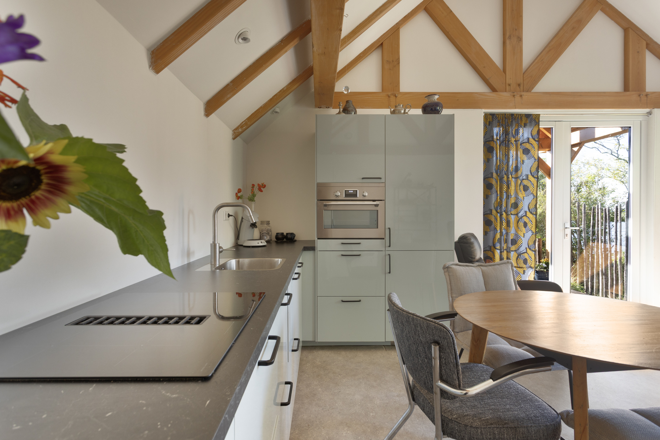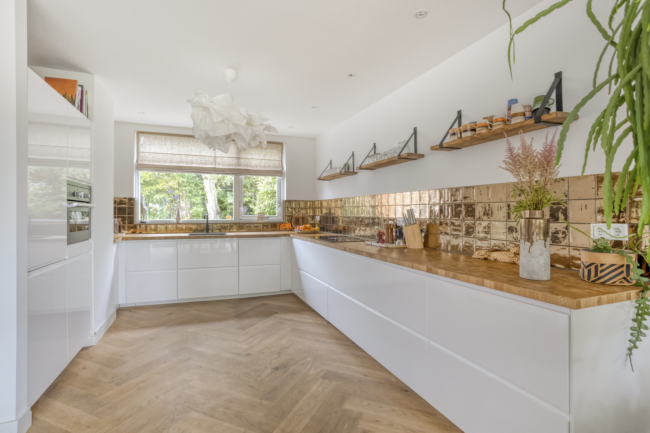 De keuken is met het XL aanrechtblad een feestje voor wie van koken houdt. Het beschikt over een Quooker, inductiekookplaat met ingebouwde afzuiging, combimagnetron, vaatwasser én een royale koel-vriescombinatie.