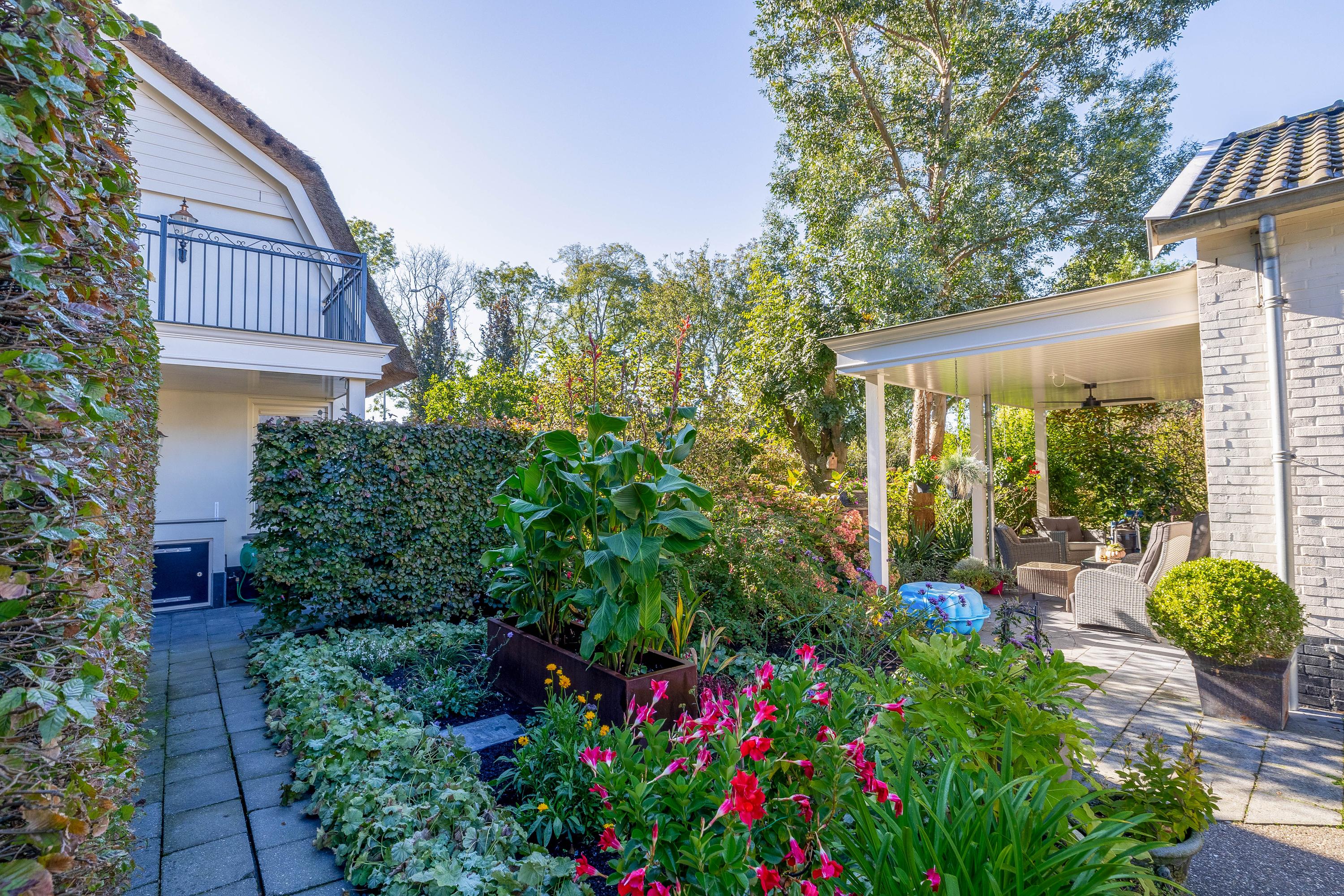 Dit vrijstaande huis, oorspronkelijk gebouwd in 1929, is in 2011 grondig gerenoveerd met respect voor de sfeer en uitstraling. Zo zijn onder andere het dakbeschot vernieuwd en is er een prachtige rieten kap geplaatst, gecombineerd met moderne isolatie. Met een woonoppervlakte van ca. 180 m2 is er ruimte genoeg voor het hele gezin. Dankzij de dak-, vloer- en spouwmuurisolatie en HR++ glas is het huis bovendien lekker energiezuinig (energielabel B) en profiteer je van lage energielasten. Binnen tref je een sfeervolle woonkamer met sfeervolle pelletkachel en veel licht, een ruime woonkeuken, bijkeuken, kelder en een kantoorruimte aan, ideaal voor werken aan huis. De verdieping biedt vier slaapkamers, een luxe badkamer en een grote bergvliering.