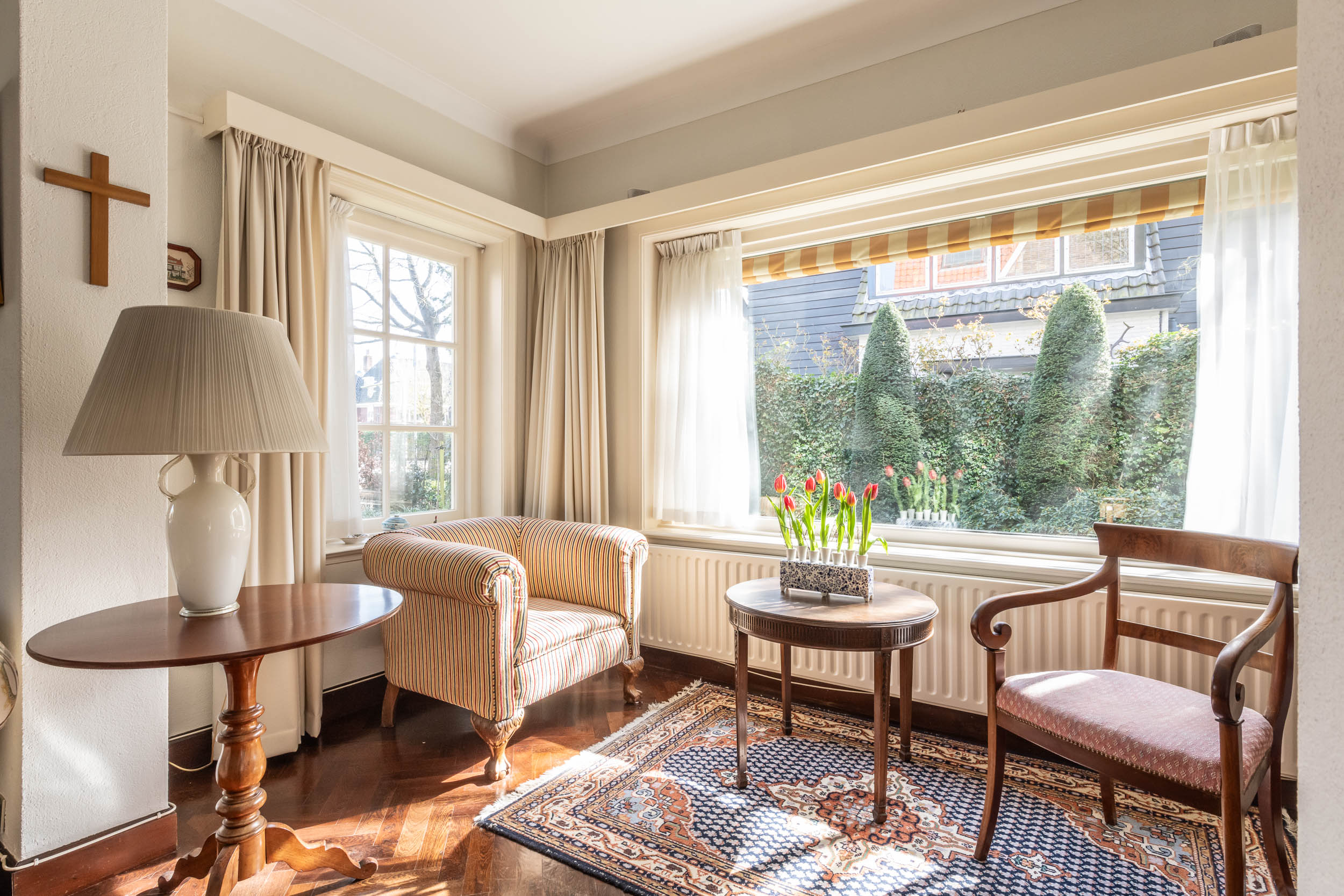 This beautiful, free-standing 1930s villa, with a private drive and attached studio, is centrally situated in Heemstede. This cosy and spacious family home with 6 bedrooms and 2 bathrooms is ideal for families seeking both space and charm. The home combines authentic details with a light, airy layout. Thanks to its advantageous positioning on the plot, the villa enjoys a respectably-sized front garden and a spacious, beautifully designed west-facing back garden. Here, you can enjoy long afternoons and evenings on one of the sunny terraces with peace and privacy. The back garden can be reached from the front garden through the locking gates. It has been carefully laid out, featuring greenery that flourishes throughout the season. The central location of the home is highly attractive: a short distance from various primary and other schools, sports clubs and nature - including the Haarlemmerhout and the Groenendaalse woods - and within walking distance of great shops, cosy restaurants and cafés on both the Binnenweg and the Jan van Goyenstraat. The historic city centre of Haarlem, the dunes and the beach can easily be reached by bike. With the NS station Heemstede-Aerdenhout and access roads to Amsterdam, Schiphol and The Hague nearby, accessibility is outstanding. In short: a charming family home where space, cosiness and a central location perfectly merge.
