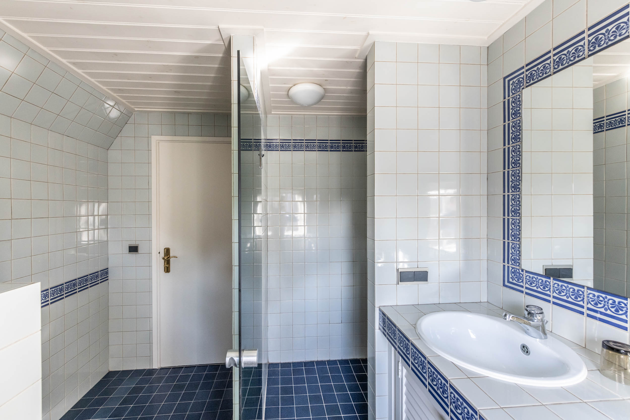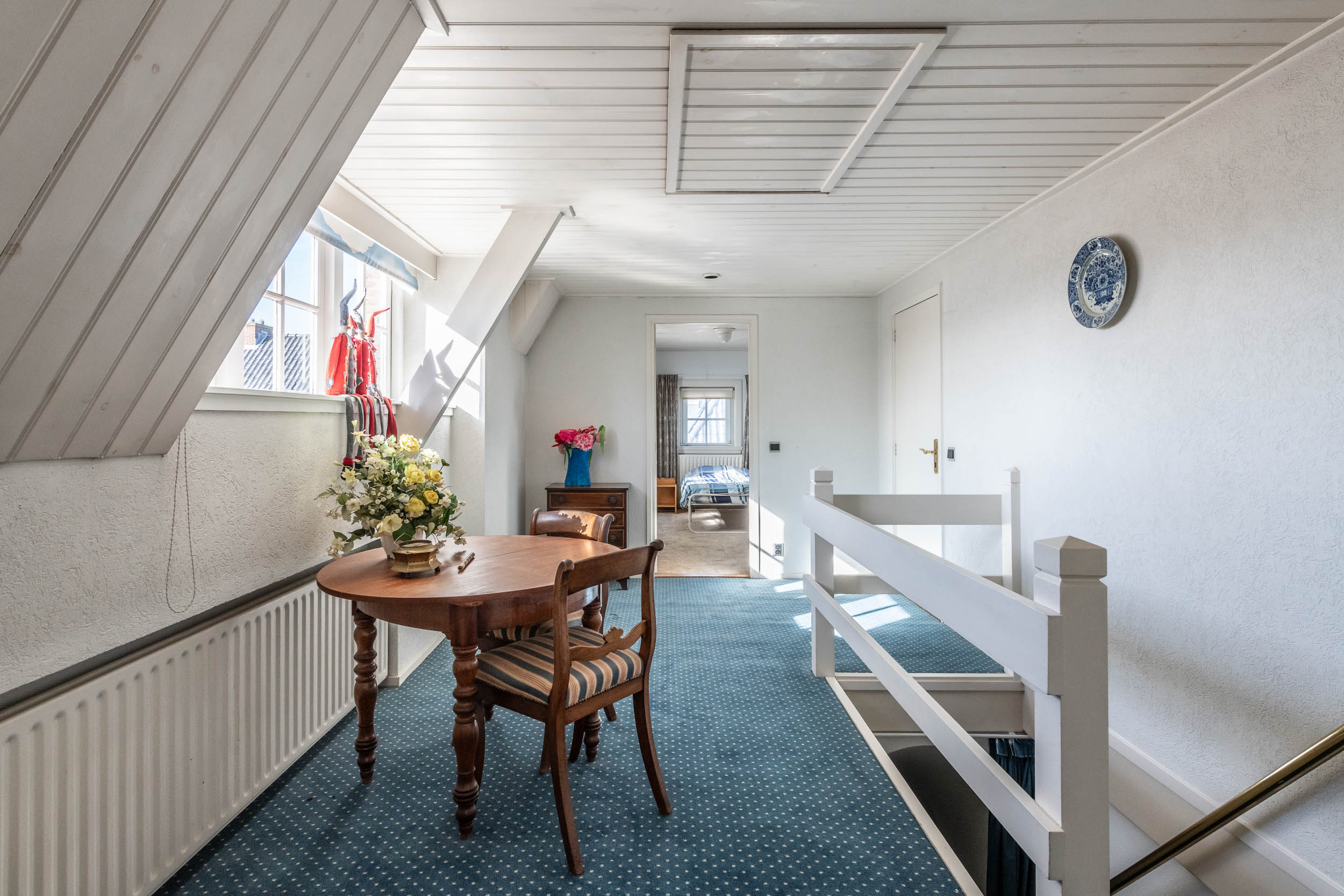 De overloop beschikt over een grote dakkapel. Op deze verdieping liggen twee slaapkamers, beide voorzien van een dakraam en vaste kasten. Via de overloop is een ruime berging te bereiken met de boileropstelling. Op deze verdieping bevindt zich ook een 2e badkamer met inloopdouche, wc en wastafelmeubel met dubbele wastafels. Via een vlizotrap is de ruime vliering met stahoogte te bereiken.