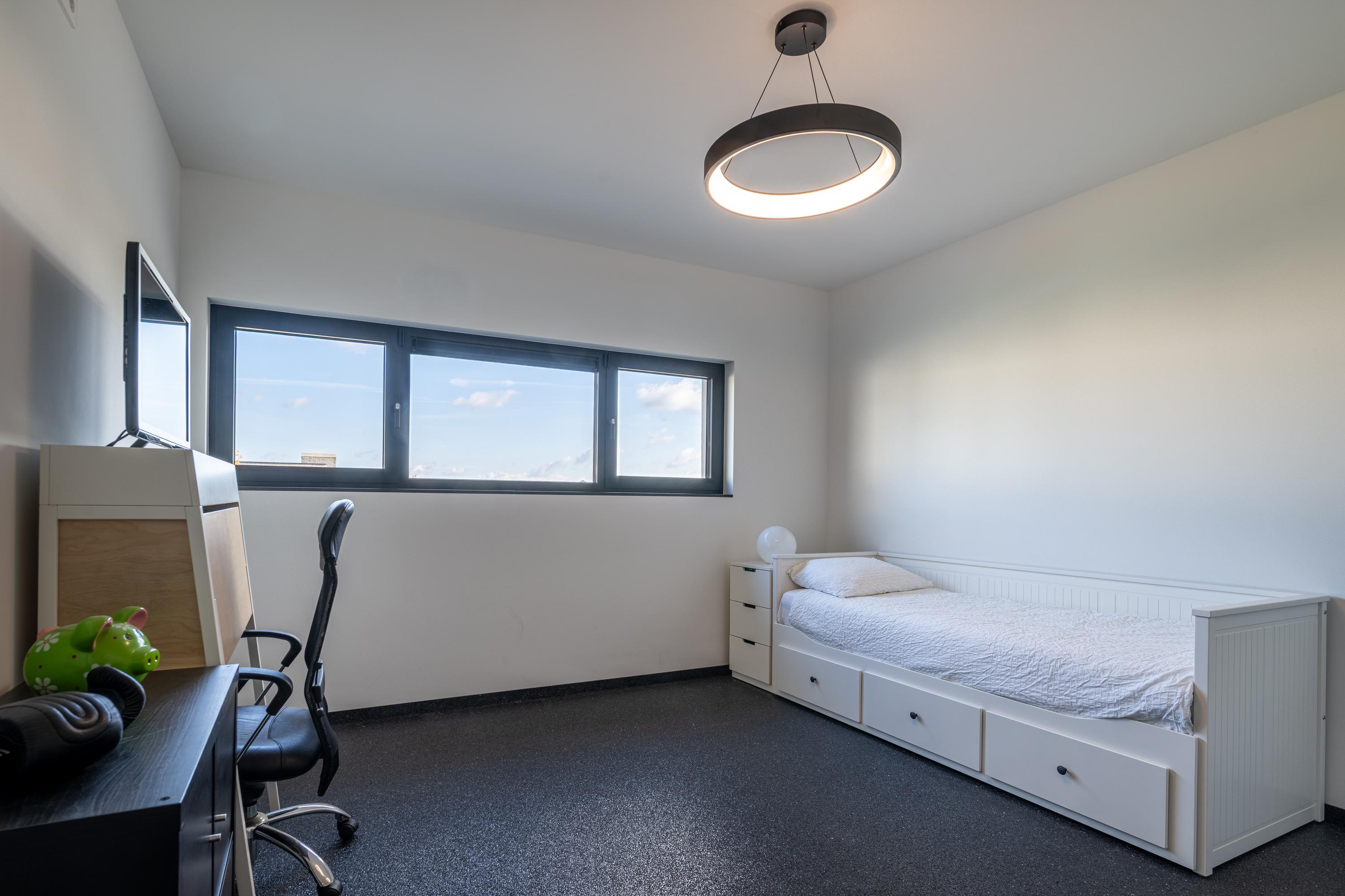 Aan de voorzijde is de slaapvleugel gelegen met maar liefst drie volwaardige slaapkamers, stuk voor stuk ruim van opzet en heerlijk licht dankzij de grote raampartijen. De strakke afwerking met een grindvloer in alle kamers zorgt voor een rustige, uniforme uitstraling en is bovendien onderhoudsvriendelijk en duurzaam.