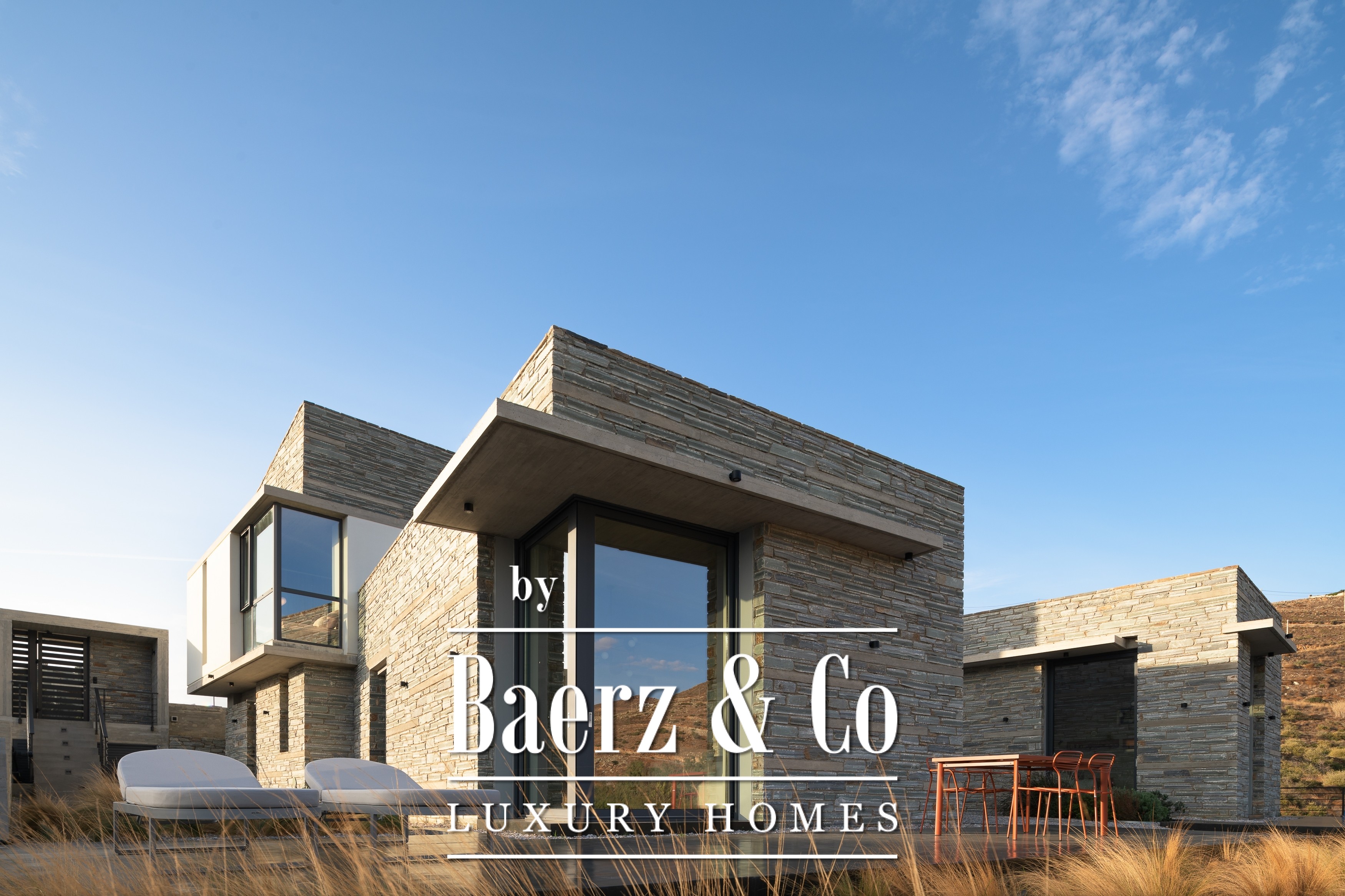 Gelegen op een perceel van 650 m² bestaat het eigendom uit twee prachtig ontworpen stenen villa’s met een totale woonoppervlakte van 240 m². De architectuur combineert moderne elegantie met traditionele Karystos-steen, waardoor de gebouwen harmonieus opgaan in het natuurlijke kustlandschap van zand, rotsen en mediterrane begroeiing. Elk detail is ontworpen om de unieke ligging aan zee te benadrukken en maximaal te laten beleven.