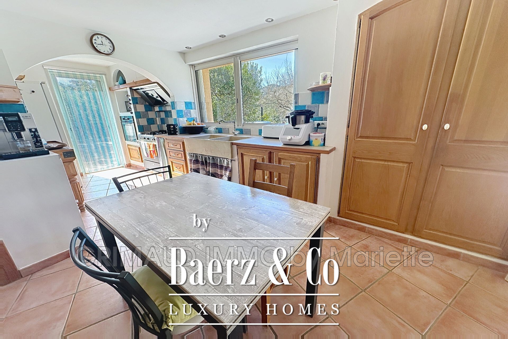 Een aparte slaapkamer met douche en toilet biedt gasten zelfstandigheid. Daarnaast zijn er twee volledig uitgeruste appartementen, elk met keuken en douche, waardoor er volop mogelijkheden ontstaan voor langere verblijven of voor personeel. De dubbele carport en het terras onderstrepen het praktische gevoel van luxe, terwijl de ligging binnen La Garde-Freinet zorgt voor rust en discretie in het dagelijks leven.
