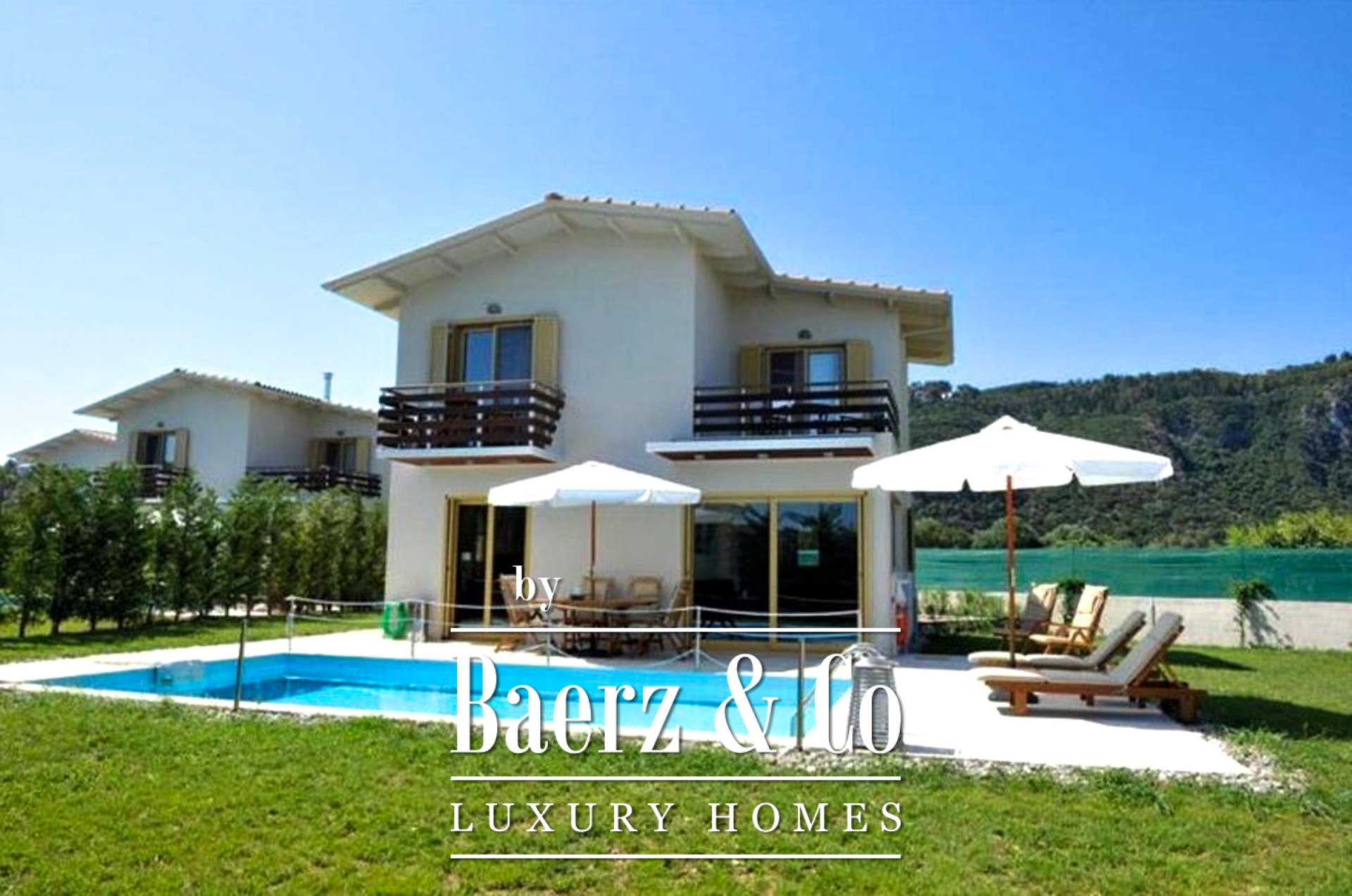 Vrijstaand huis Agios Ioannis Lefkada is discreet gelegen op een toplocatie, in een rustige omgeving op slechts enkele minuten van Lefkada-Stad en binnen 500 meter van zee. Deze woning, gebouwd in 2011 op een perceel van 640 m², biedt 94 m² woonoppervlak, een privézwembad van 30 m² en fraai aangelegde tuinen. Het huis bestaat uit drie functionele woonlagen. Op de begane grond bevindt zich een woonkamer met energiezuinige open haard, een volledig uitgeruste keuken, een gastentoilet en een loungehoek. Op de eerste verdieping beschikken beide slaapkamers over een eigen badkamer en bieden toegang tot drie afzonderlijke balkons met uitzicht op zee en vrij panorama. Het souterrain biedt een berging, stookruimte, olietank en een boiler van 160 liter.