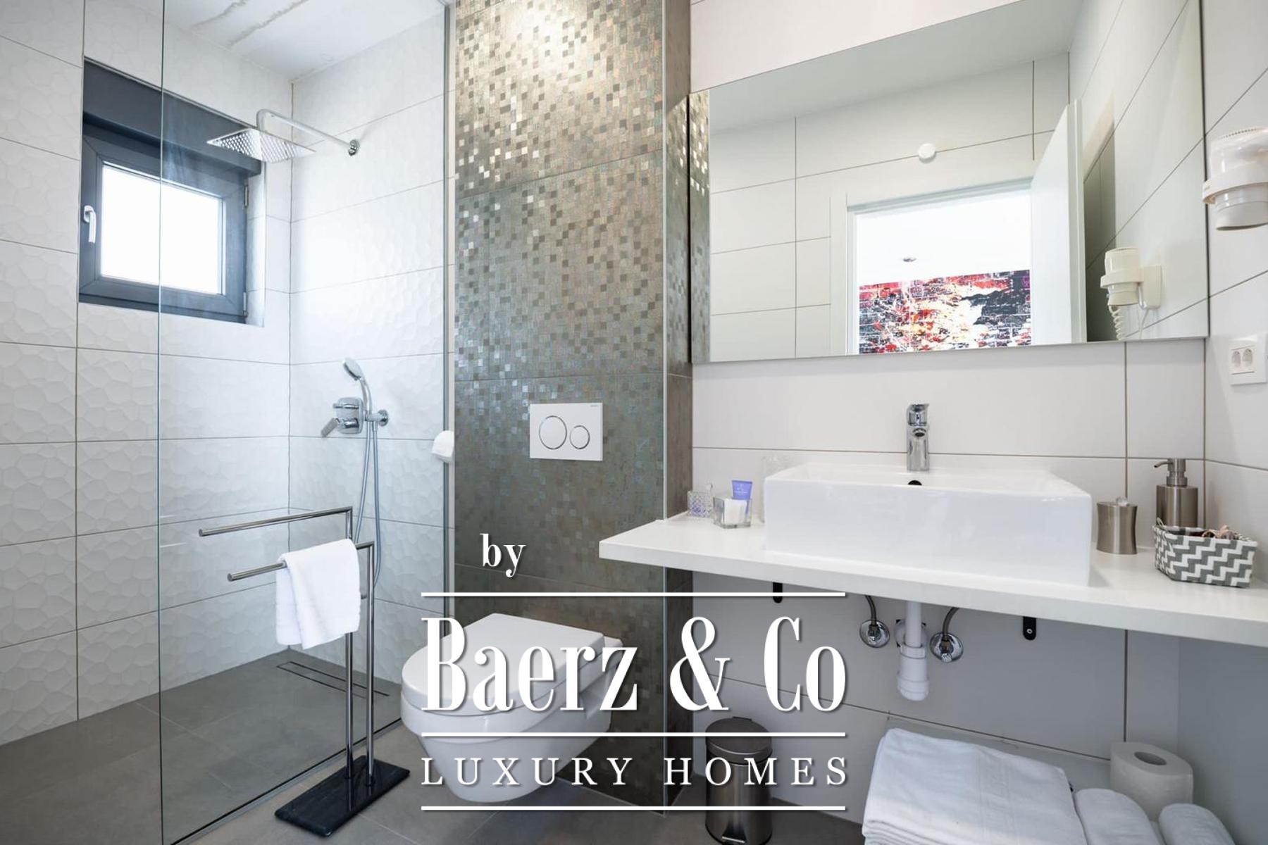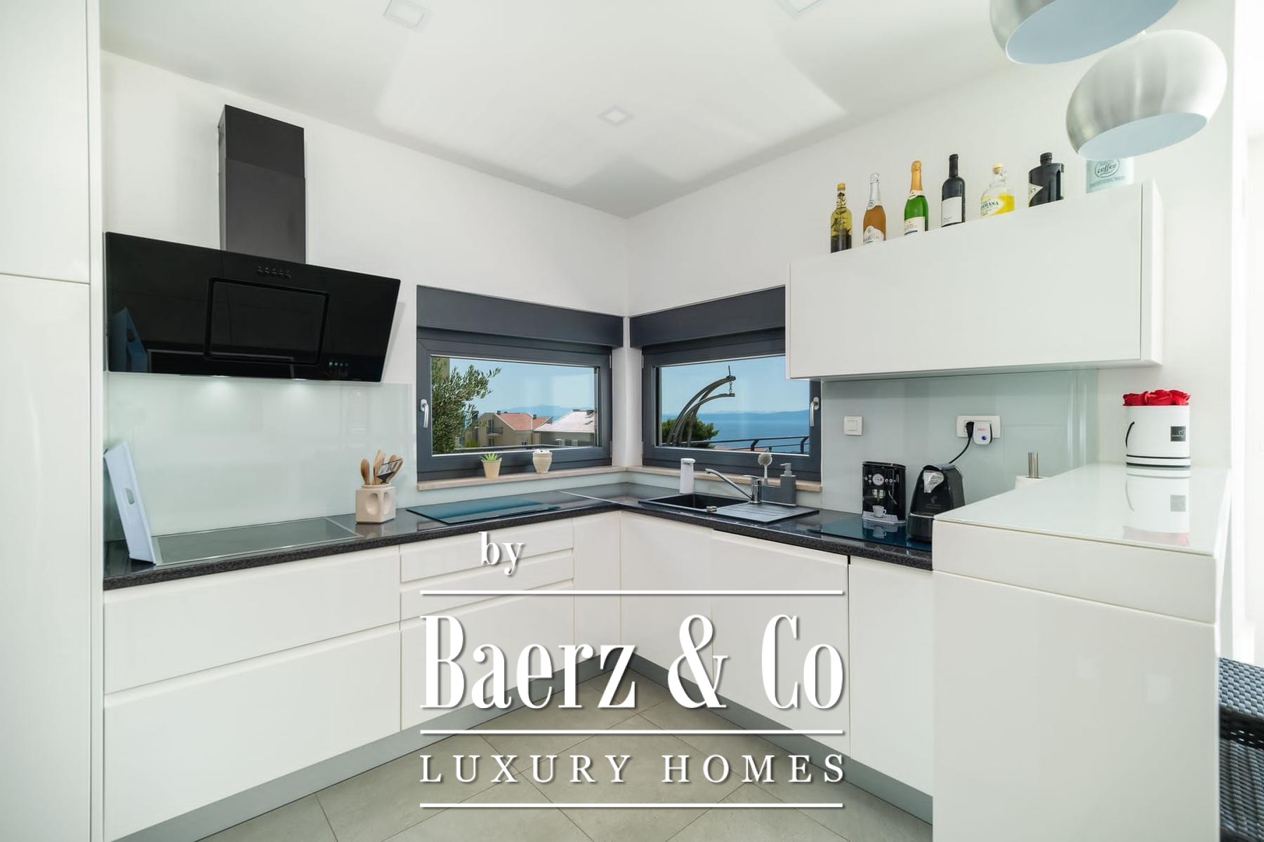 Villa Makarska bevindt zich op een verhoogde locatie, wat een panoramisch uitzicht biedt over zee en de historische stad beneden. Deze villa in Makarska beschikt over 450 m² woonoppervlakte, geïntegreerd op een perceel van 448 m² en benadrukt daarmee de duidelijke verbinding tussen binnen- en buitenleven. De zuidgerichte ligging zorgt in elke hoofdruimte voor constant daglicht, waardoor het dagelijks leven wordt verrijkt met uitzichten die veranderen van zonsopkomst tot avond.