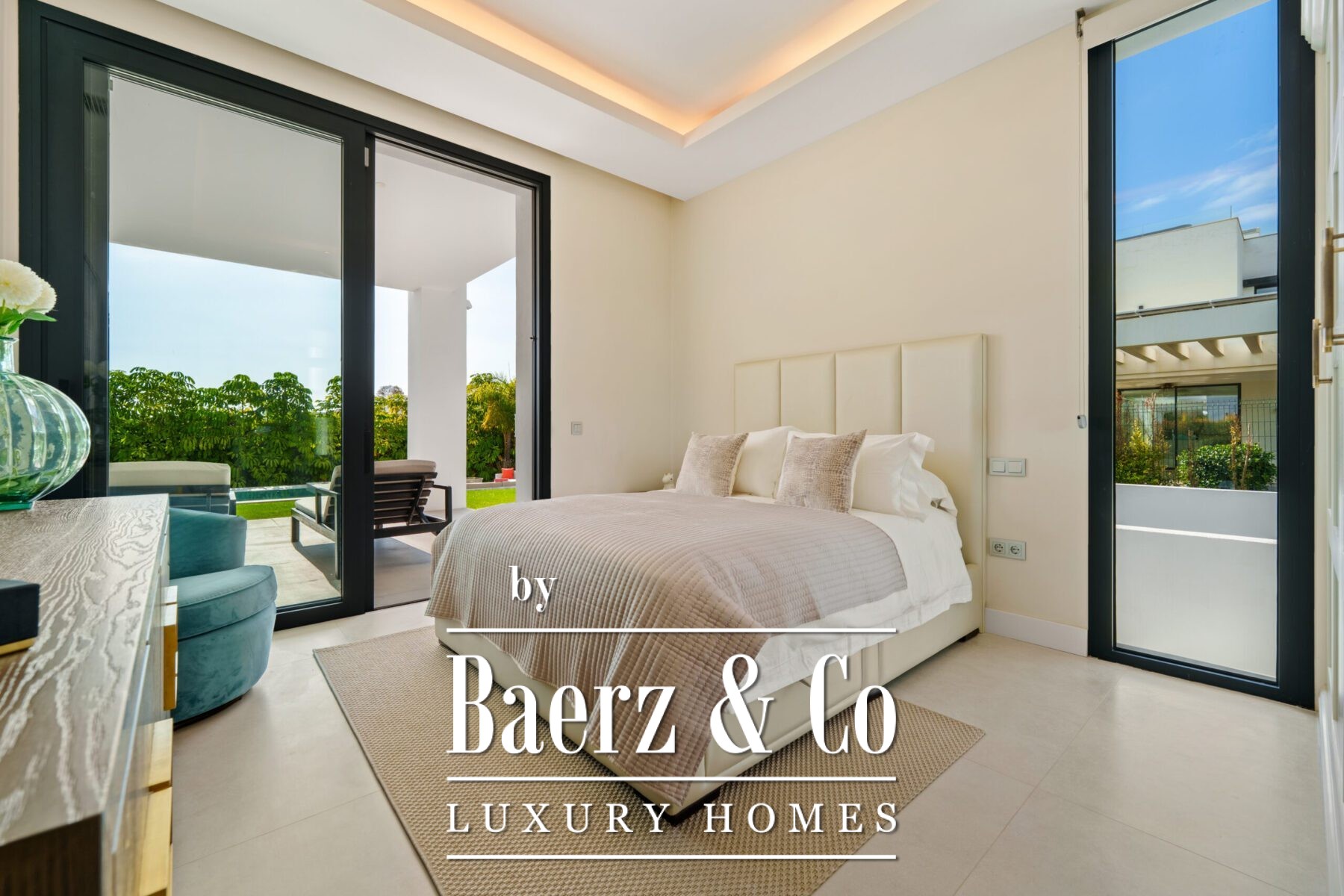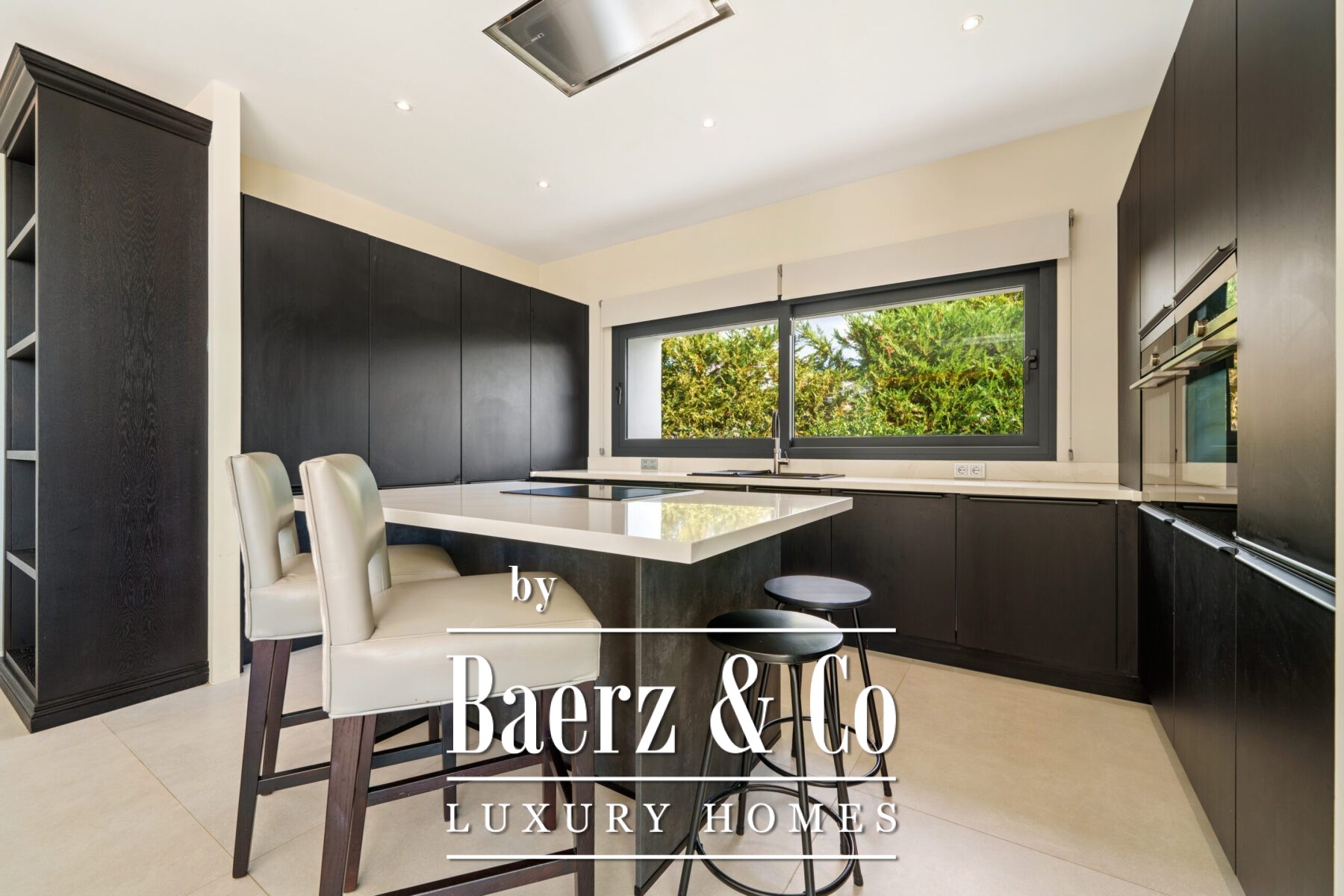 Buiten ligt de focus op een royaal zwembad met een intrekbare cover, omgeven door zonneterrassen en diverse overdekte zitgedeelten. Grenzend aan het zwembad vindt u een lounge met vuurplaats, een buitenkeuken en eetruimte, wat zorgt voor een ontspannen sfeer voor stijlvol buitenleven en entertainment het hele jaar door. Zes slaapkamers en vijf badkamers garanderen privacy en comfort, waarbij elke slaapkamer beschikt over een eigen terras en een eigentijdse afwerking.