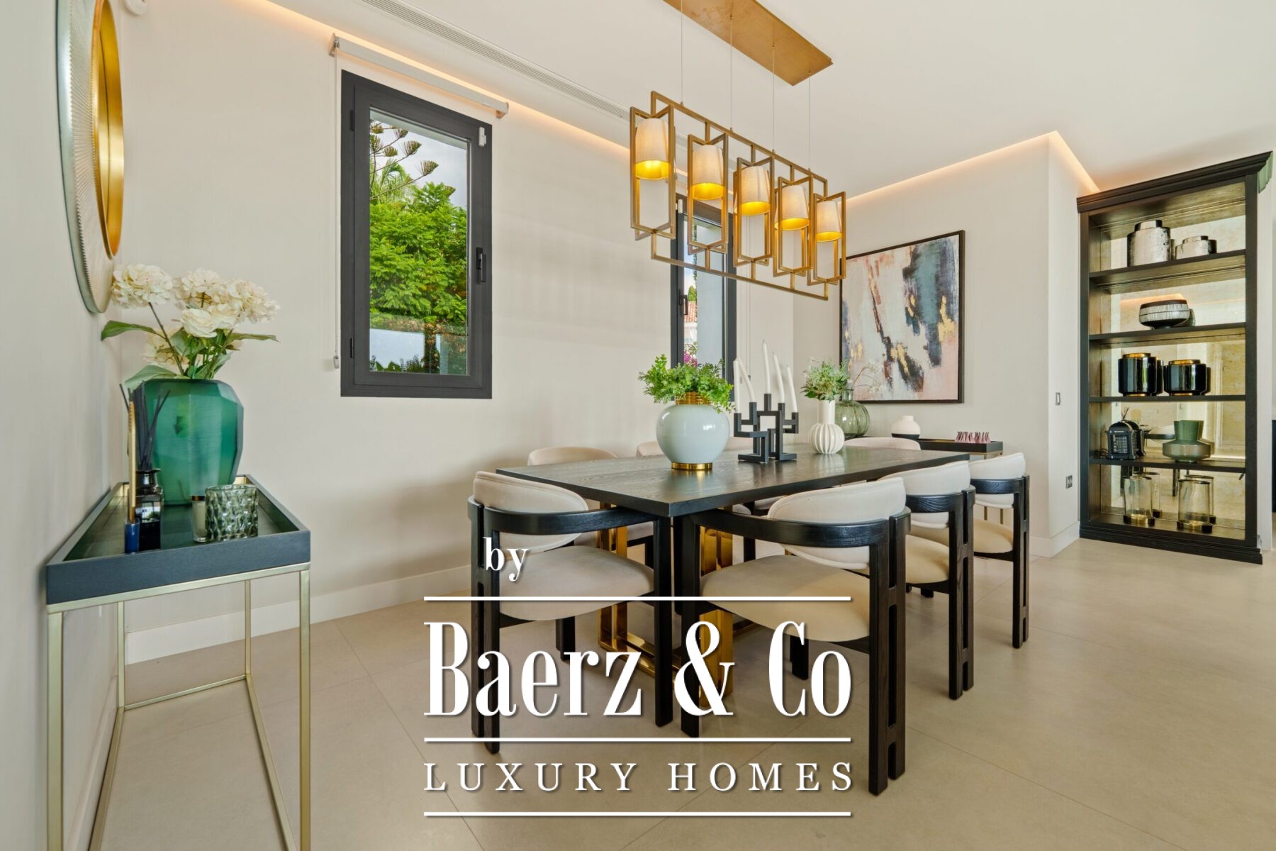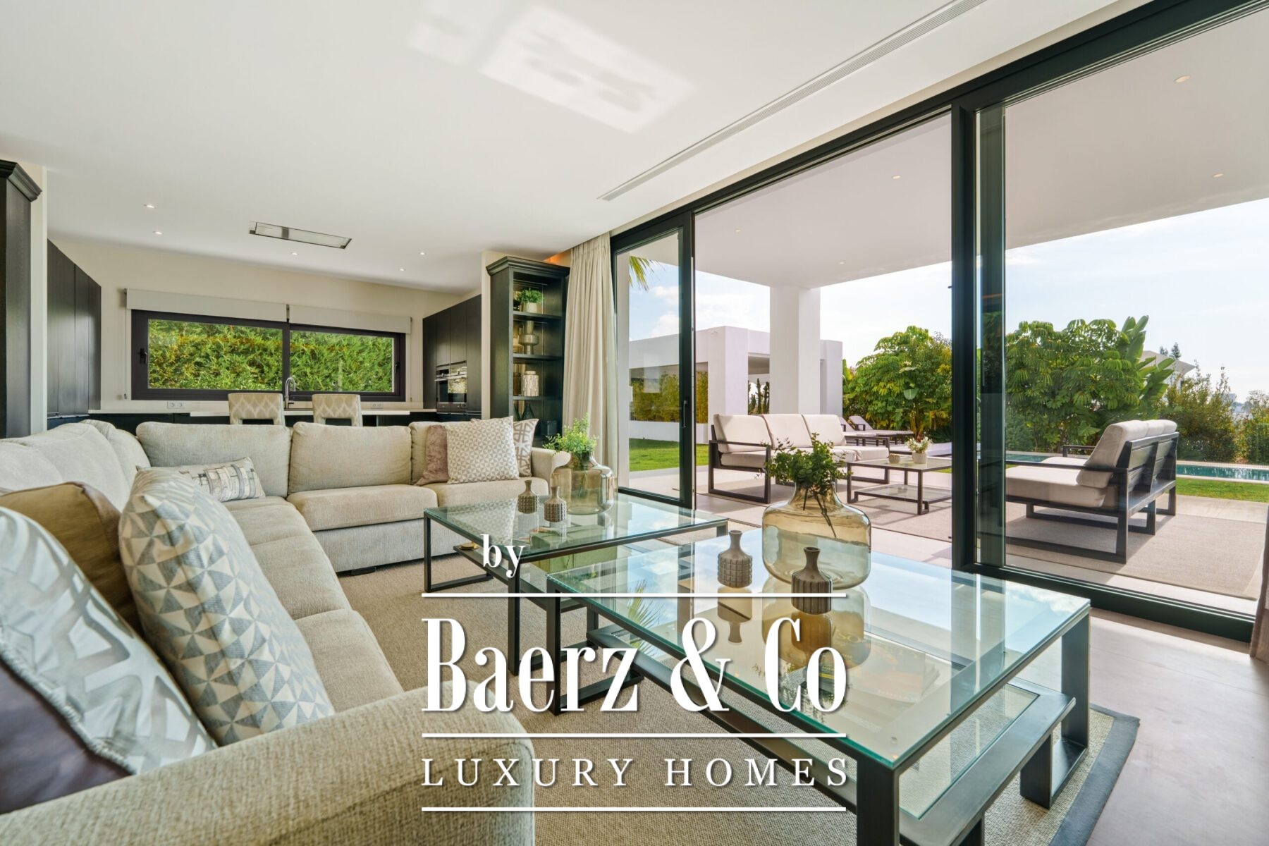 Voor ontspanning en gezelligheid is er een exclusieve bioscoopruimte met een bar, pooltafel en projectiescherm. Moderne voorzieningen zijn onder meer een luchtwarmtepomp, zonnepanelen met batterijopslag, een smart home-systeem en beveiligingsfuncties voor optimale gemoedsrust. Dankzij de ligging bereikt u direct lokale winkels, golfbanen, het strand en de zee van Marbella. Zo biedt deze villa een unieke combinatie van zuivere architectuur en dagelijks wooncomfort.