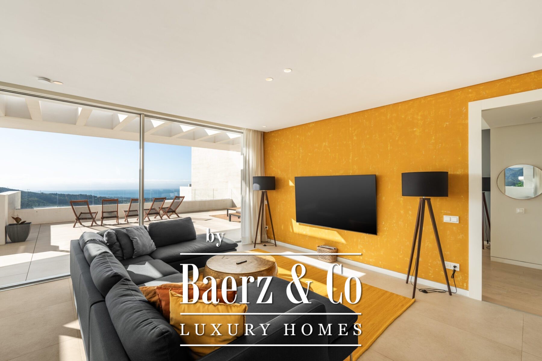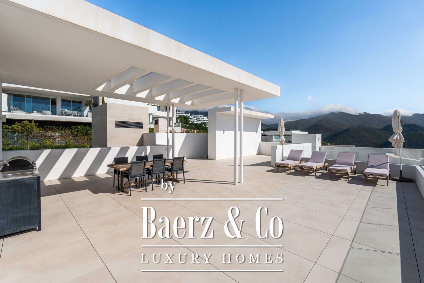 Penthouse Marbella biedt een zeldzame combinatie van privacy en panoramisch uitzicht, gelegen op een verhoogde positie boven de stad binnen een veilige, afgesloten enclave. Dit op het zuidoosten georiënteerde penthouse in Marbella geniet optimaal daglicht en een weids uitzicht op zee en bergen vanuit een privépositie. Met 157 m² verfijnd interieur en 276 m² omliggende terrassen is elke ruimte ingericht voor een sophisticated indoor-outdoor leven.