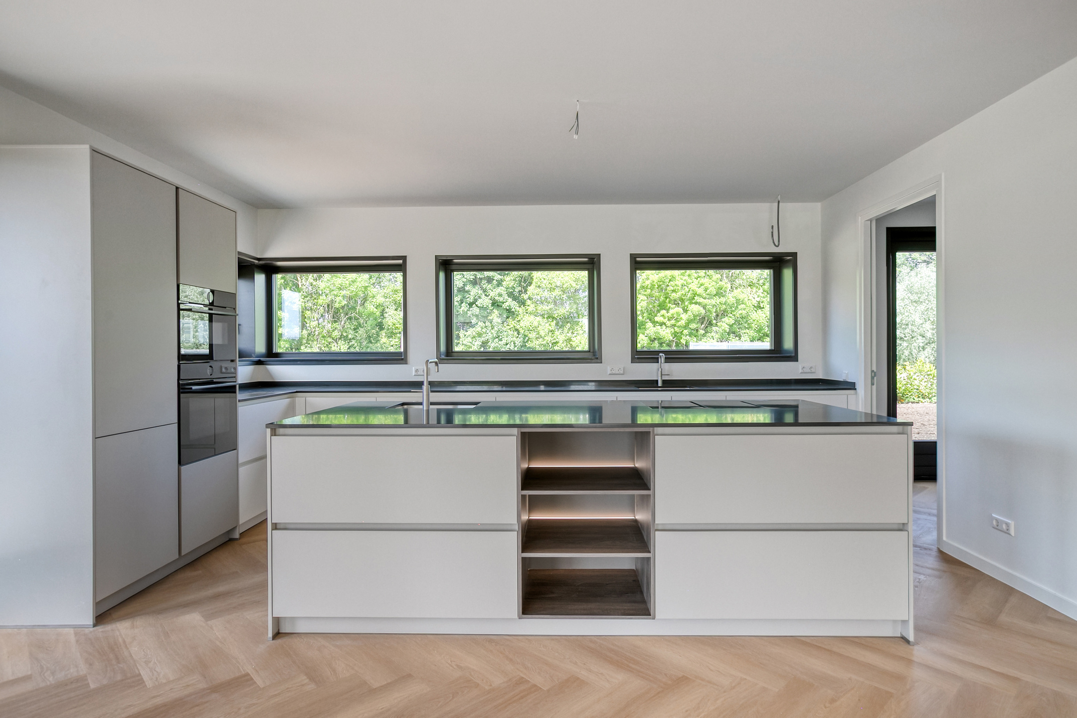 Stelt u zich eens voor: een nieuwbouwwoning waar alles klopt. Waar u niets hoeft te verbouwen, niet hoeft te wachten, maar alleen nog maar hoeft te wonen. Aan de groene rand van woonwijk De Plantage in Meteren ligt deze gloednieuwe villa van 350 vierkante meter, gebouwd voor wie rust, ruimte en kwaliteit zoekt. De moderne architectuur, de doordachte indeling, de fijne tuin op het zuiden. Alles ademt comfort. Grote raampartijen trekken het daglicht naar binnen en verbinden de woonkeuken met het terras. Terwijl u de koffie inschenkt, kijkt u uit op uw eigen stukje vrijheid.