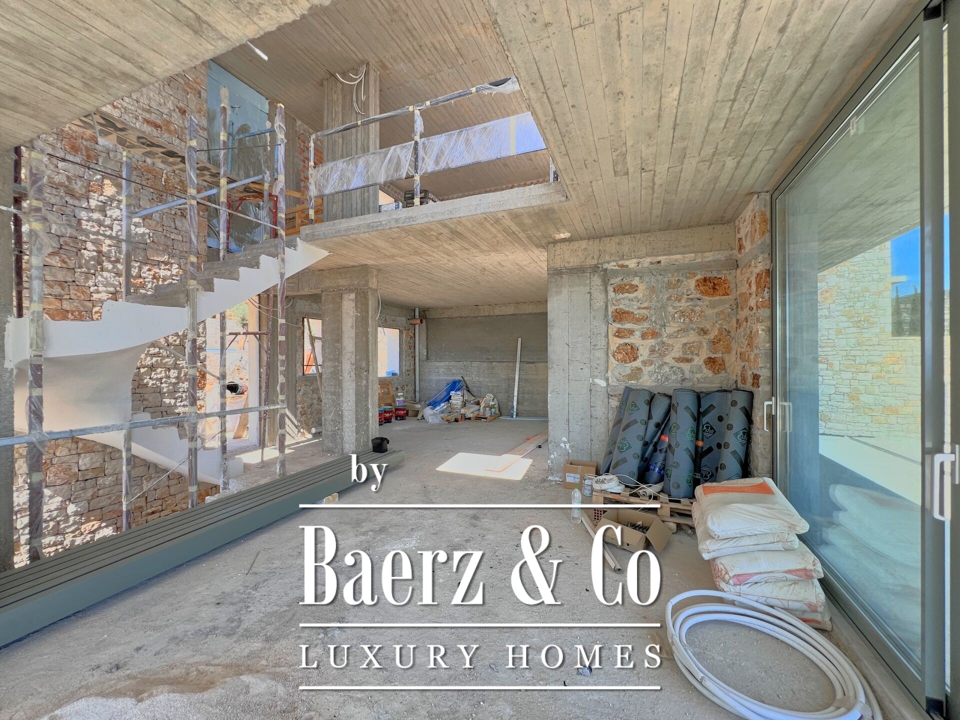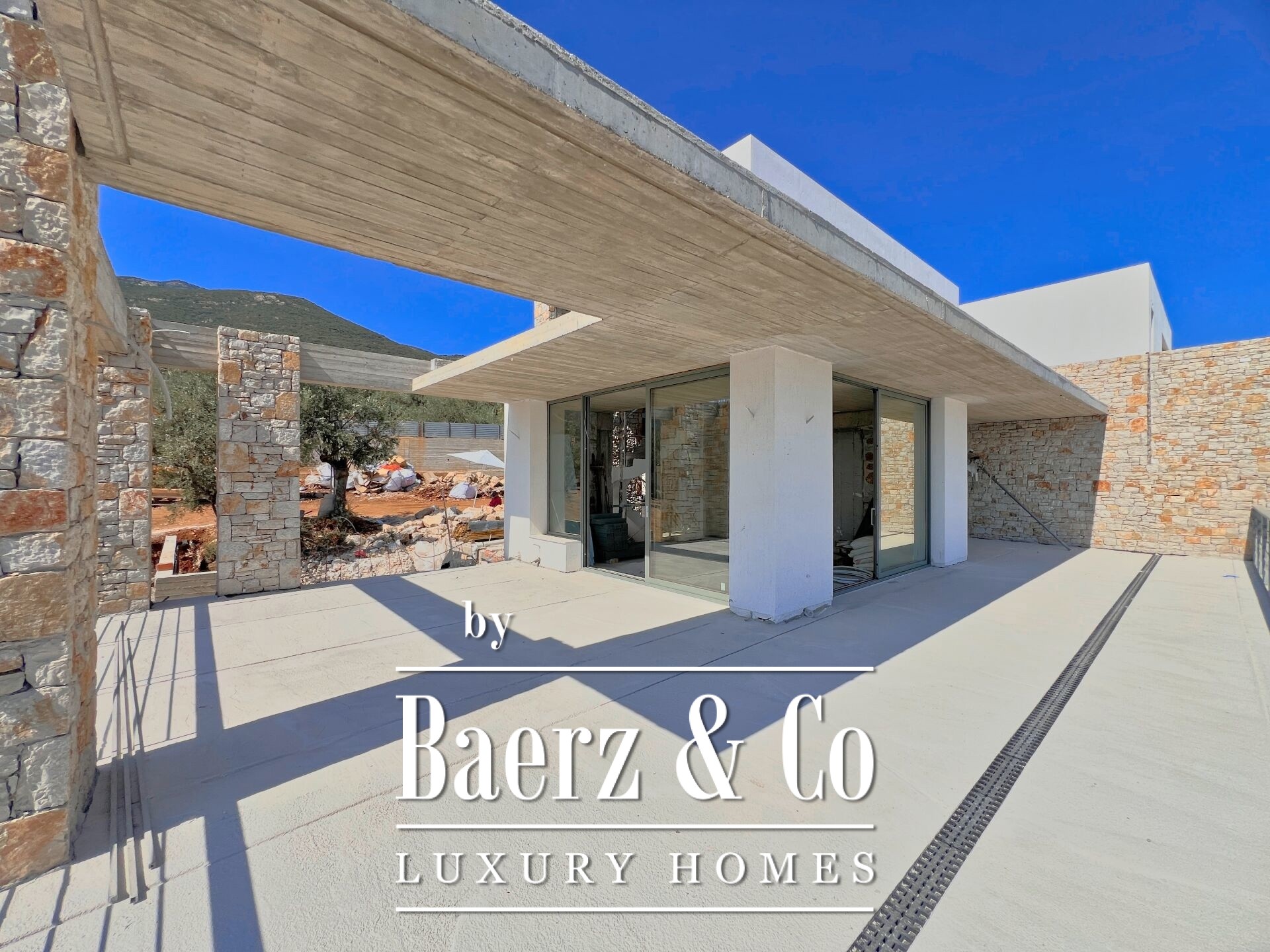 Deze eigentijdse villa in Nafplio wordt te koop aangeboden op slechts 250 meter van de kustlijn, gelegen op een privéperceel van 2.000 m². De villa, momenteel in aanbouw door een ervaren architectenbureau, belichaamt een moderne woonfilosofie in harmonie met het mediterrane landschap en levensstijl. De interne woonruimte van 285 m² strekt zich uit over twee verdiepingen en een entresol, waarbij de nadruk ligt op vloeiende overgangen tussen het interieur en de royale buitenruimtes. Grote glaspartijen zorgen overal voor een overvloed aan natuurlijk licht en een onbelemmerd uitzicht op zee.