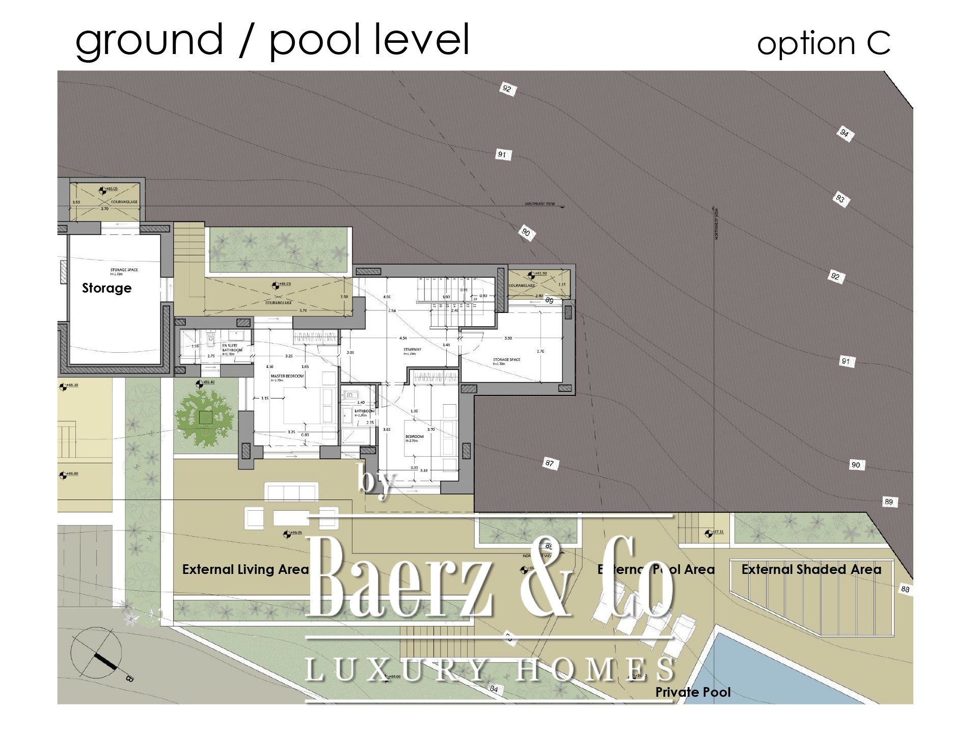 Een overdekt buitengedeelte verwelkomt bewoners en gasten en verbindt de hoofdwoning met een zelfstandig gastenverblijf. Zo kan flexibel worden ontvangen in alle privacy. De begane grond beschikt over een open woonruimte, een aparte keuken en directe toegang tot schaduwrijke terrassen, een balkon, een uitzichtplatform en een stijlvol vormgegeven zwembad van circa 60 m². De entresol biedt een open suite met eigen badkamer, ideaal als hoofdslaapkamer, terwijl het souterrain bestaat uit twee slaapkamers met ensuite badkamers en een ruimte geschikt voor ontspanning, werk of vrijetijdsbesteding.