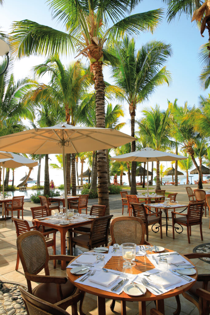 Na het ontwaken volgen de eerste smaken van het eiland. Een lichte lunch bij Le Deck, met vis direct uit de lagune, bereid met Franse finesse en lokale kruiden, voelt als een verlenging van de omgeving zelf. De horizon, de wind, de geur van zout en zeewier, alles komt samen in dit moment dat net zozeer over zien en ruiken gaat als over proeven. Voor wie liever in de tuin blijft, opent Le Banyan zich als een groen toevluchtsoord, waar de gerechten delicate invloeden van Creoolse en Franse keuken dragen. Het licht valt door het bladerdak, de cadans van de dag wordt hier voelbaar aan tafel.