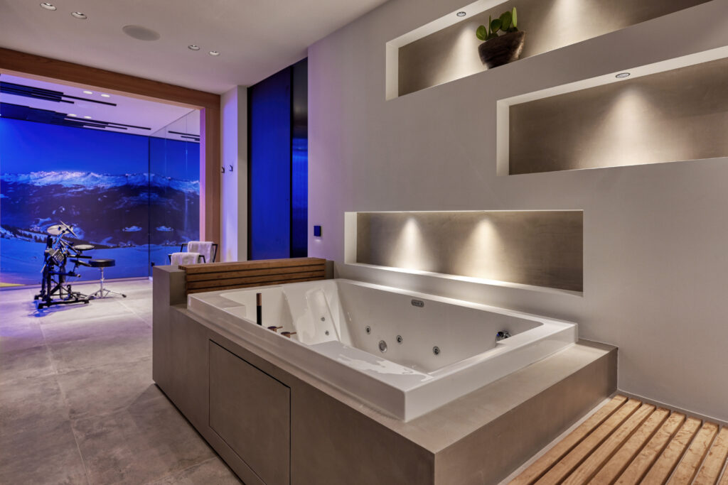 De lichte tonen keren terug in de bad- en slaapkamers van de kinderen. De middentonen vormen de basis van de leefruimtes. In de wellness, gym en hoofdslaapkamer zorgen donkere tinten voor intimiteit en rust. Zo ontstaat een vloeiende overgang waarin iedere ruimte een eigen karakter heeft, terwijl het geheel in balans blijft.