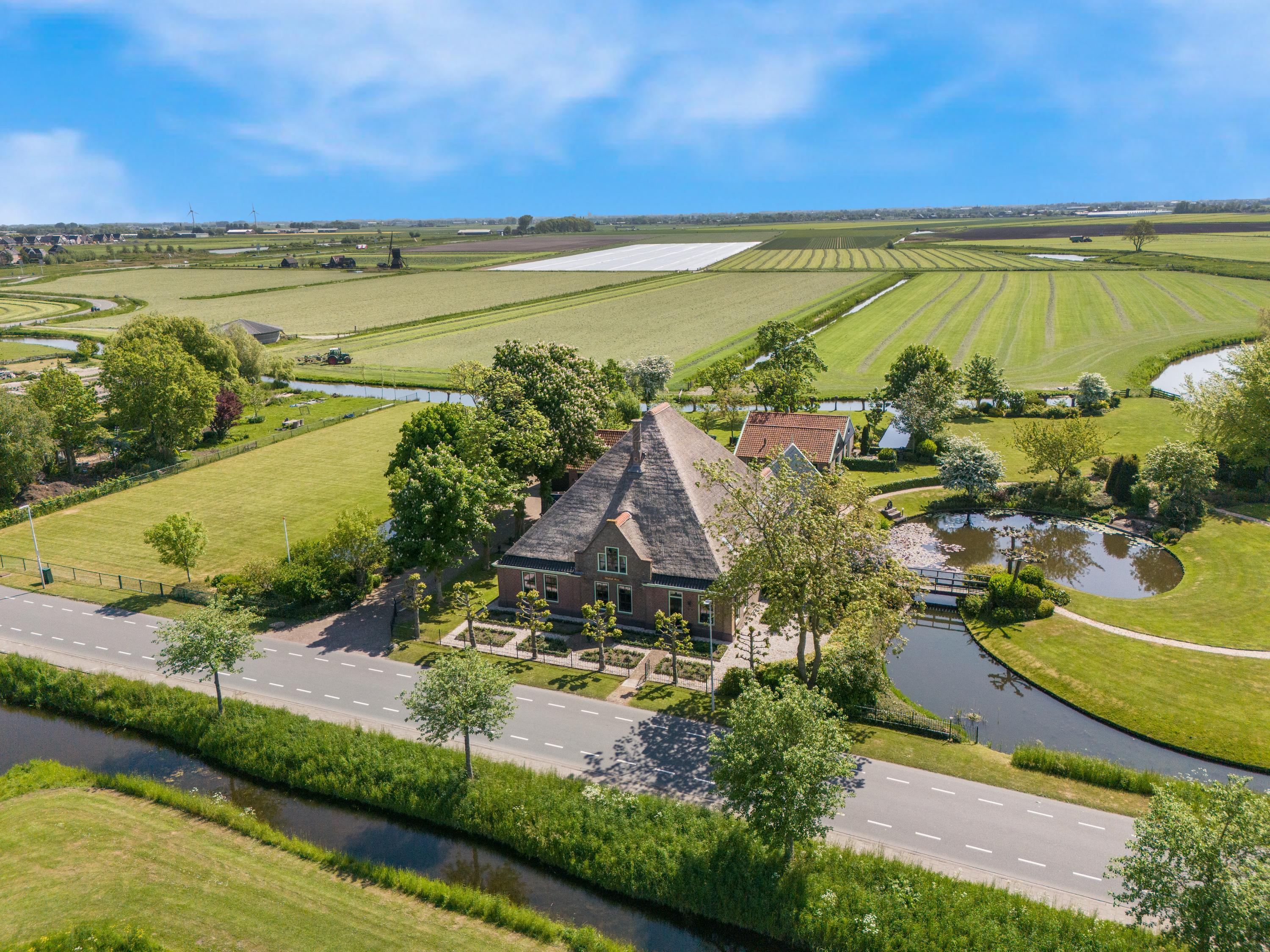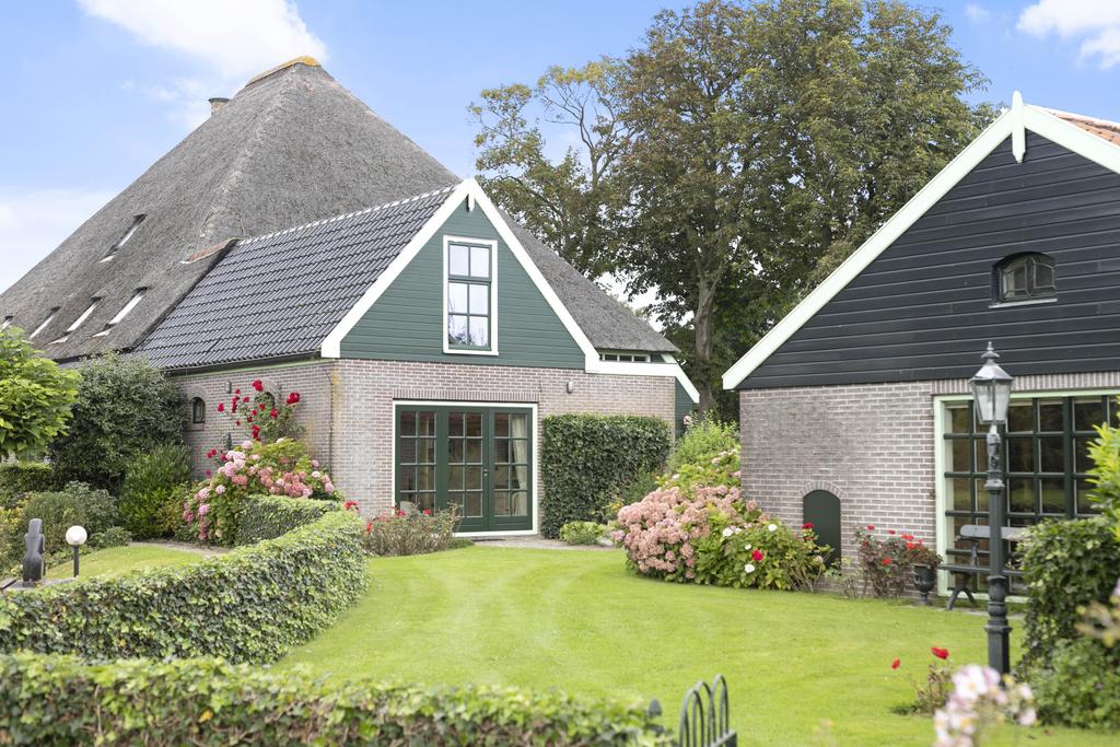 A major highlight is its idyllic location just outside the village of Obdam, with uninterrupted views over the meadows to the rear. Heerhugowaard is within easy cycling distance, and Alkmaar is also nearby. Amsterdam is just a 30-minute drive away. The farmhouse underwent a high-quality renovation in 1997, using first-class materials while preserving authentic elements. It features a cozy country-style kitchen, spacious living room, ground-floor bedroom with ensuite bathroom, at least four bedrooms on the first floor, and a separate wellness area with covered swimming pool, fitness room, and sauna.